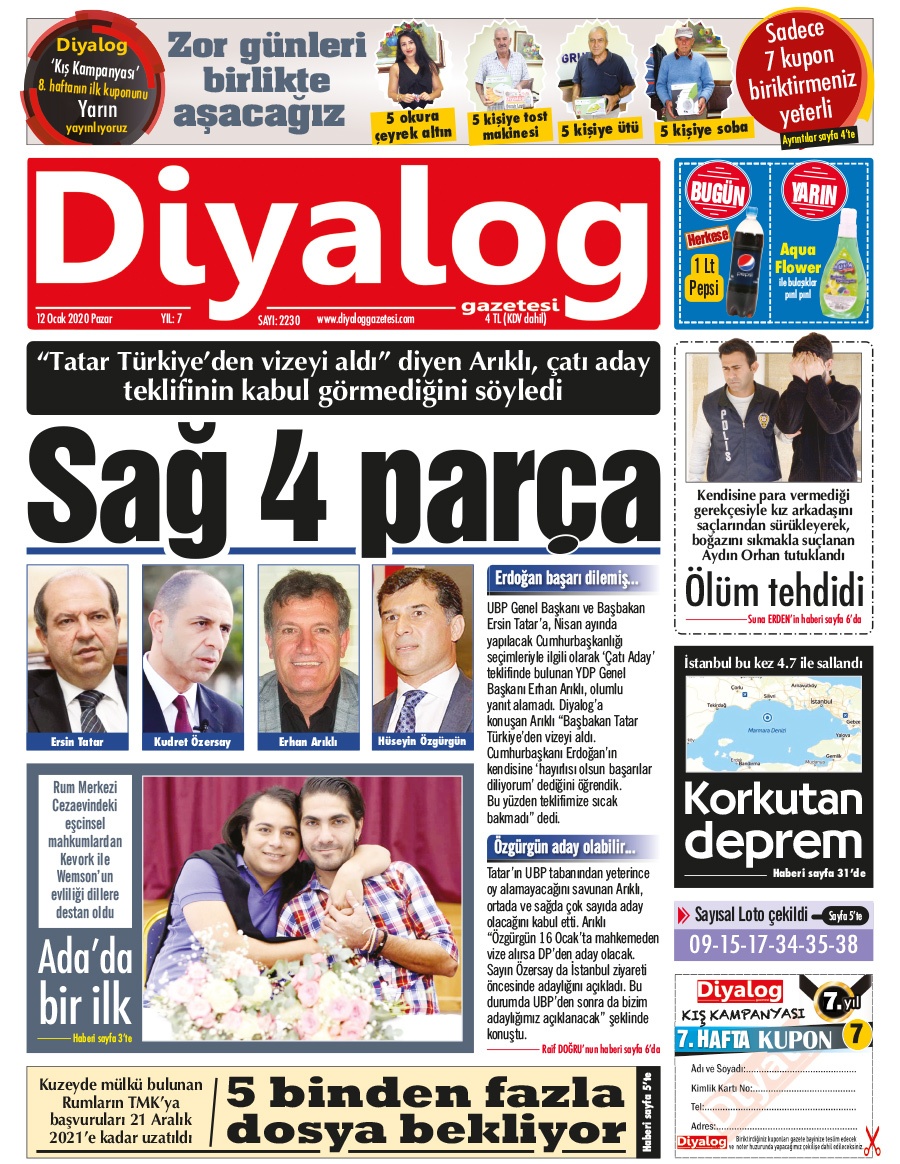 KKTC Gazete Manşetleri 12 Ocak 2020