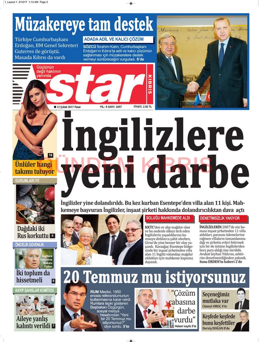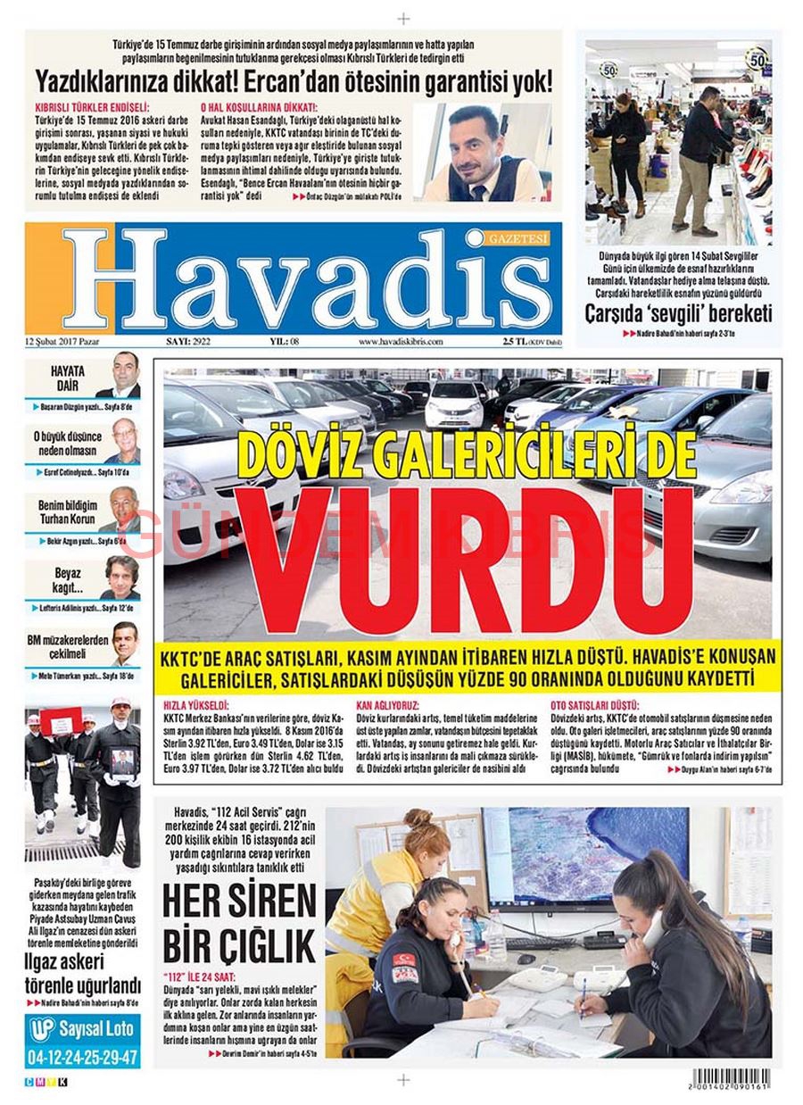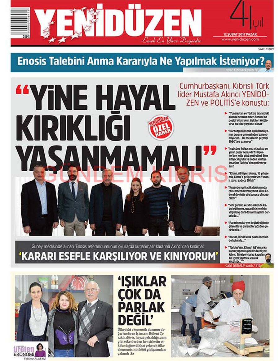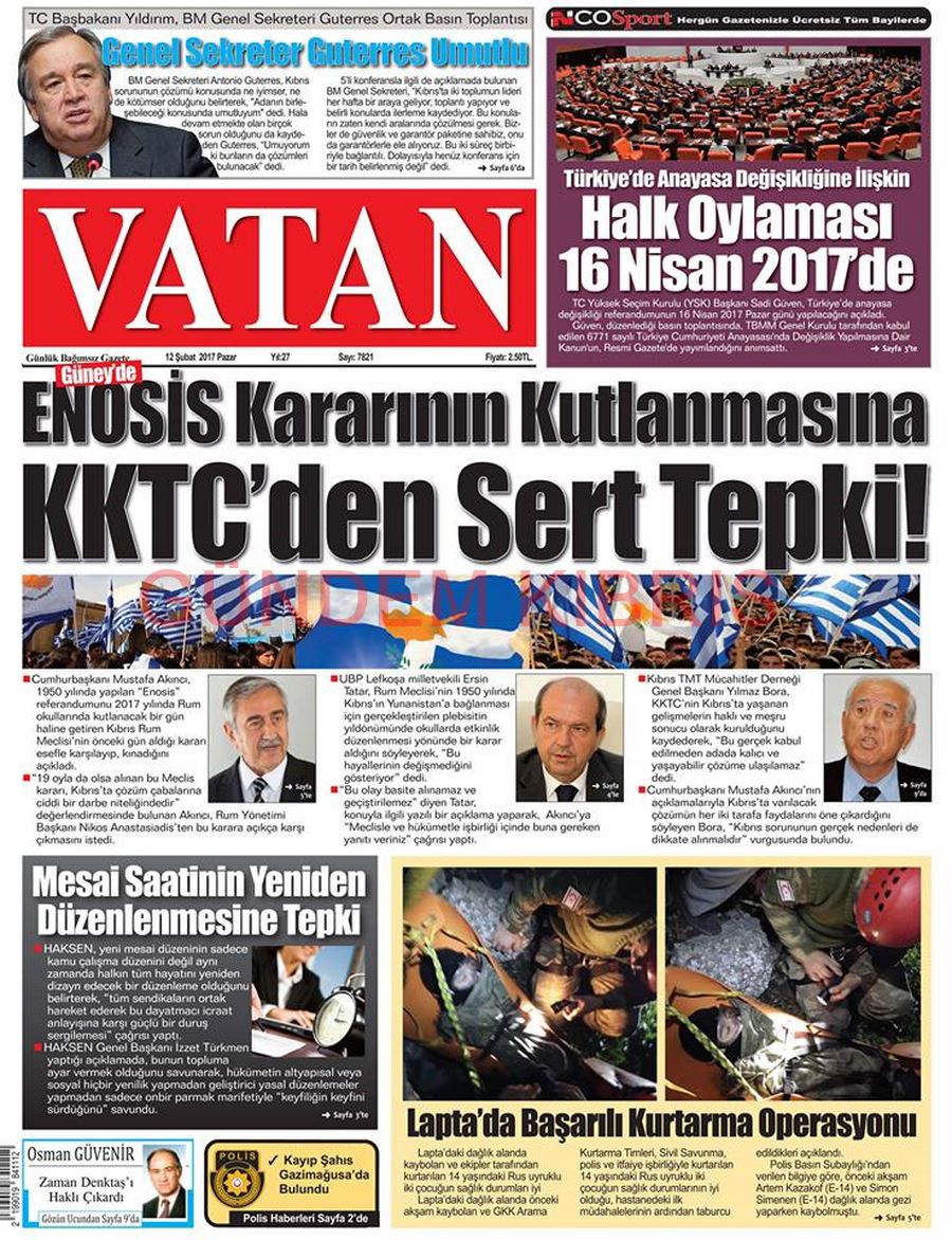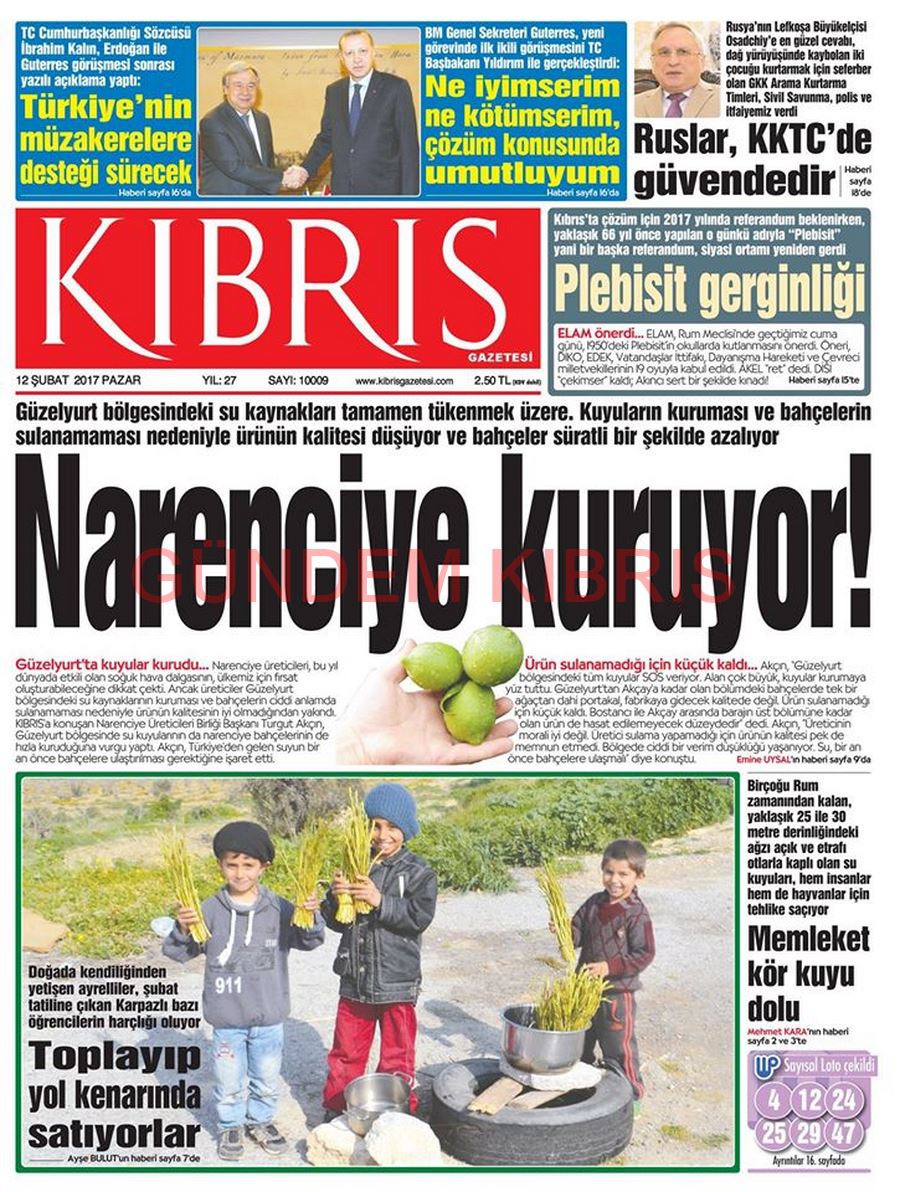 KKTC Gazete Manşetleri 12 Şubat 2017
