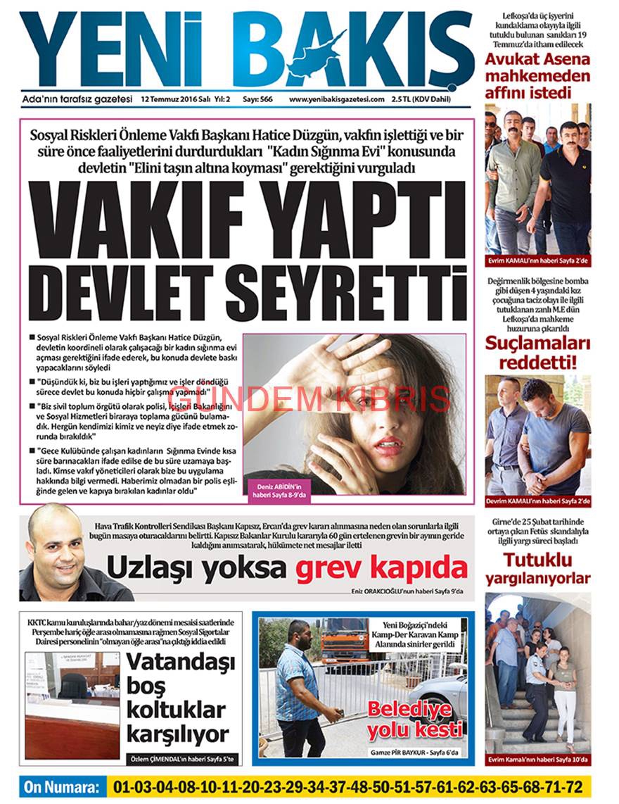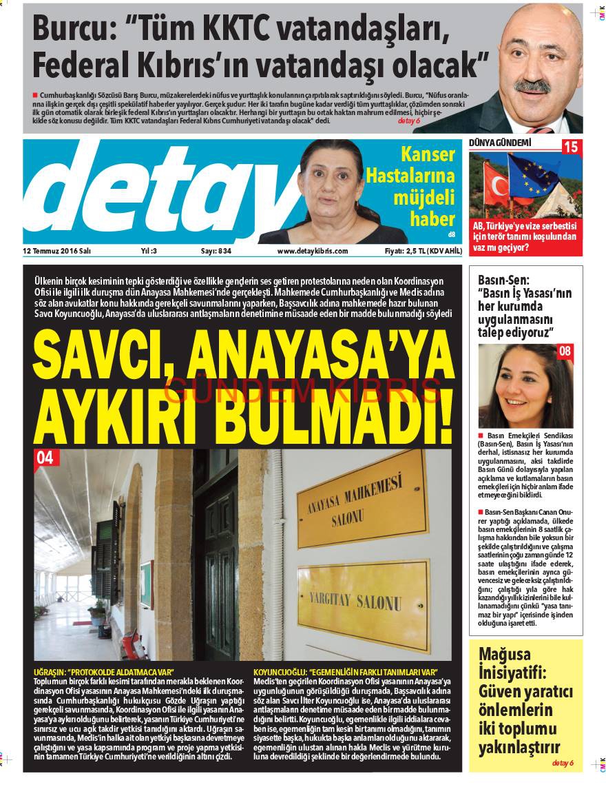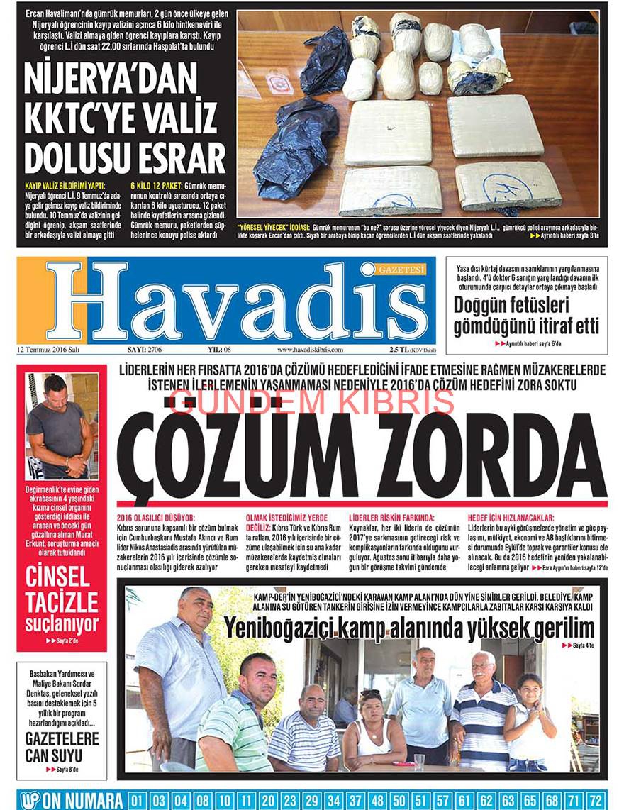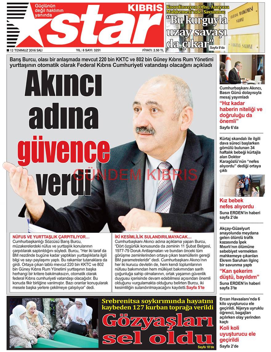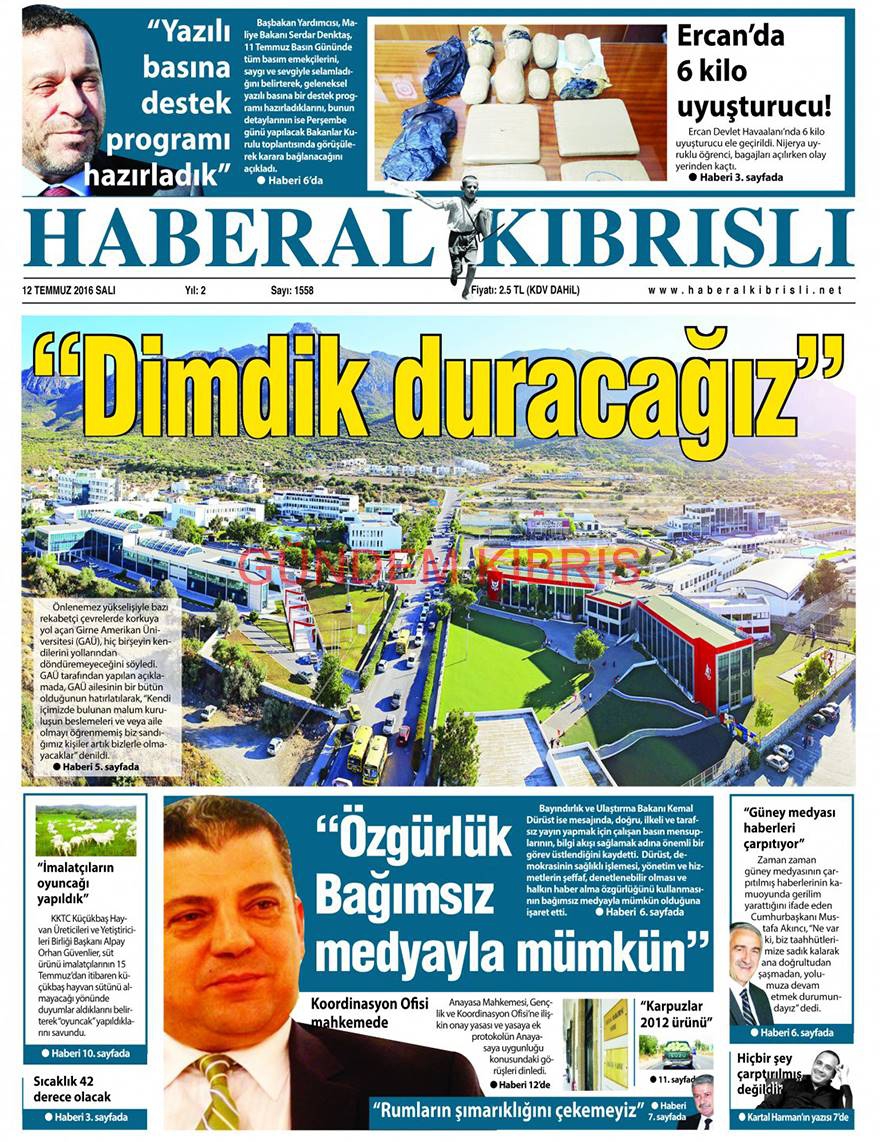 KKTC Gazete Manşetleri 12 Temmuz 2016