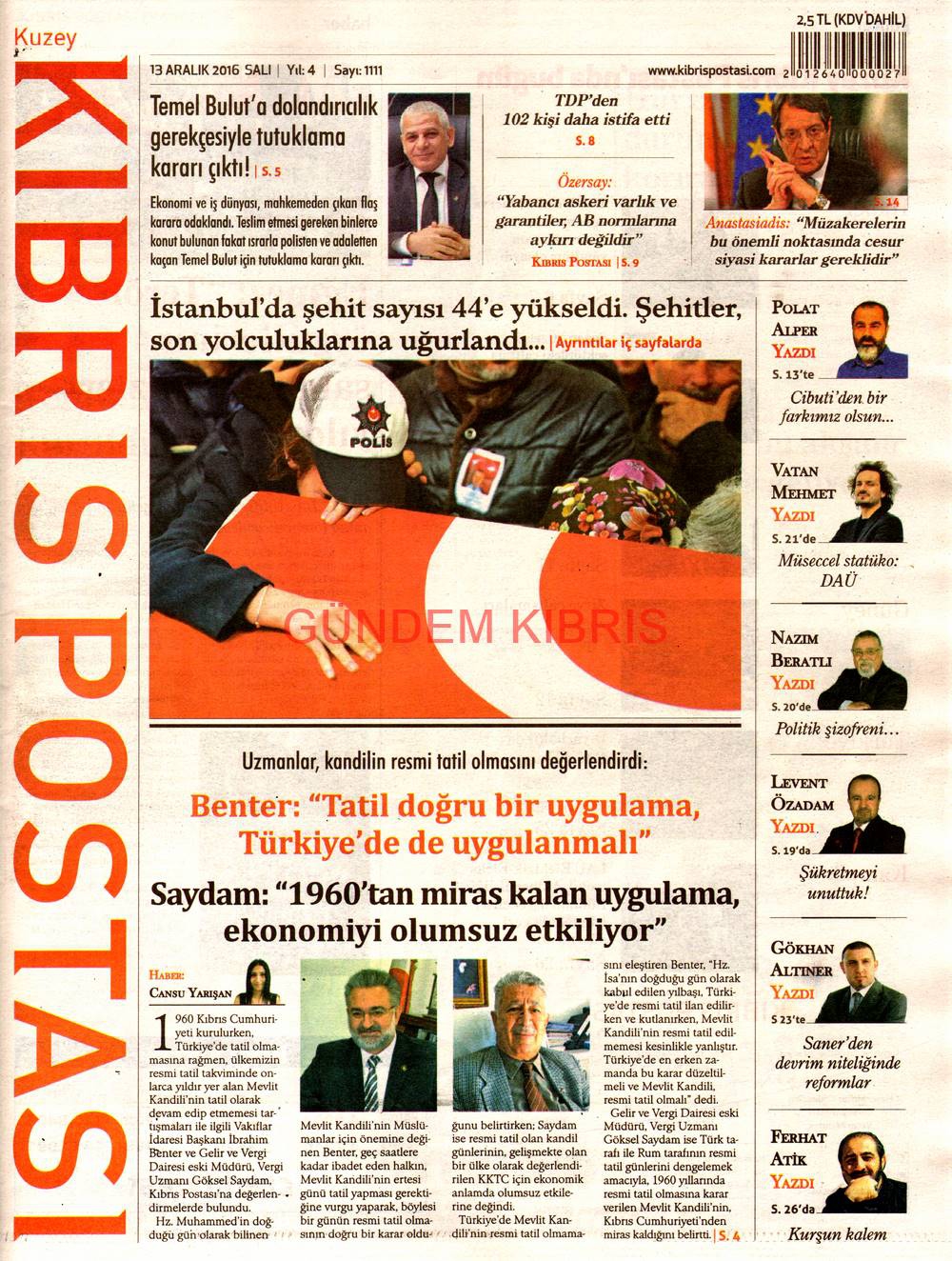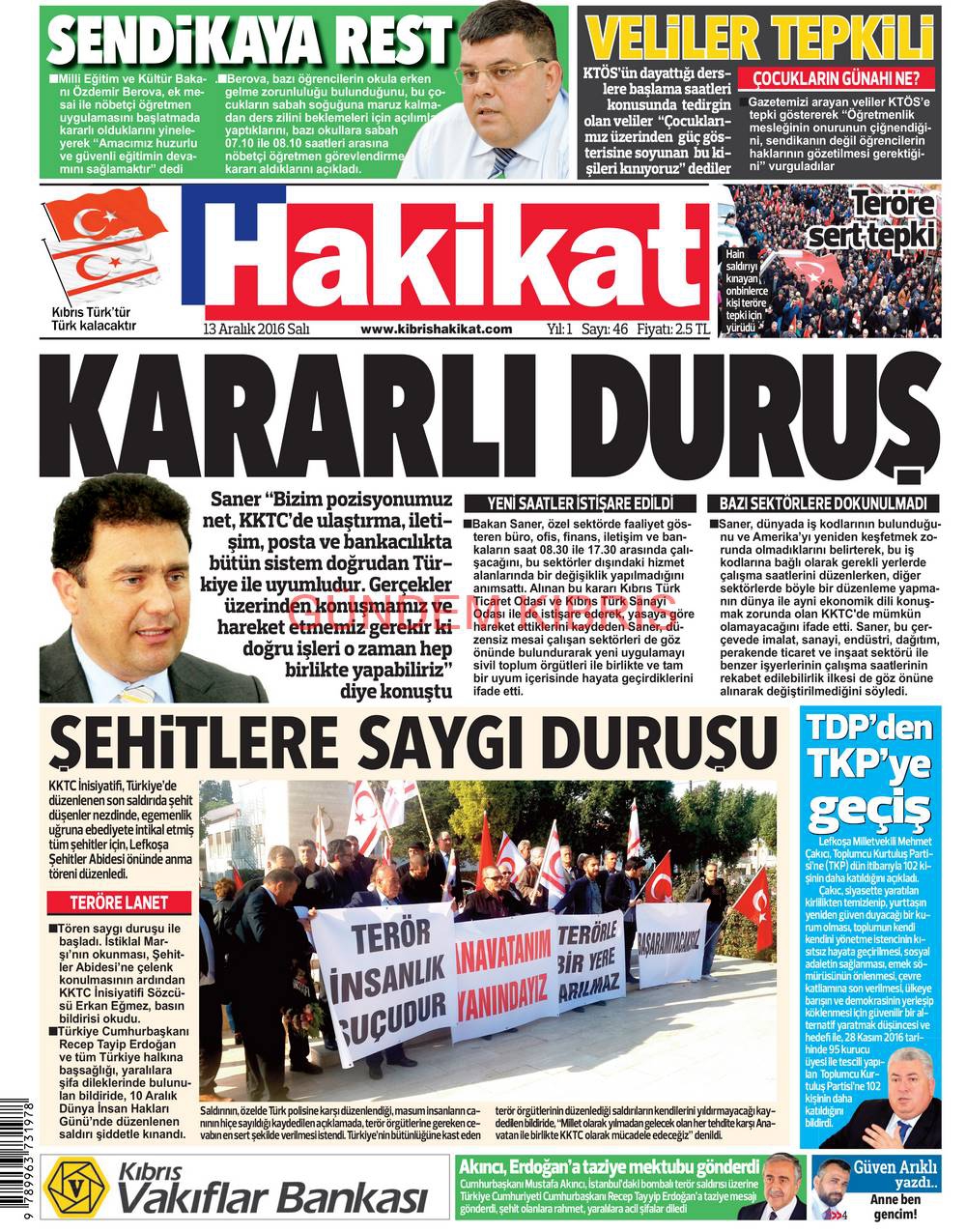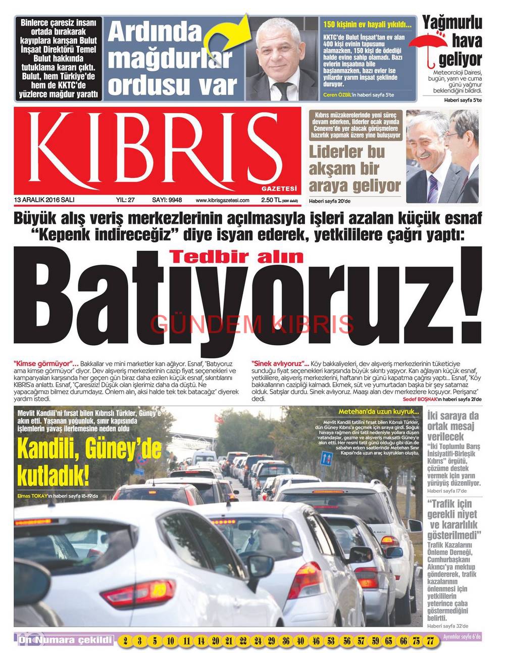 KKTC Gazete Manşetleri 13 Aralık 2016