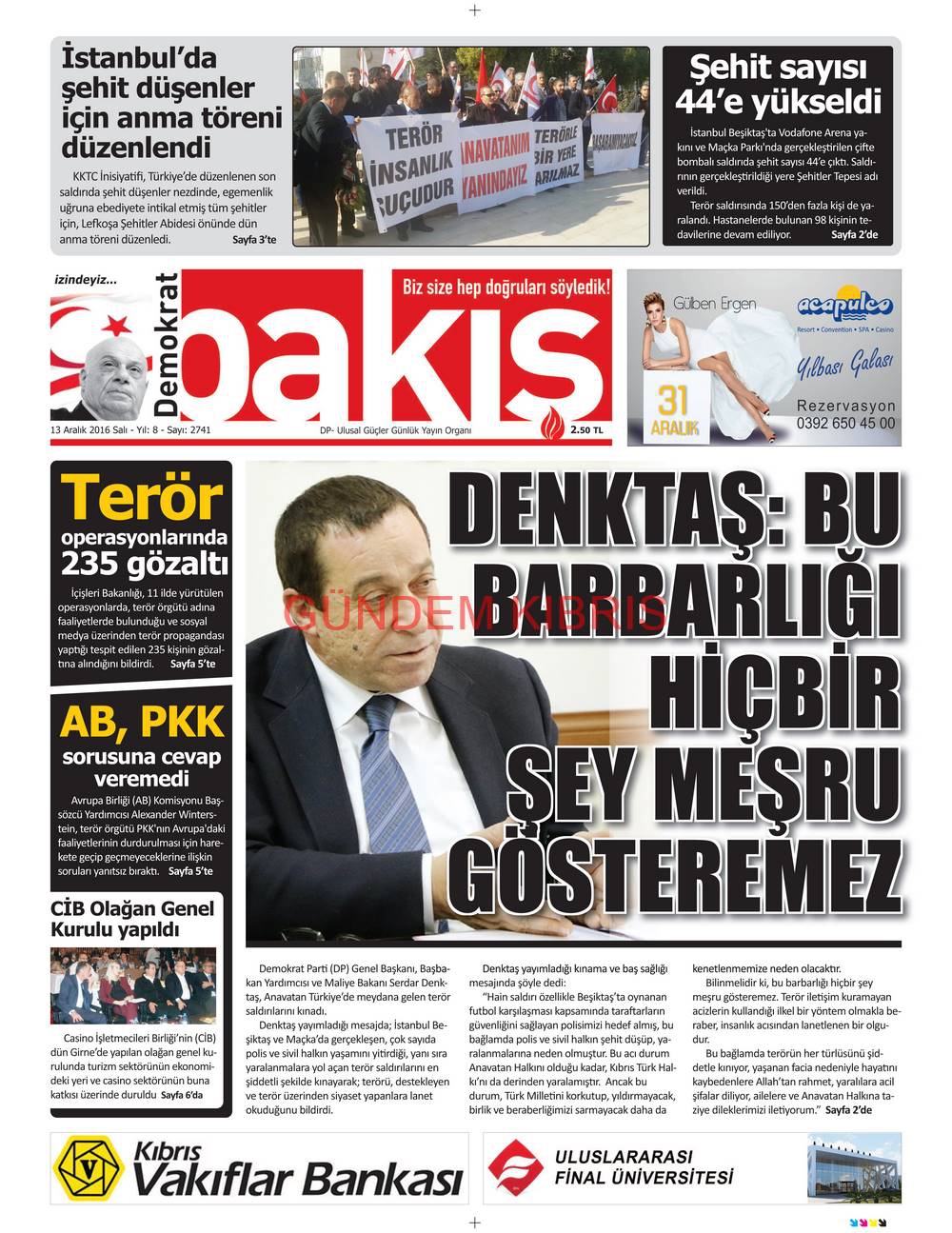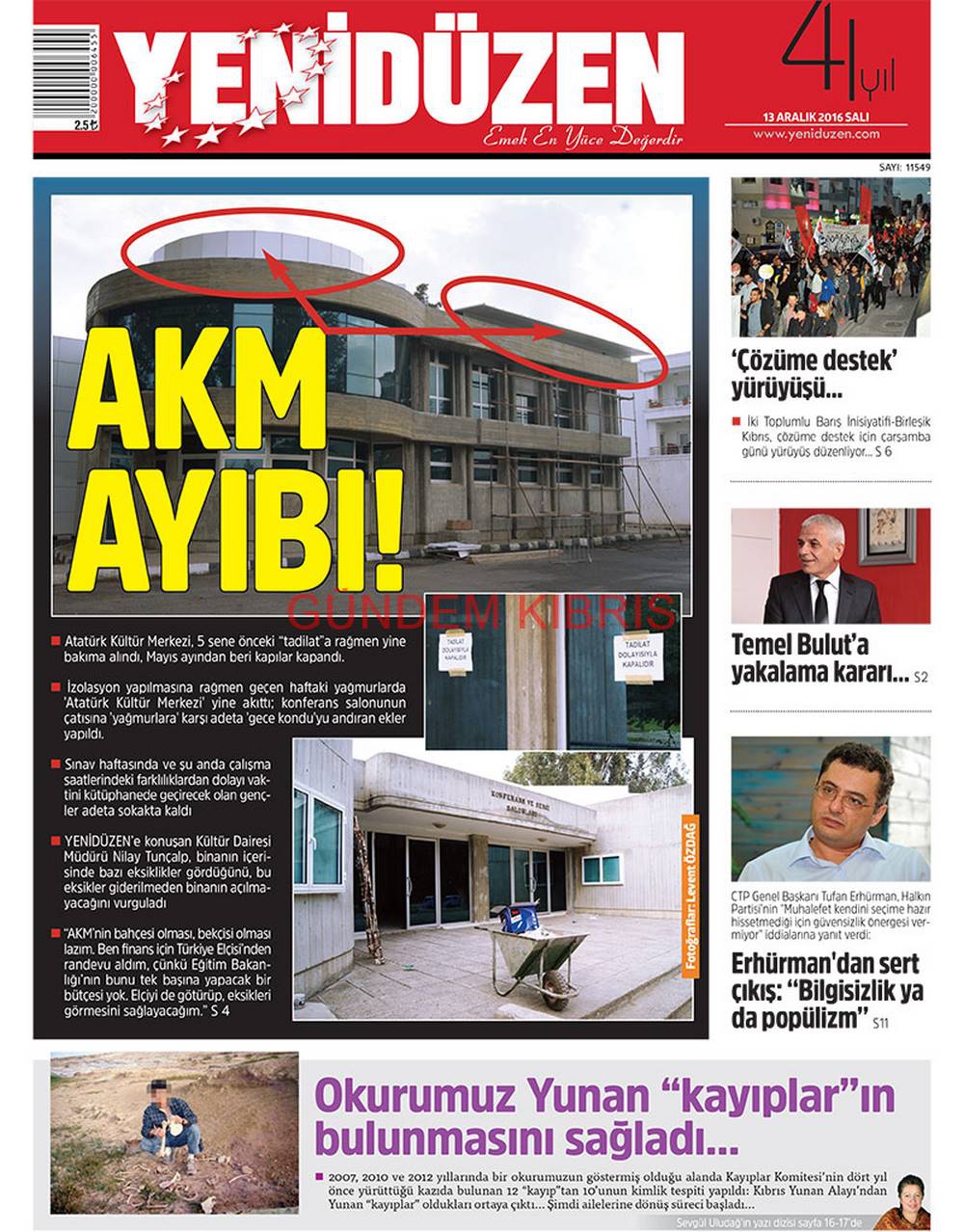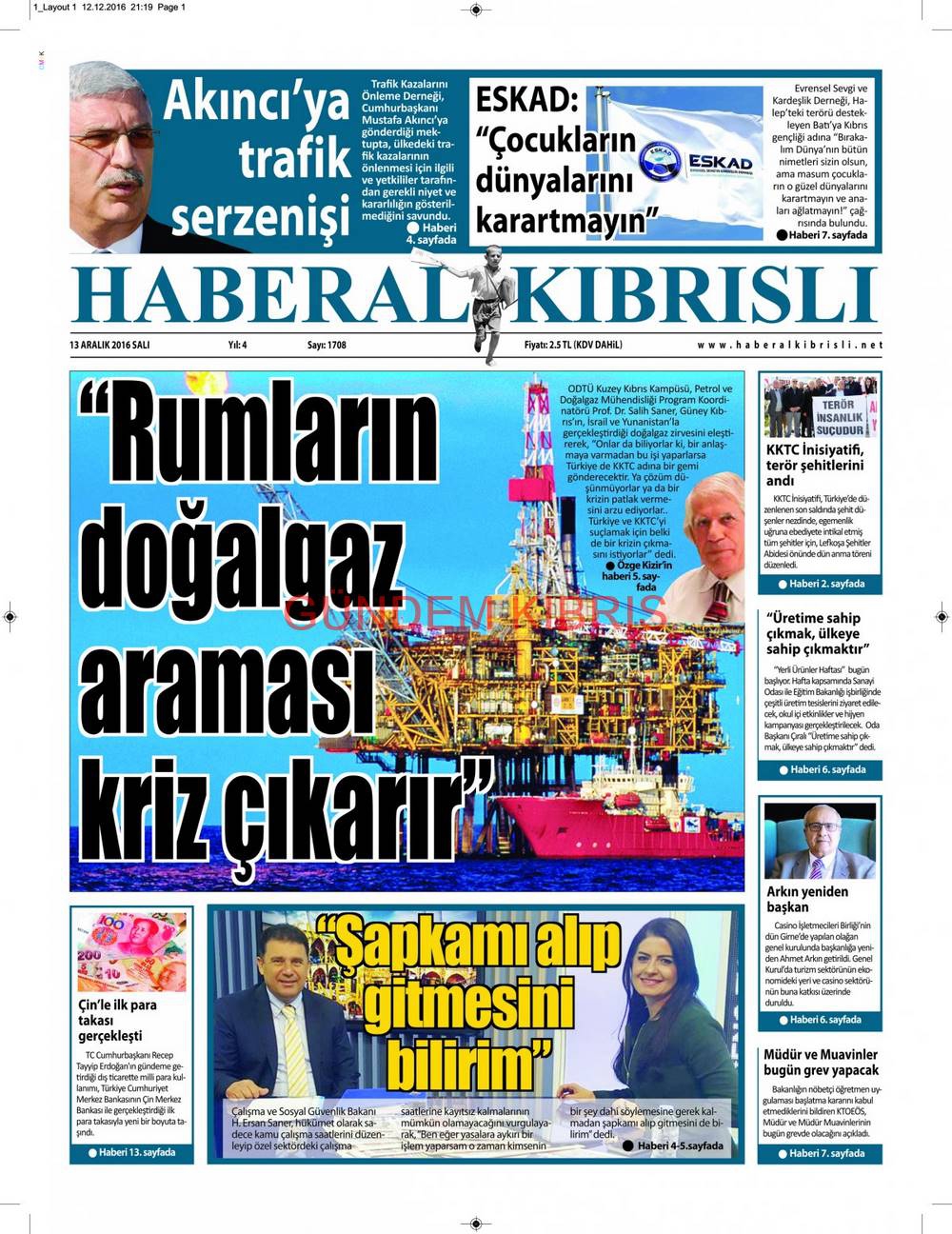 KKTC Gazete Manşetleri 13 Aralık 2016