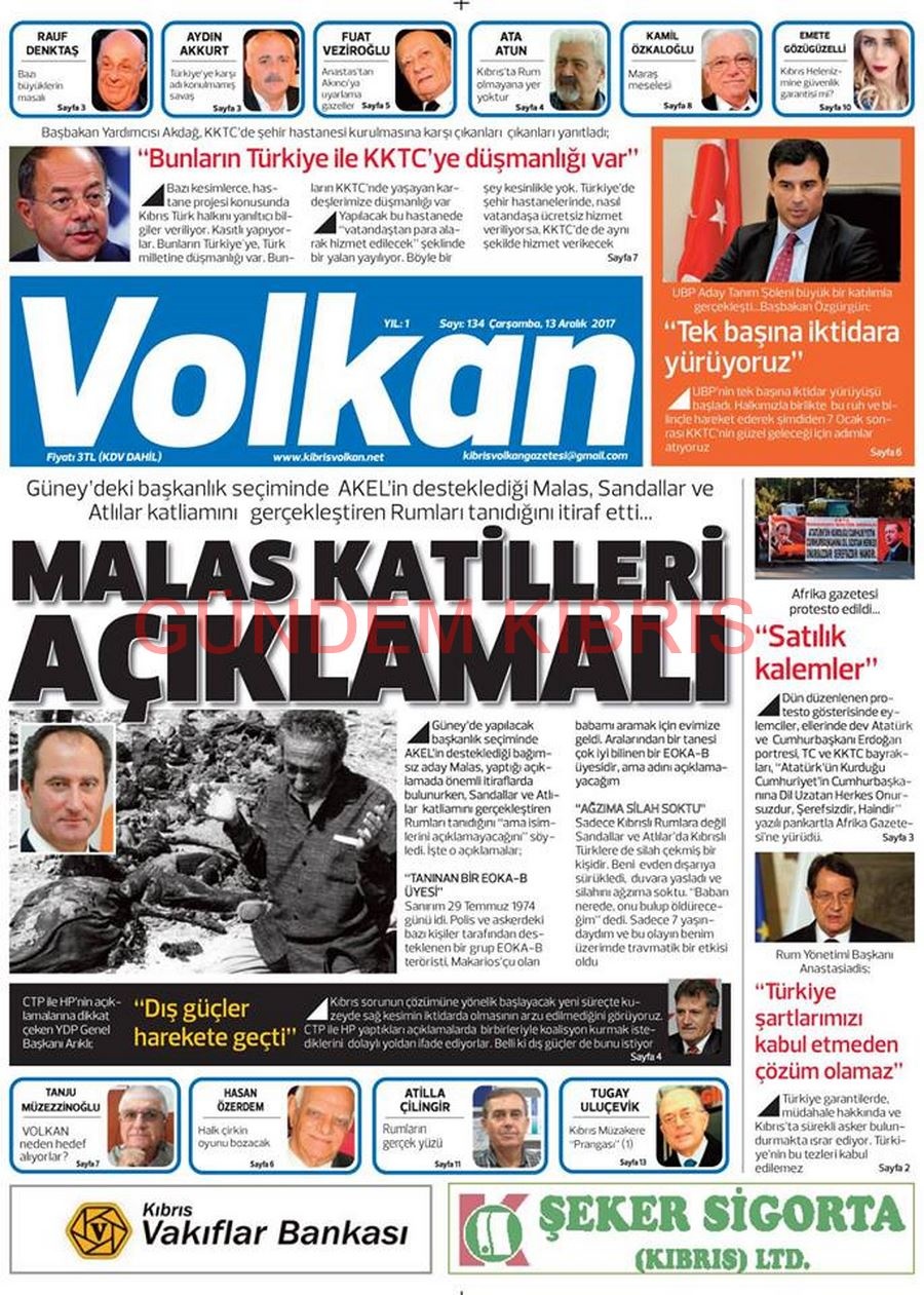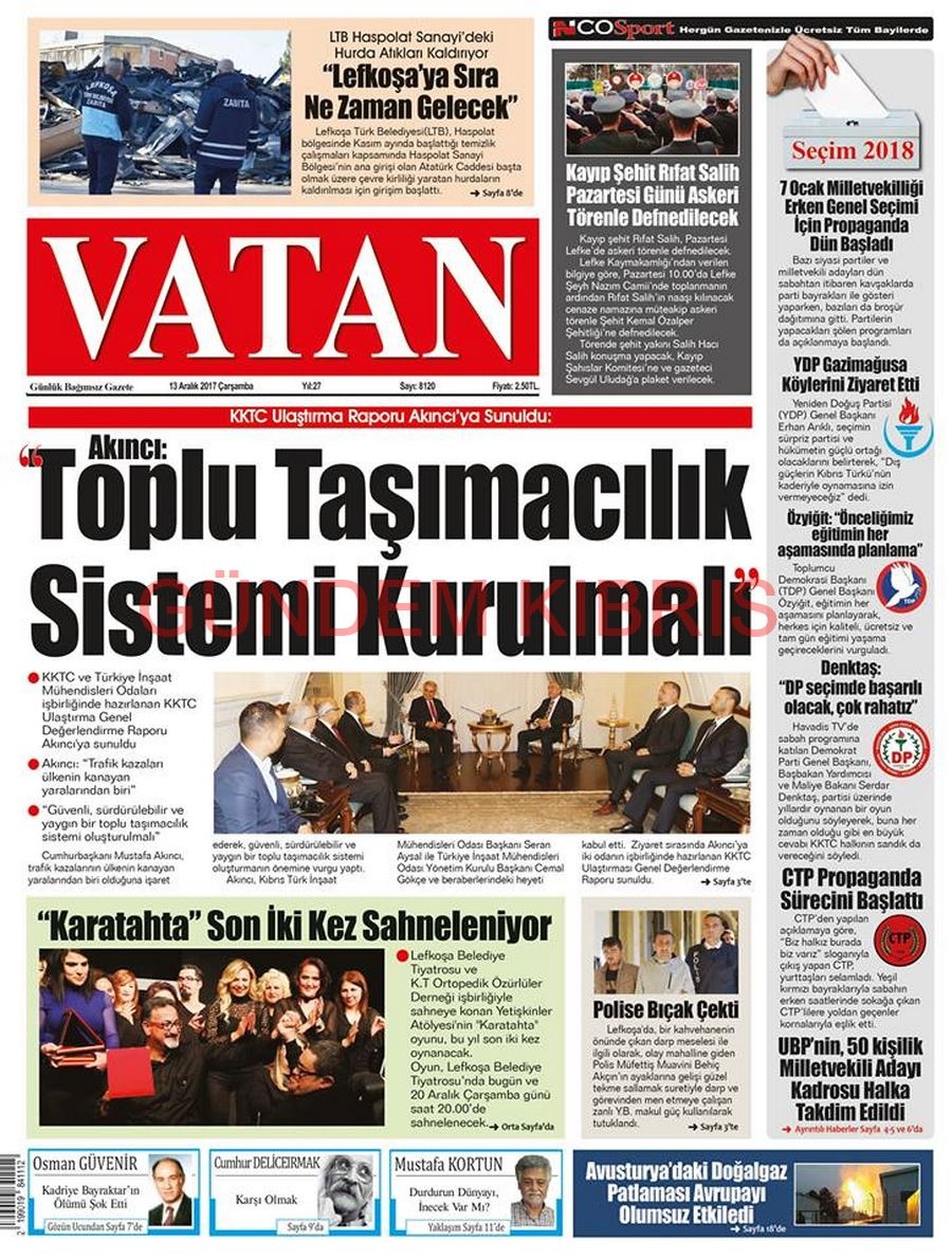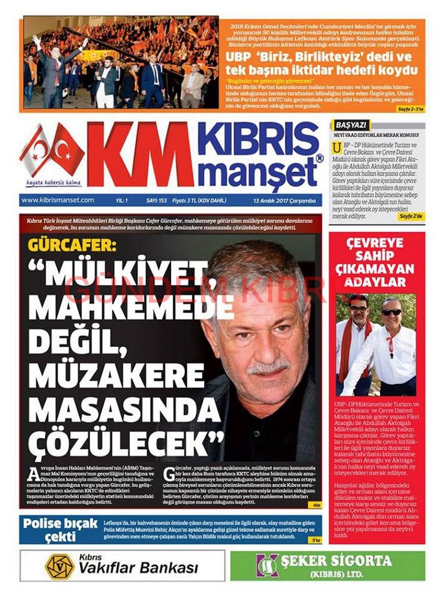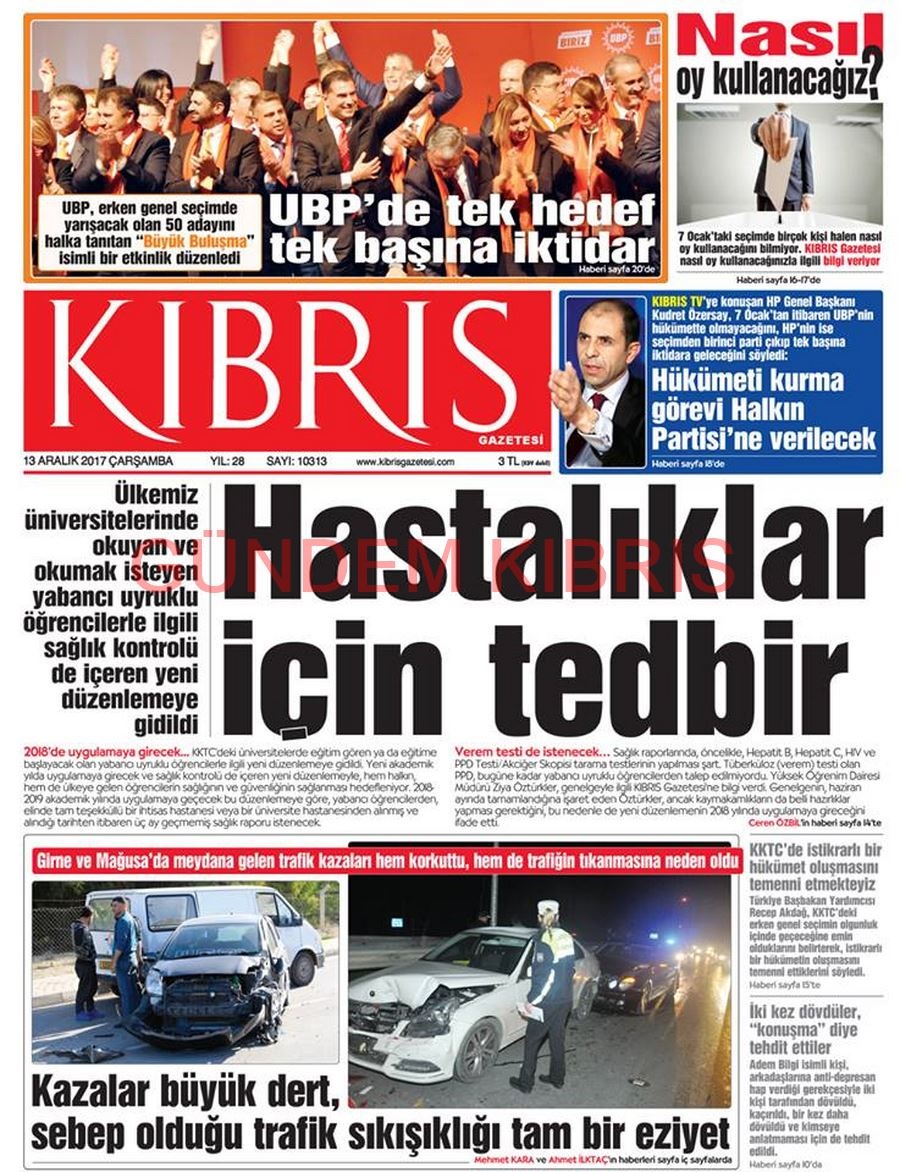 KKTC Gazete Manşetleri 13 Aralık 2017