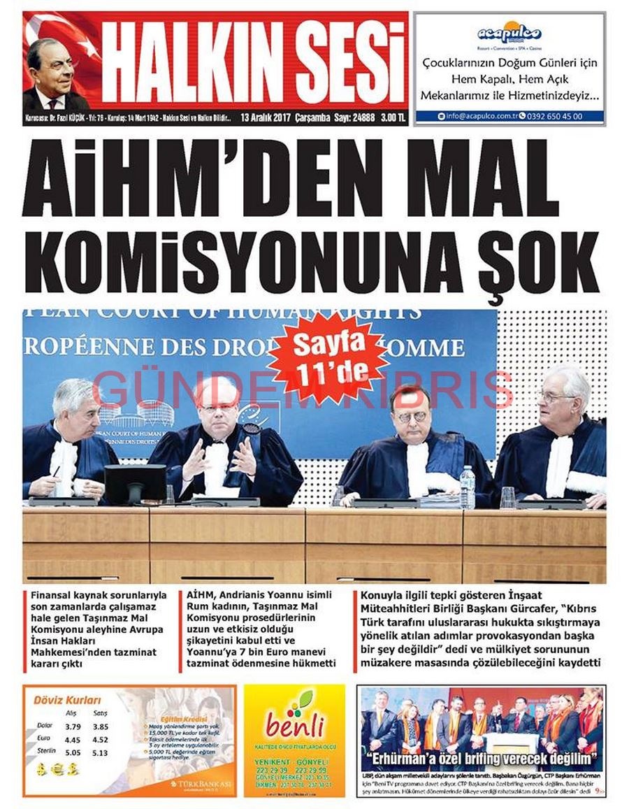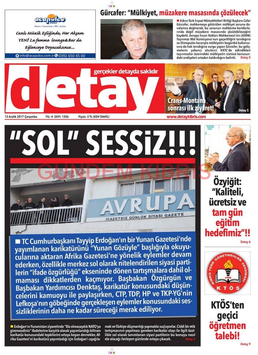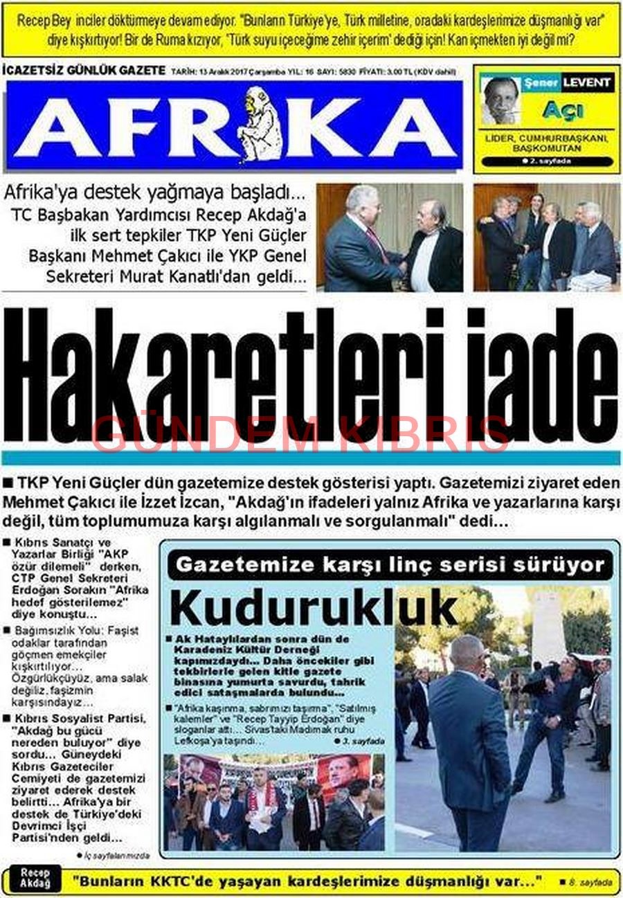 KKTC Gazete Manşetleri 13 Aralık 2017