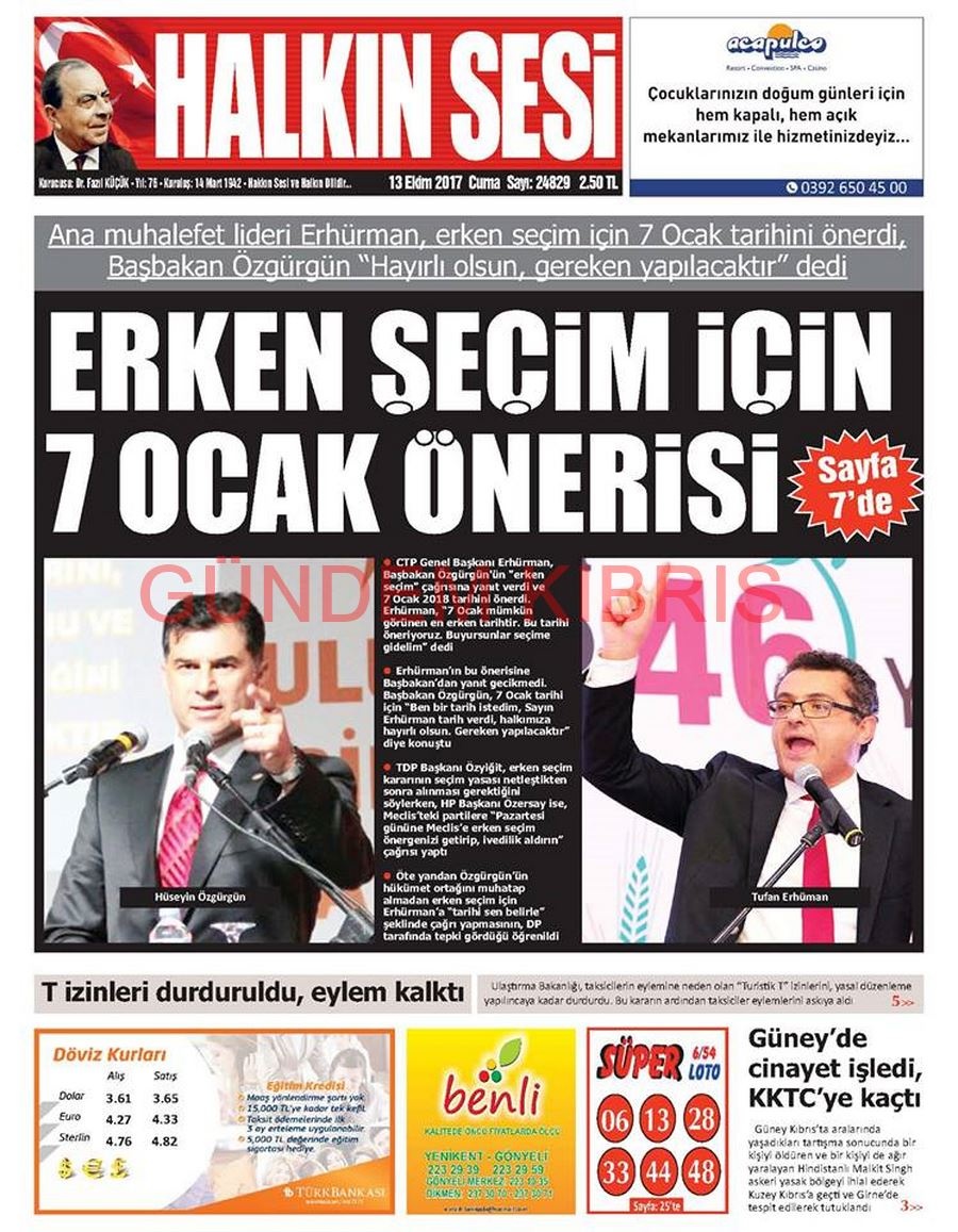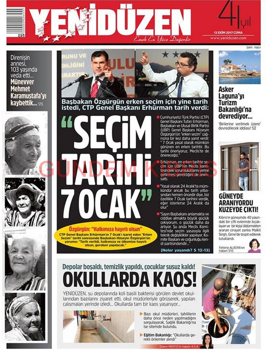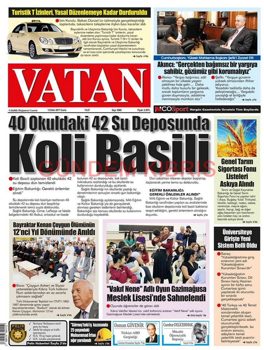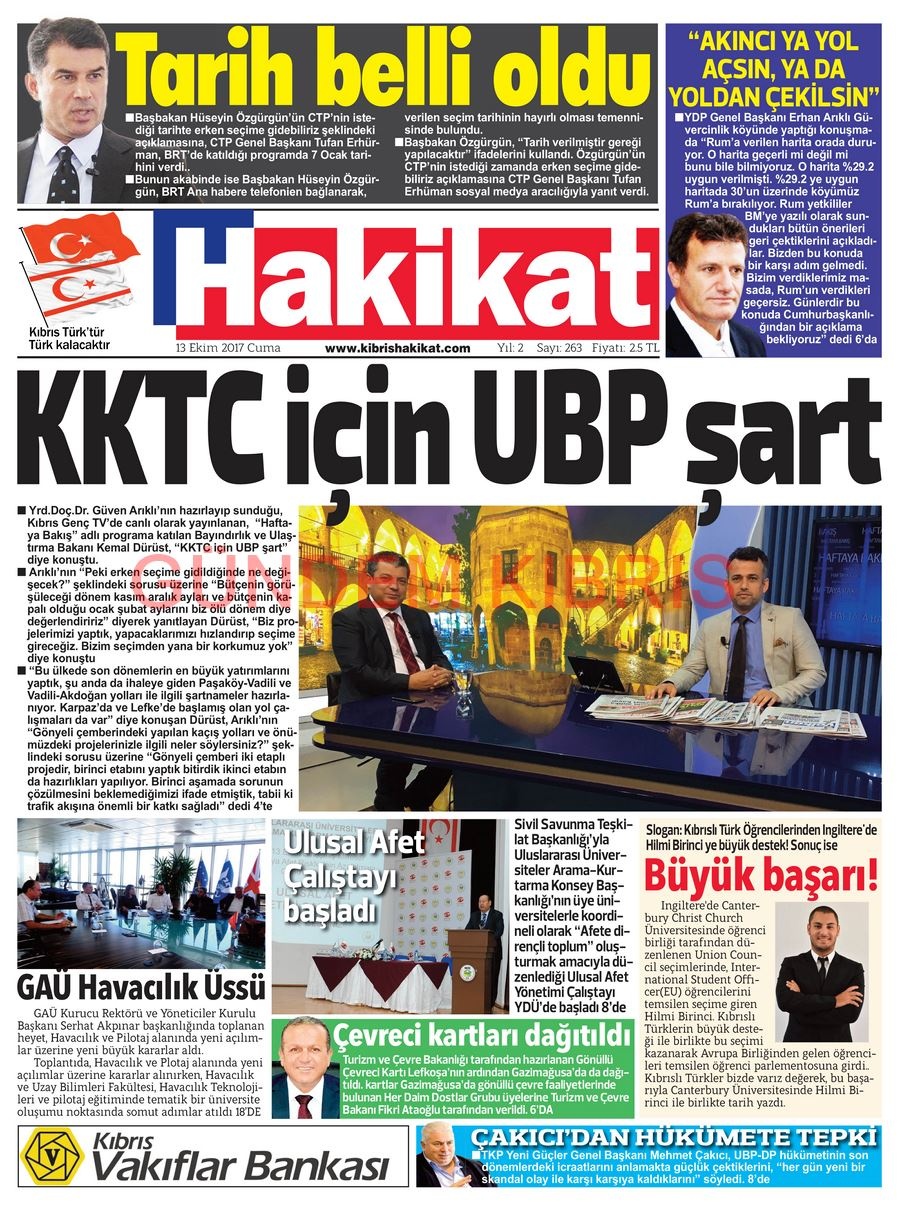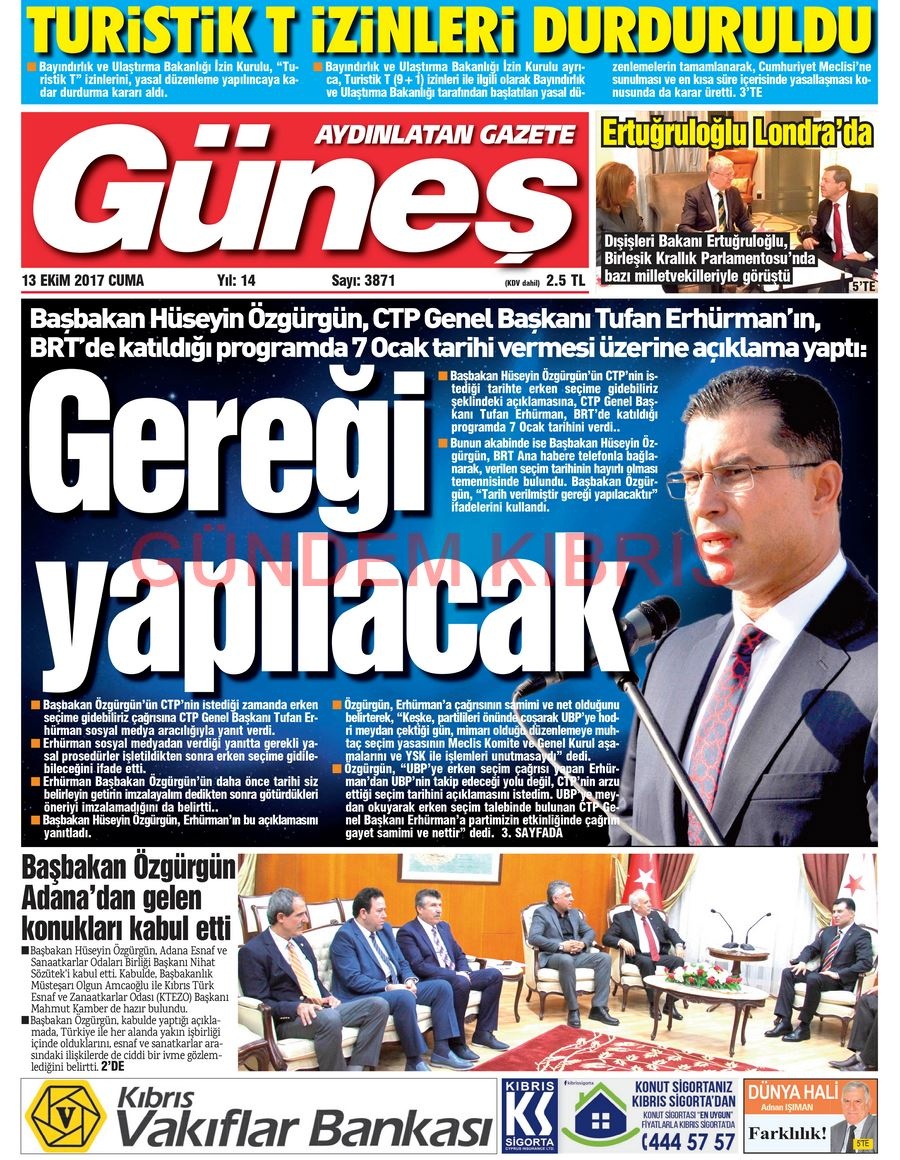 KKTC Gazete Manşetleri 13 Ekim 2017