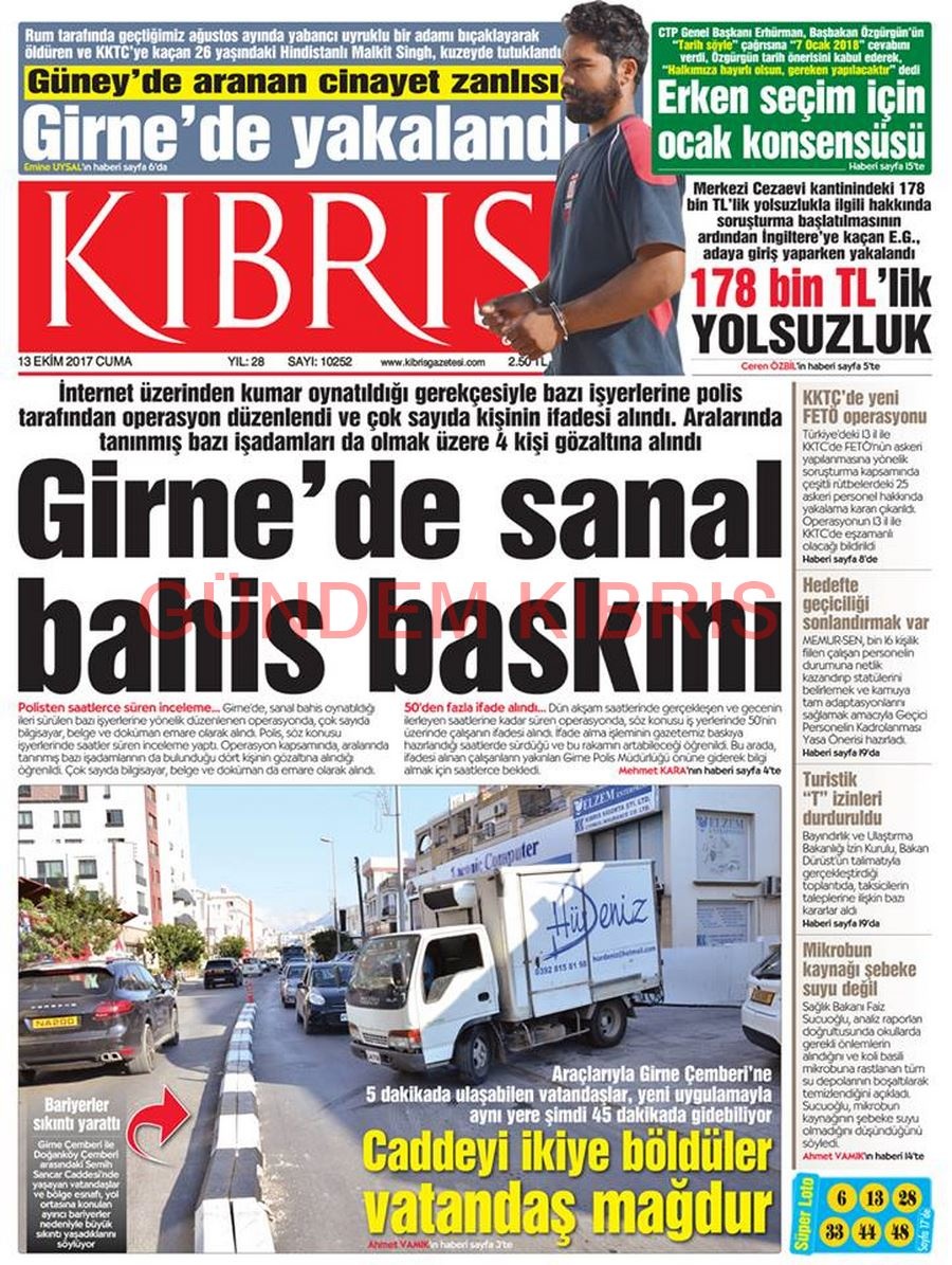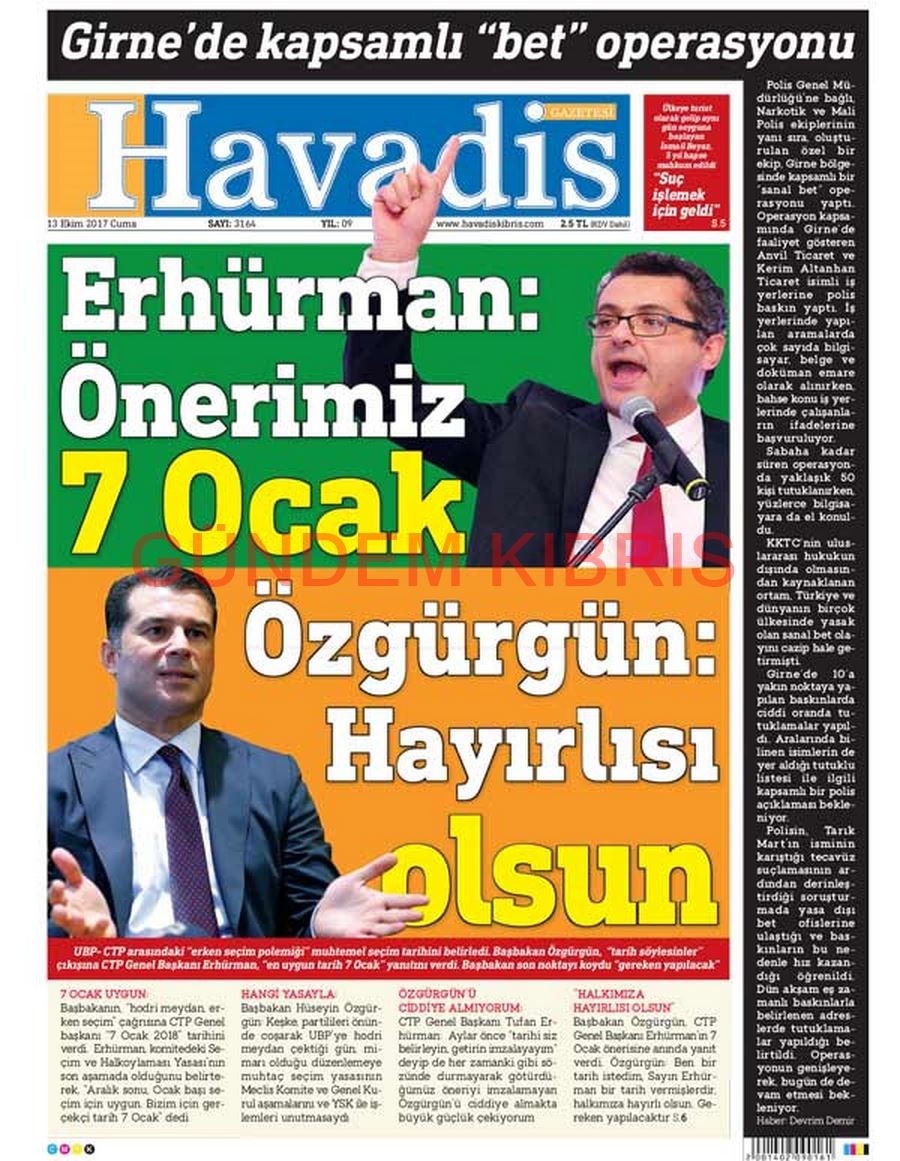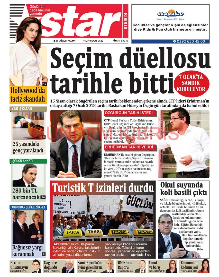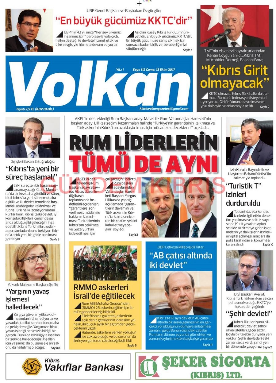 KKTC Gazete Manşetleri 13 Ekim 2017