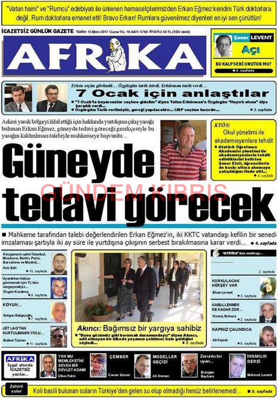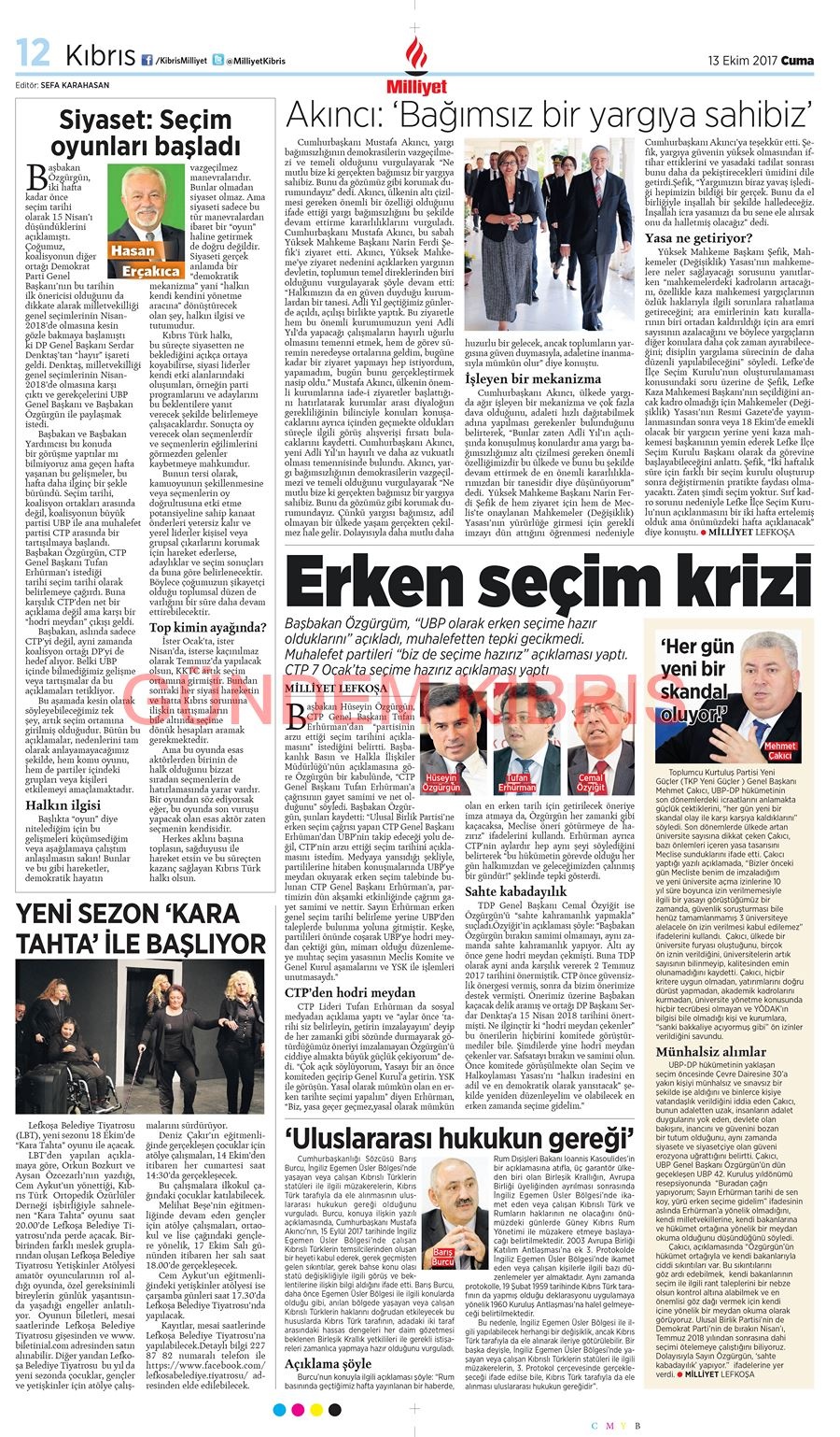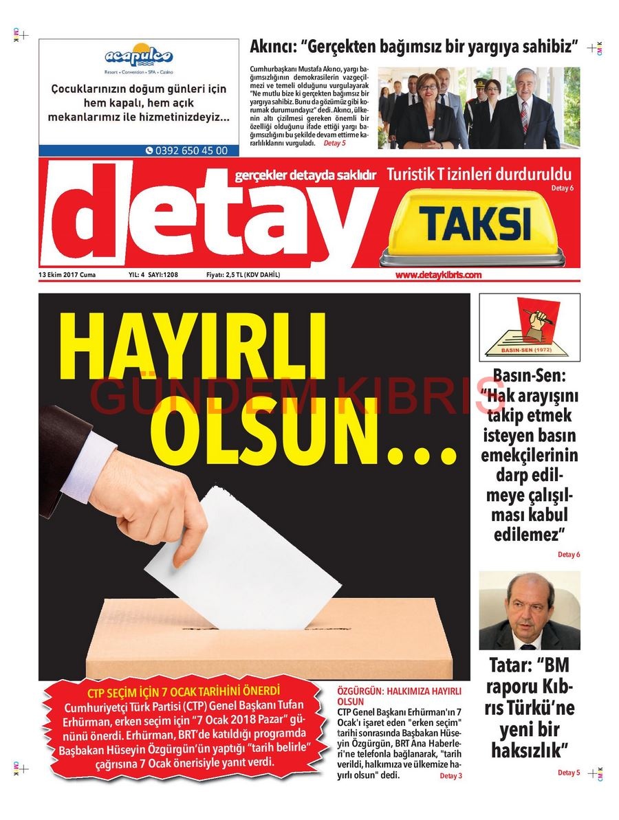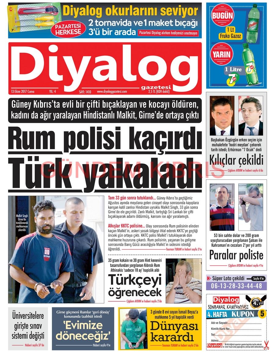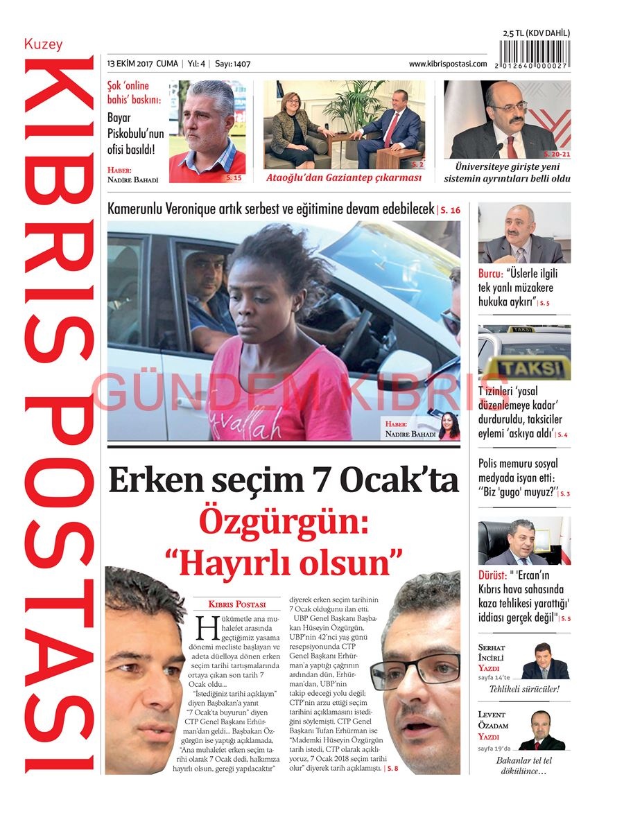 KKTC Gazete Manşetleri 13 Ekim 2017