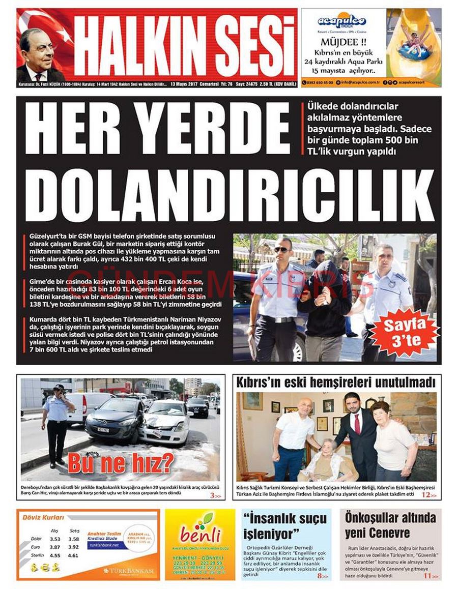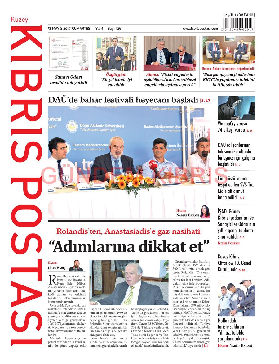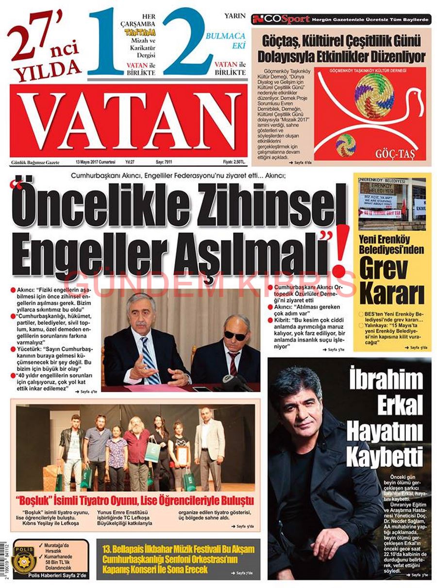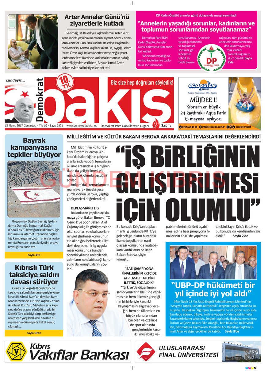 KKTC Gazete Manşetleri 13 Mayıs 2017