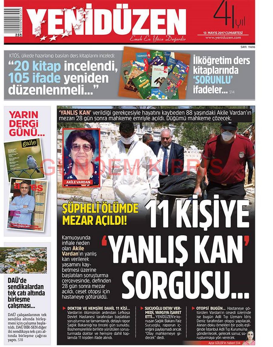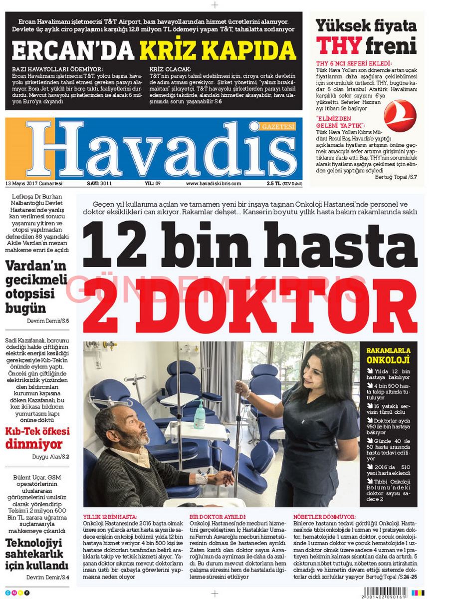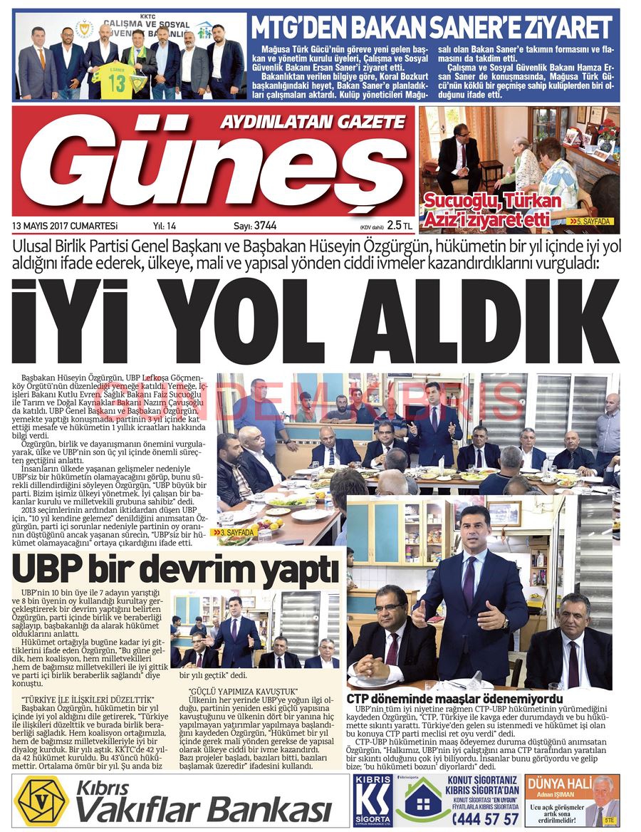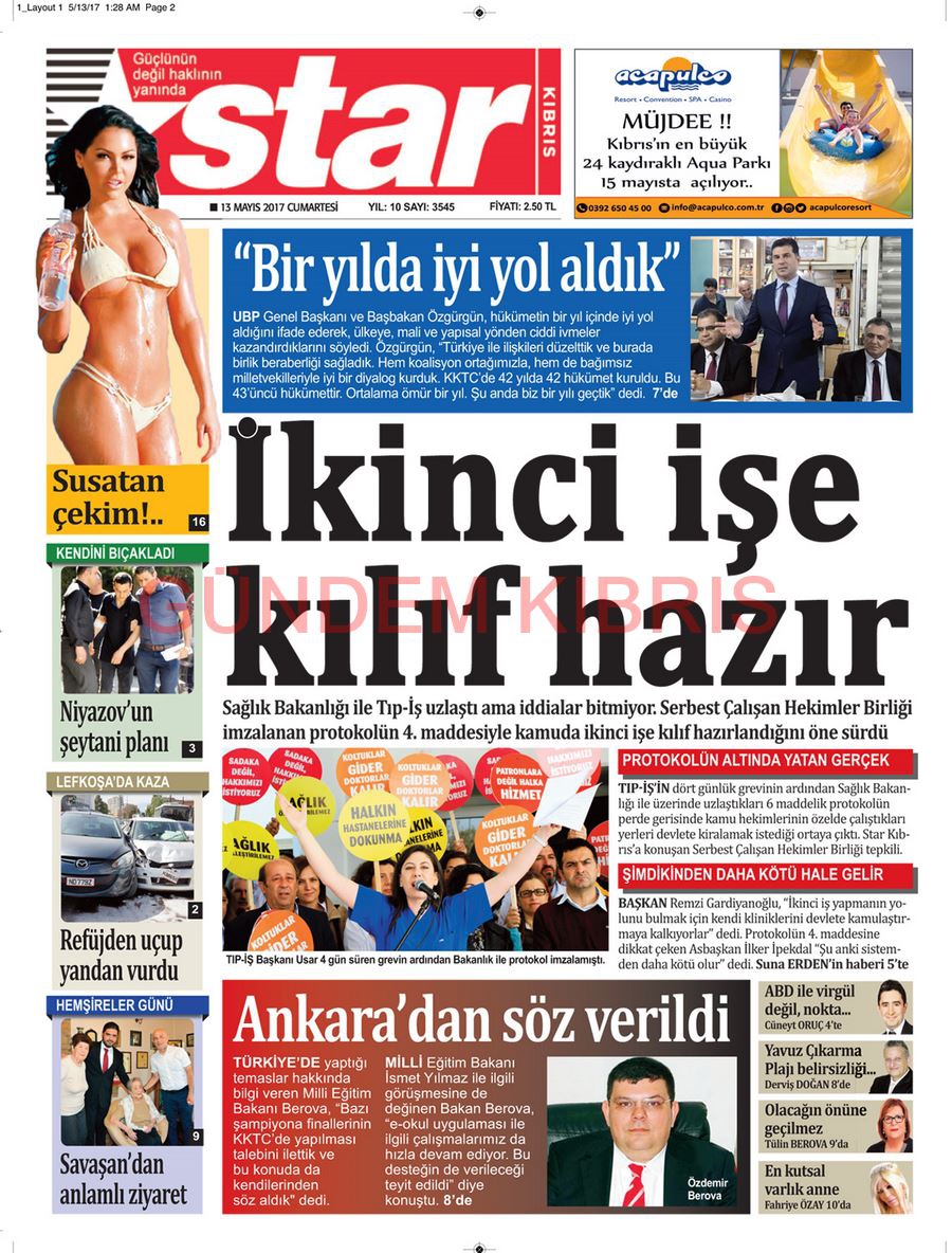 KKTC Gazete Manşetleri 13 Mayıs 2017