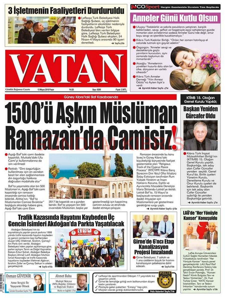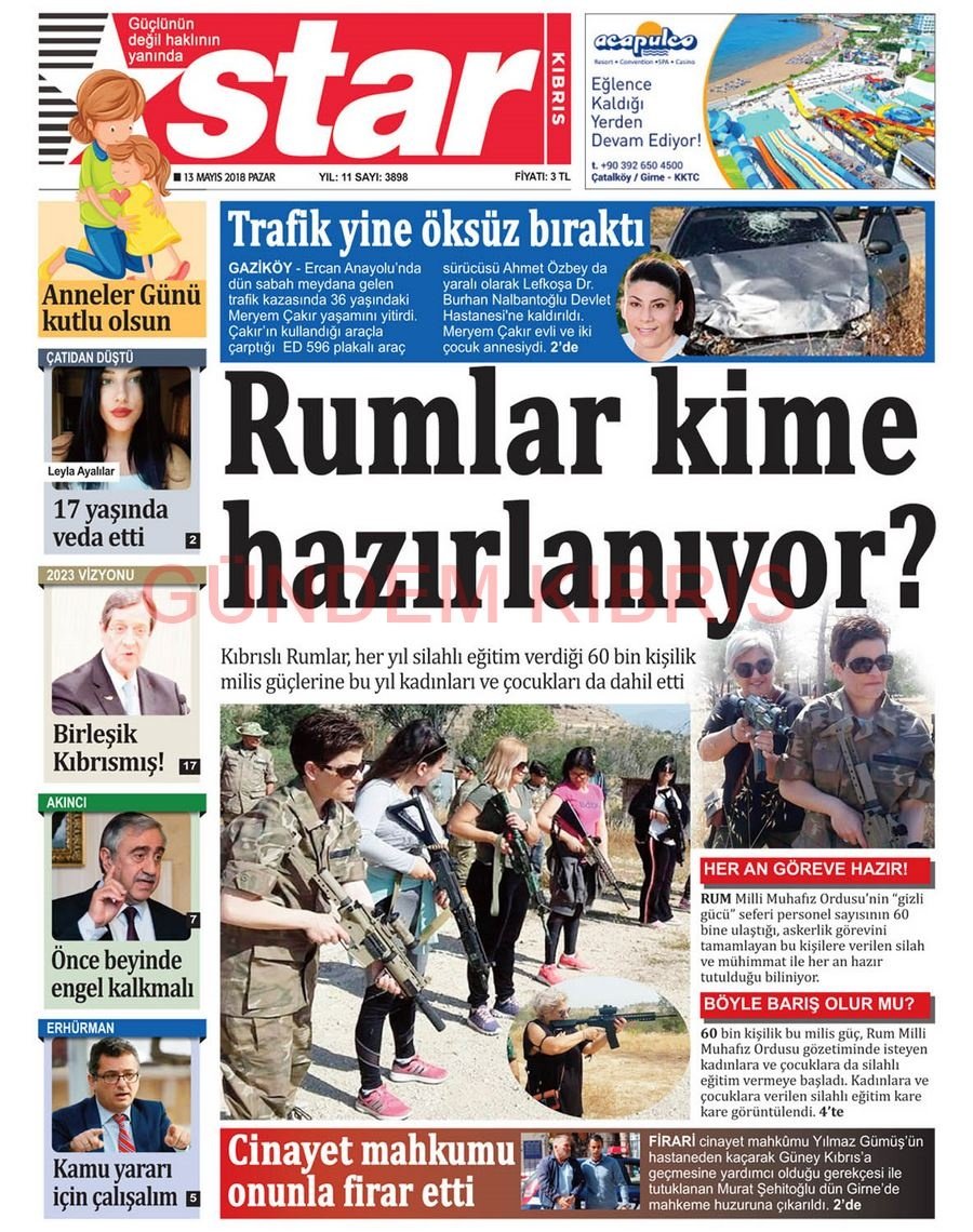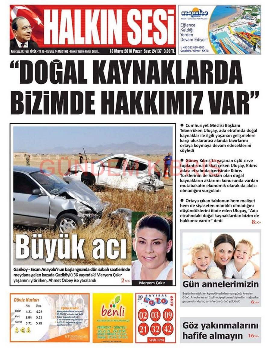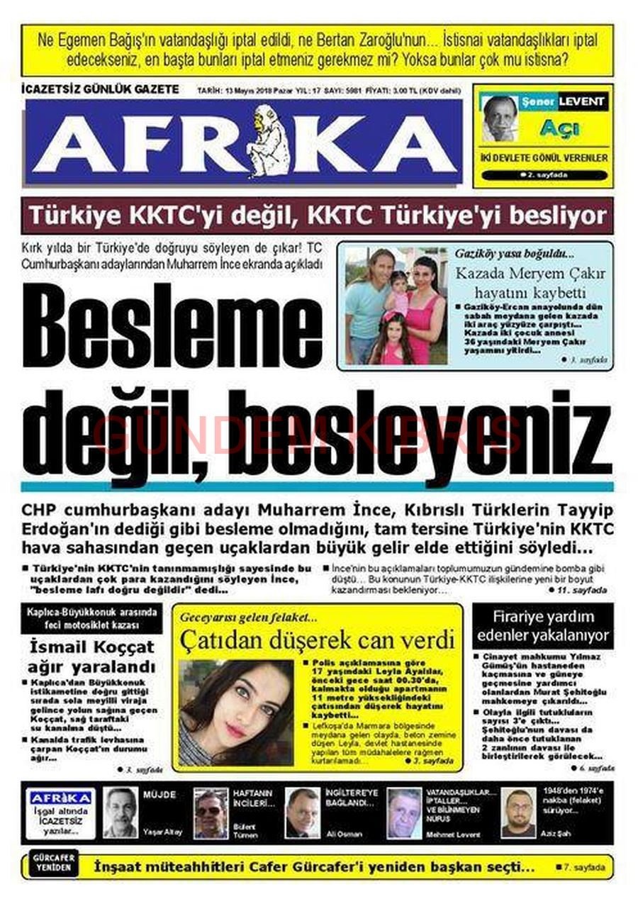 KKTC Gazete Manşetleri 13 Mayıs 2018
