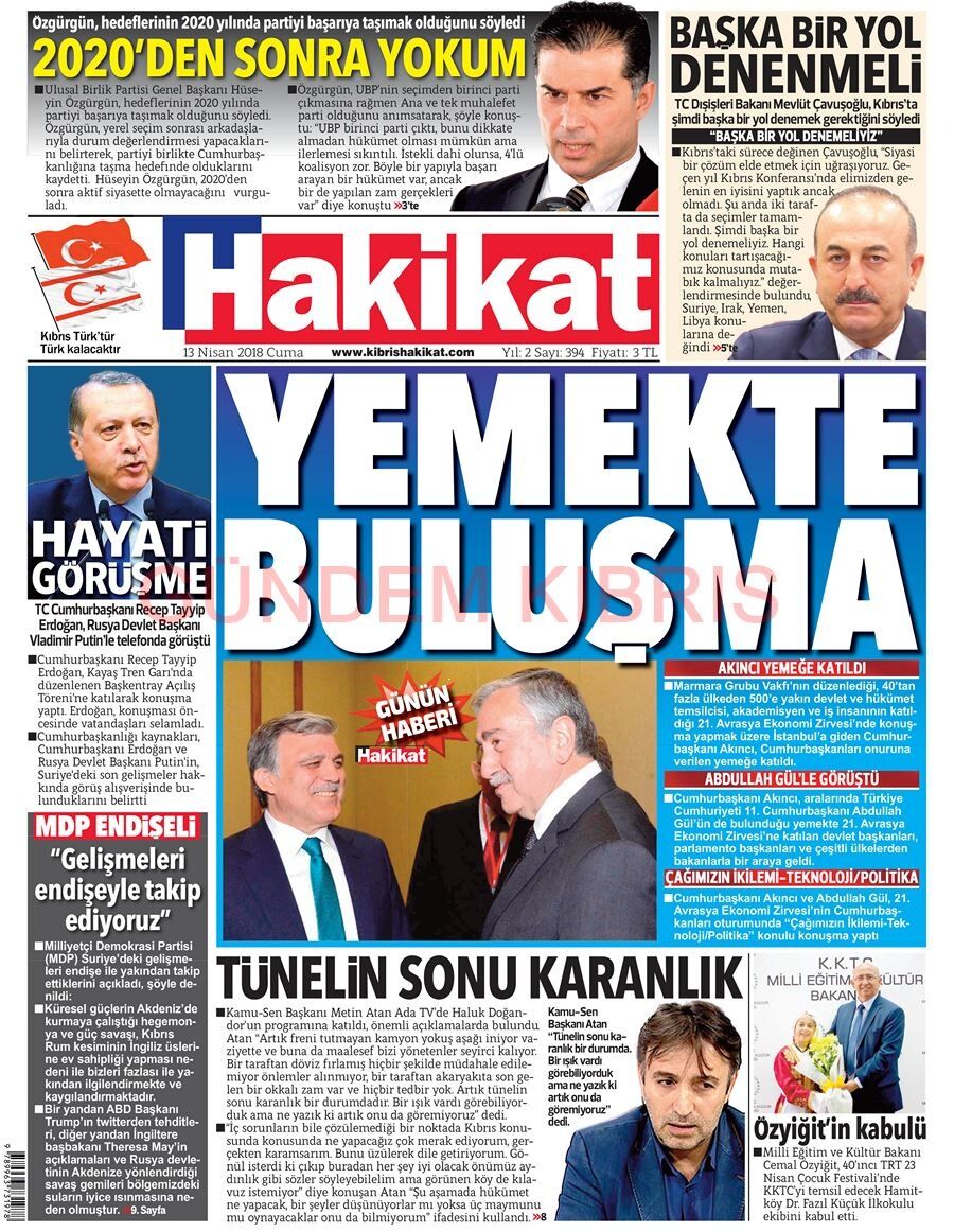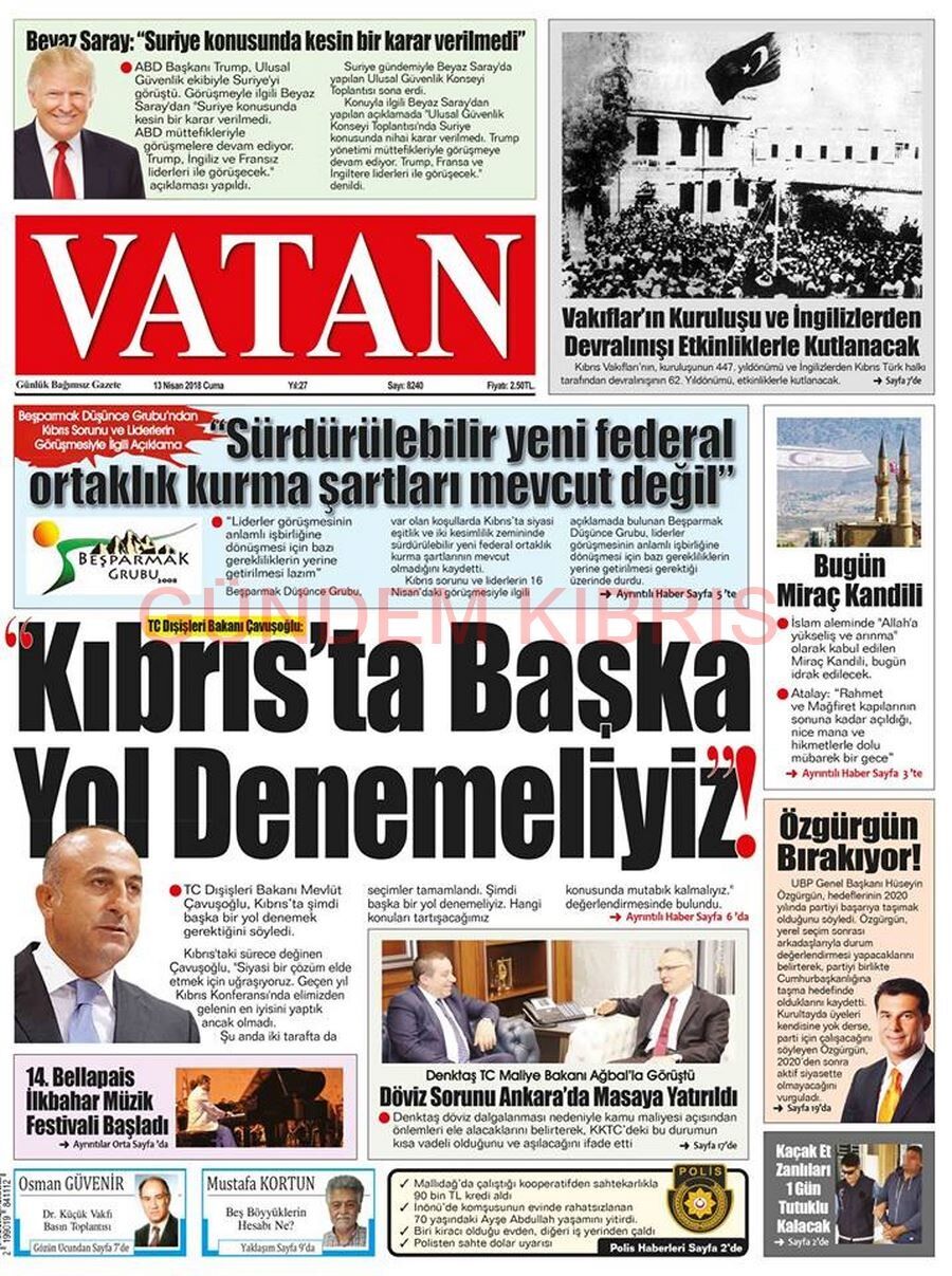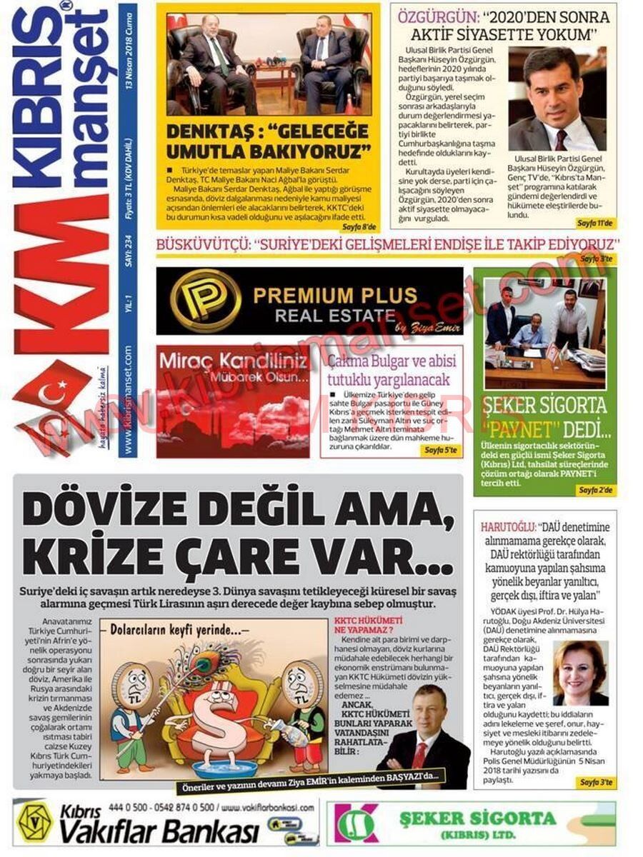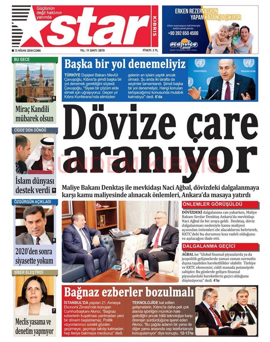 KKTC Gazete Manşetleri 13 Nisan 2018