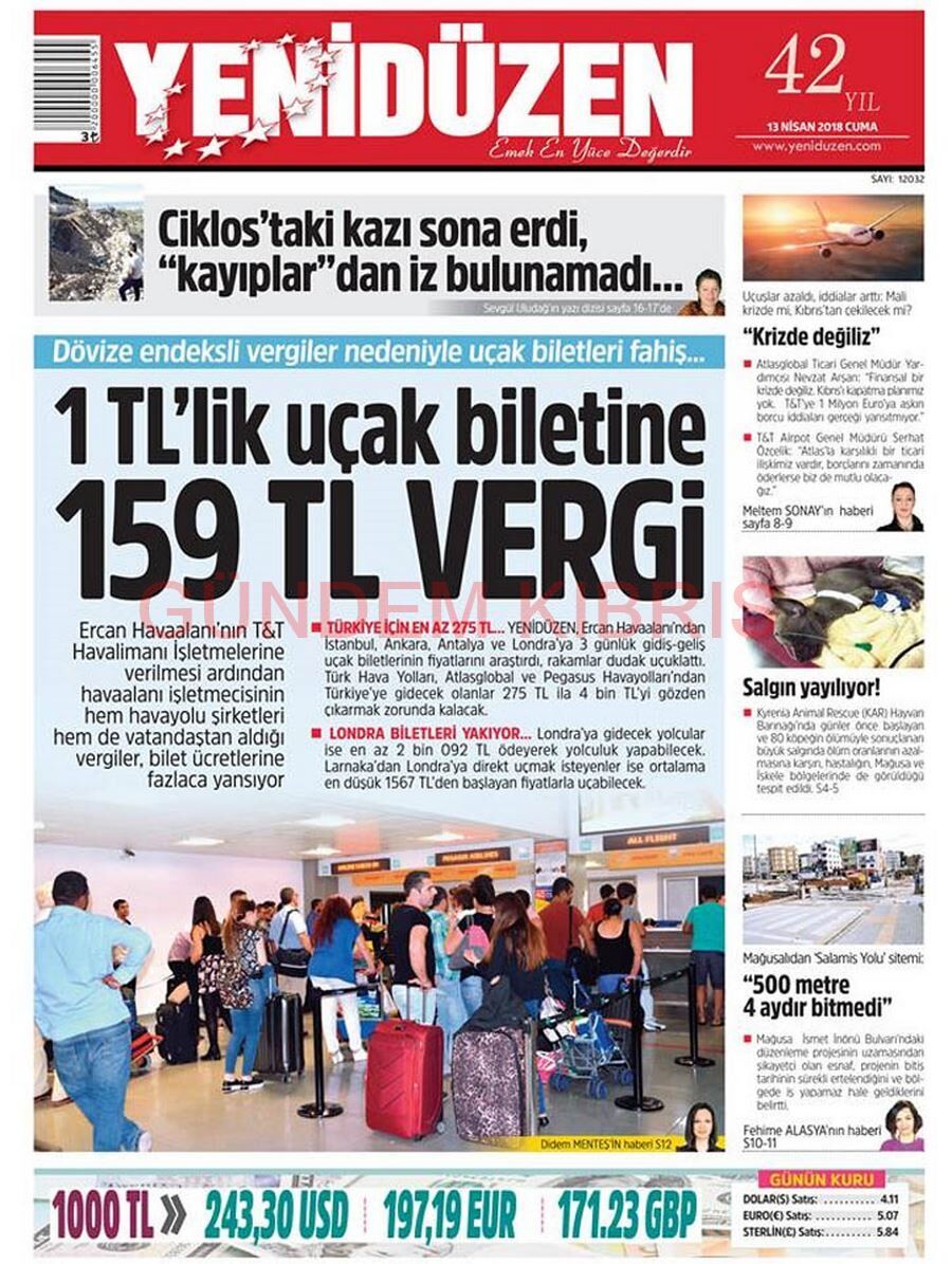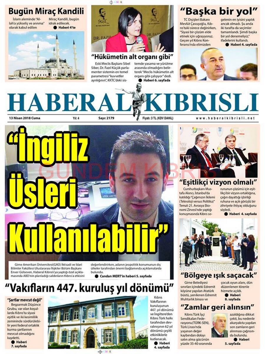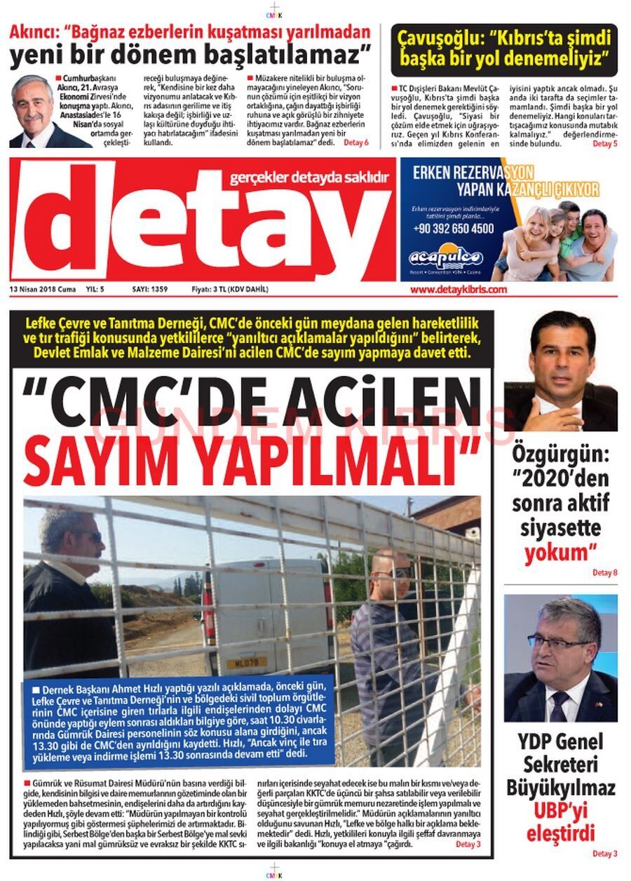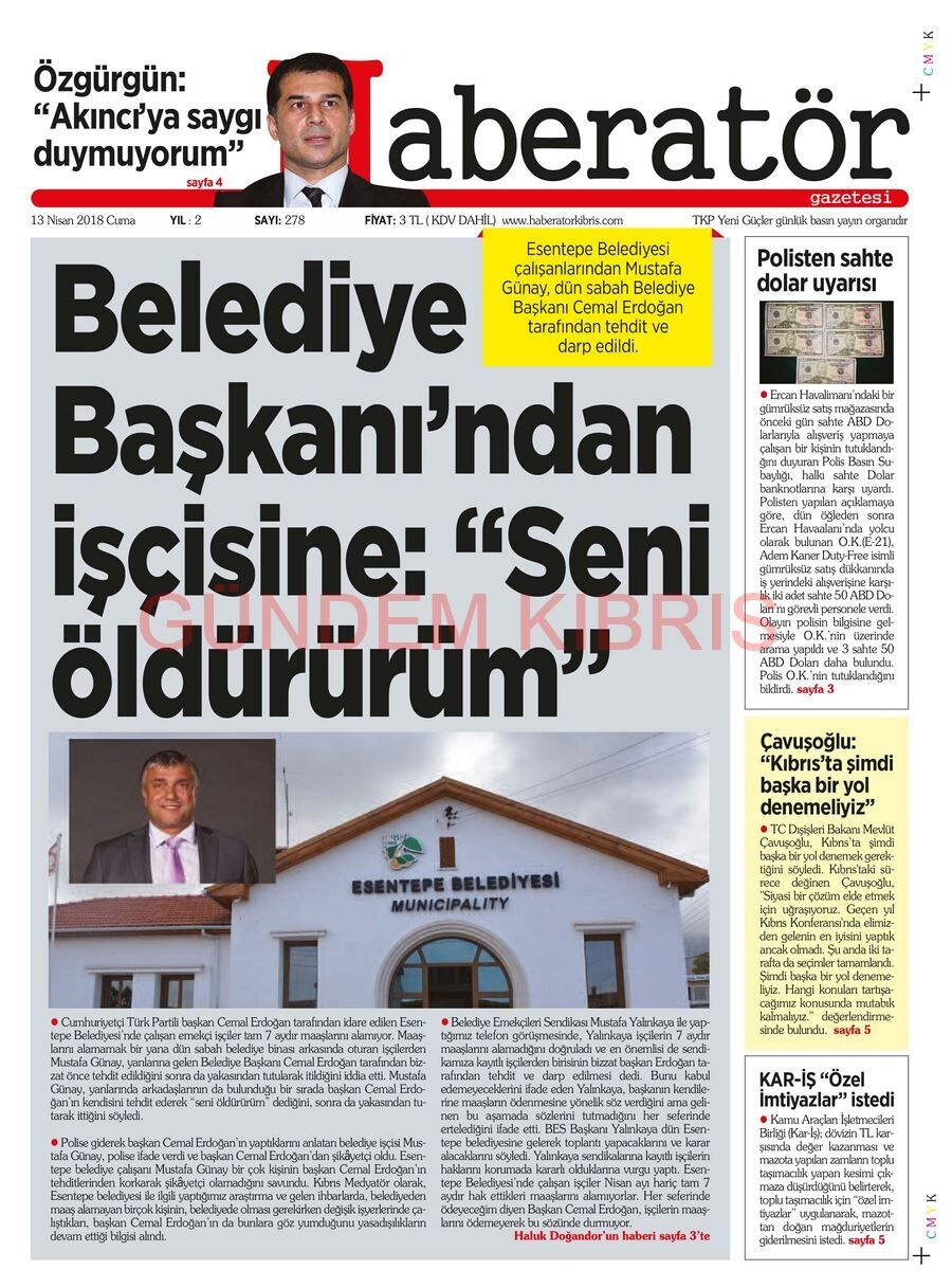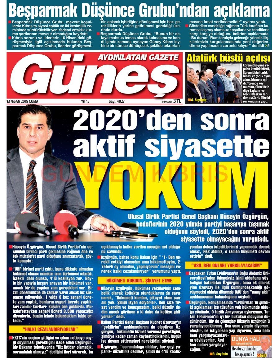 KKTC Gazete Manşetleri 13 Nisan 2018