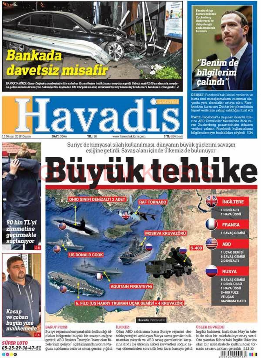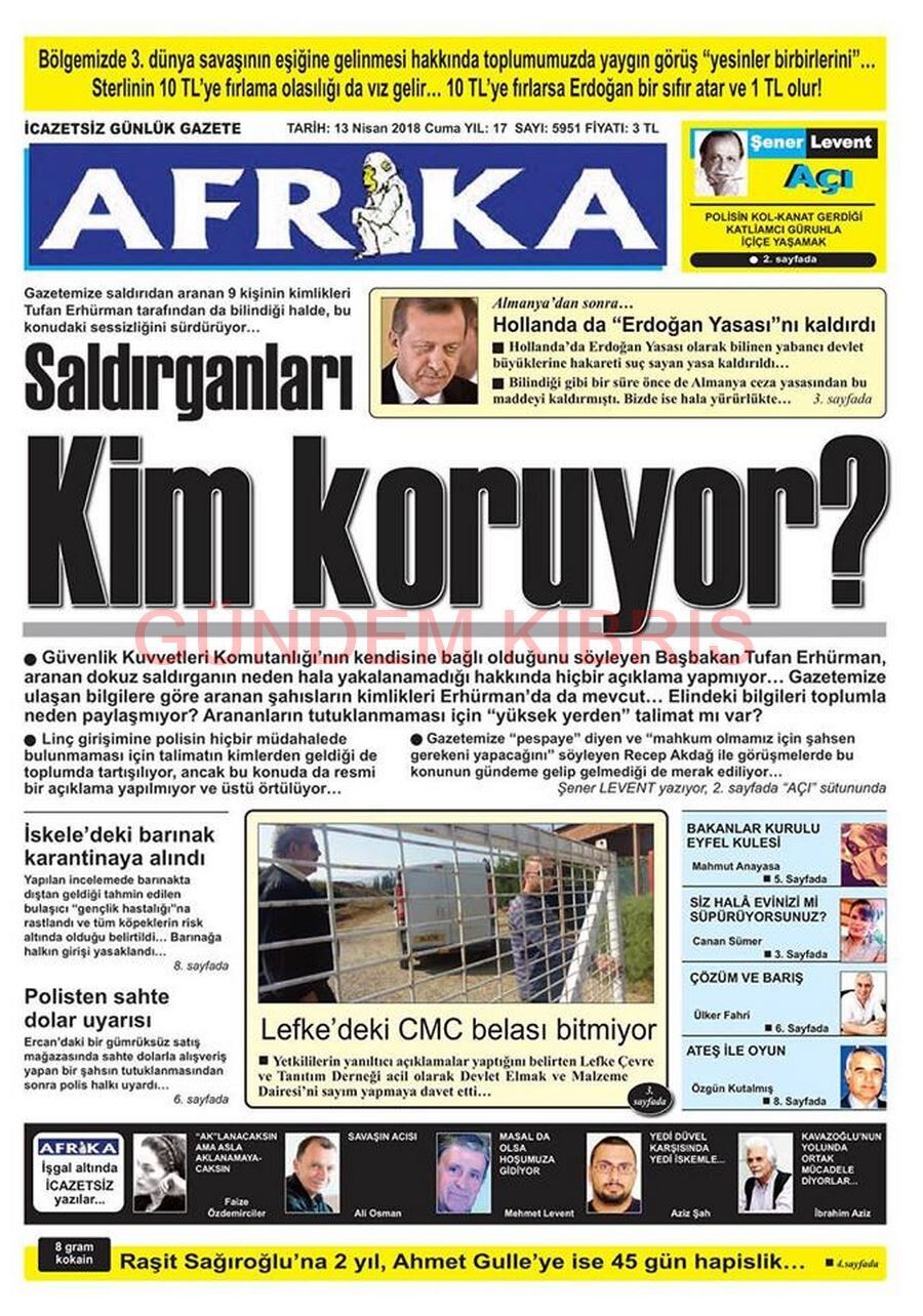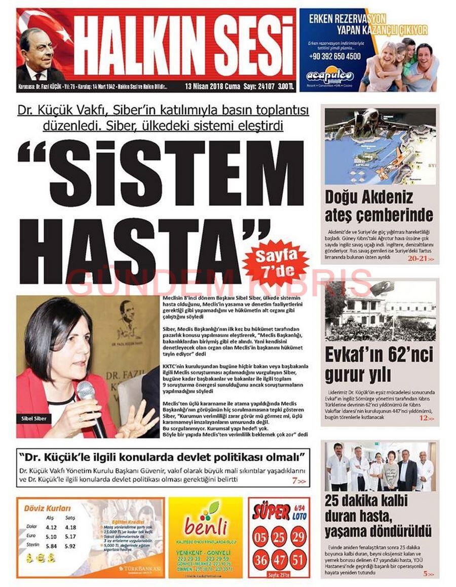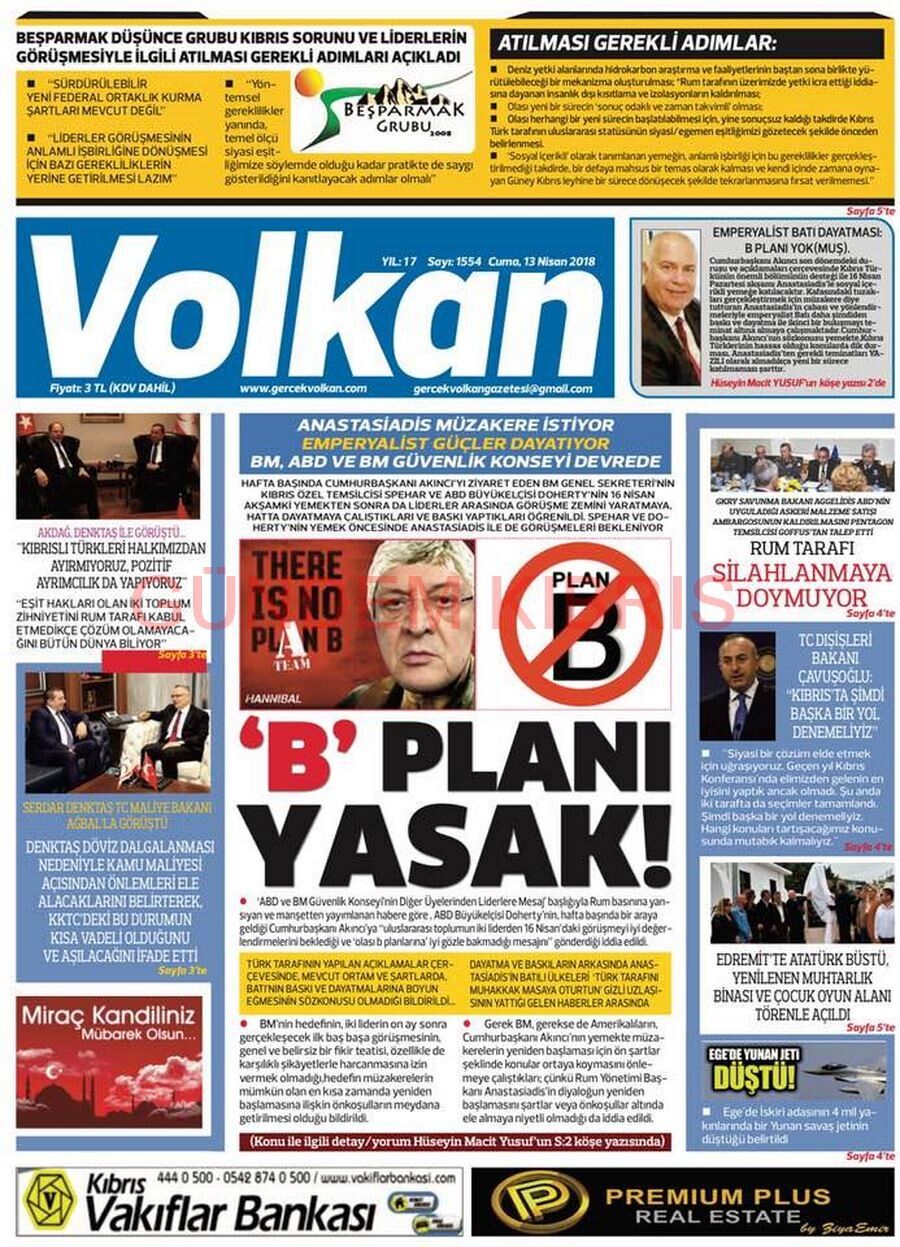 KKTC Gazete Manşetleri 13 Nisan 2018