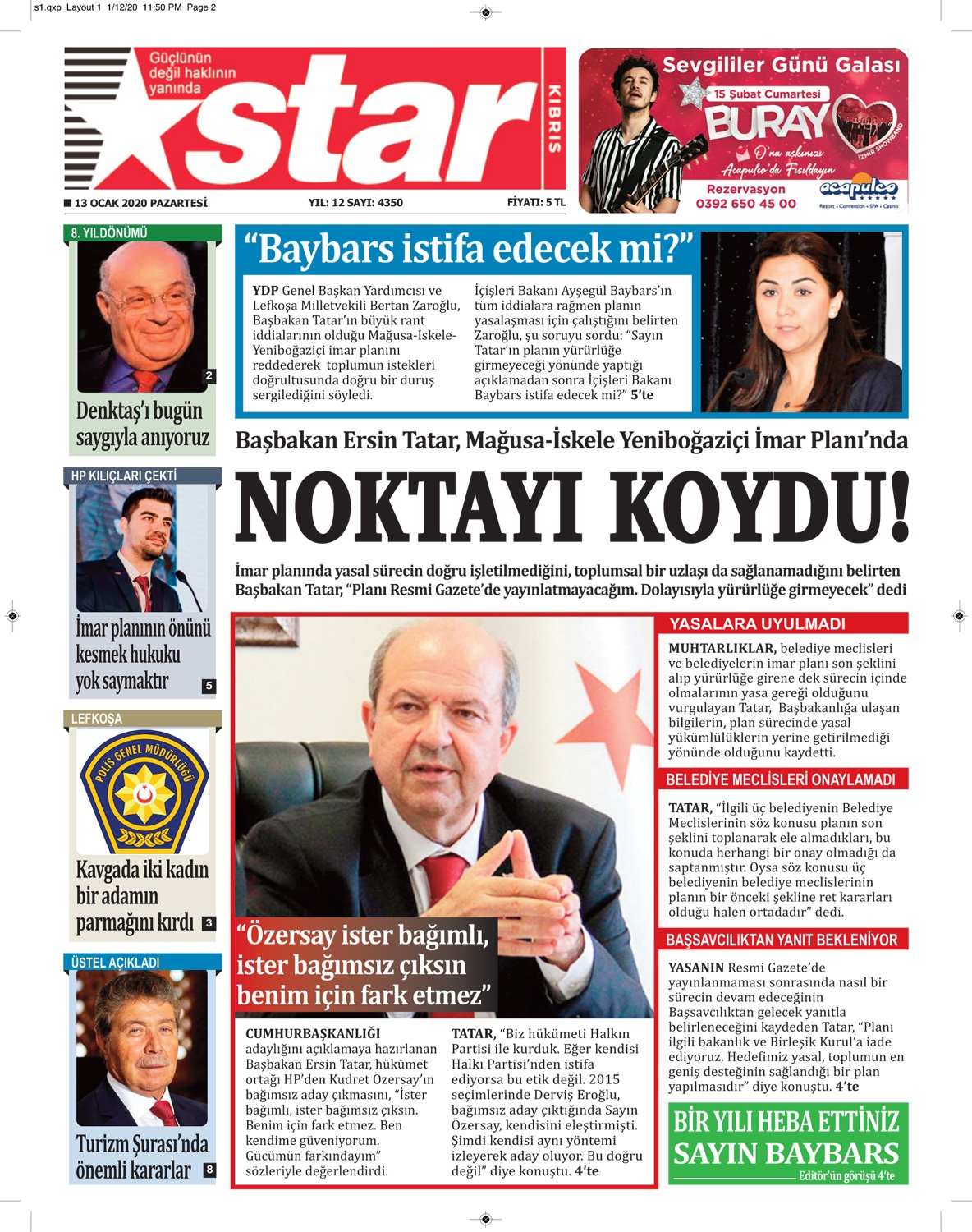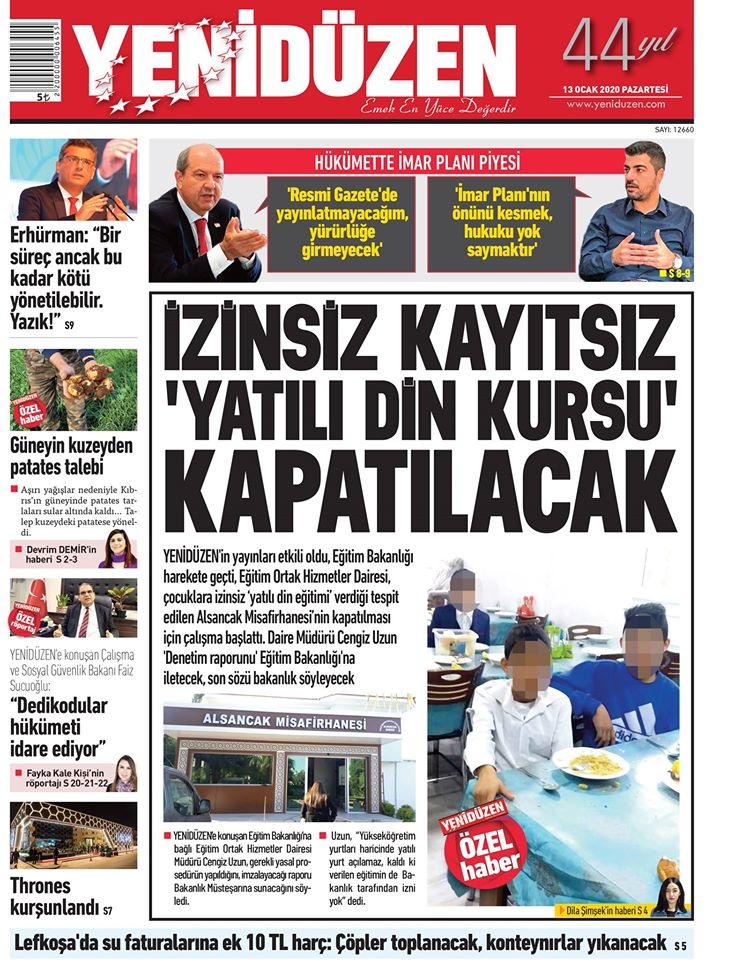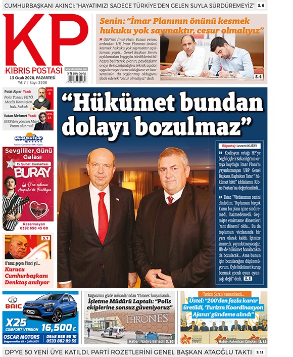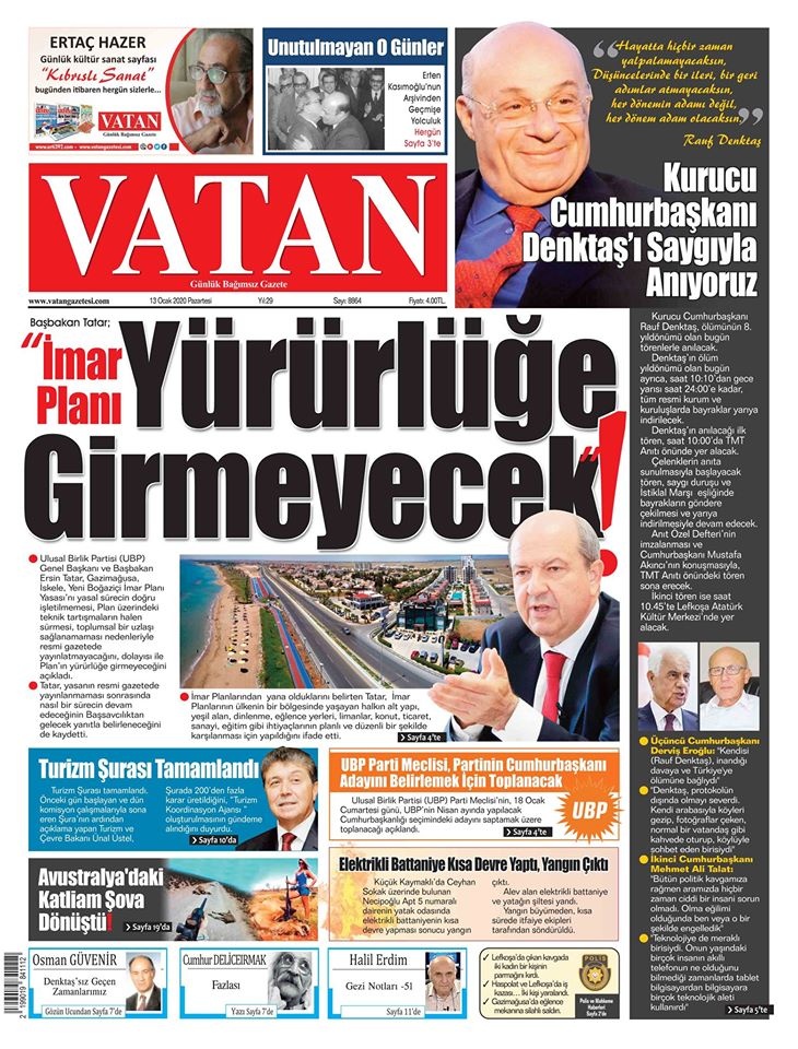 KKTC Gazete Manşetleri -13 Ocak 2020