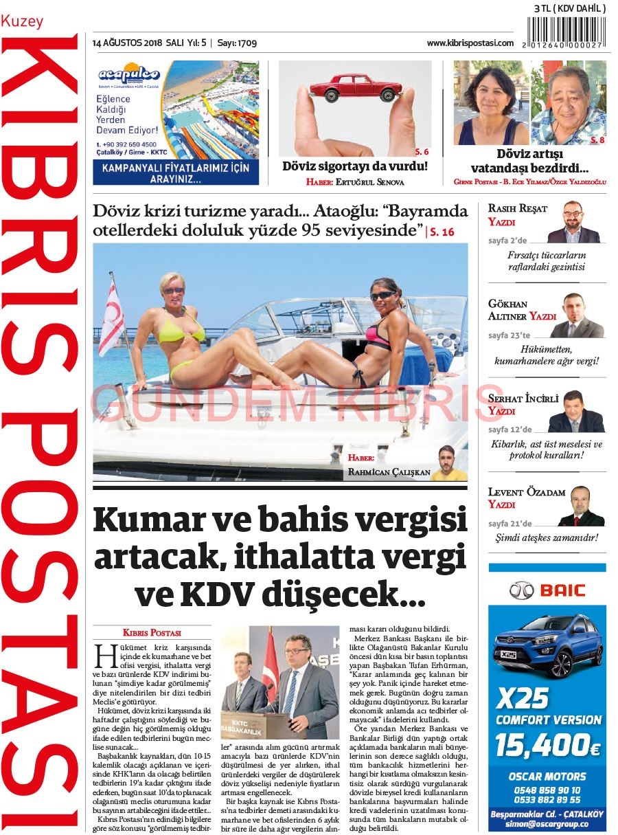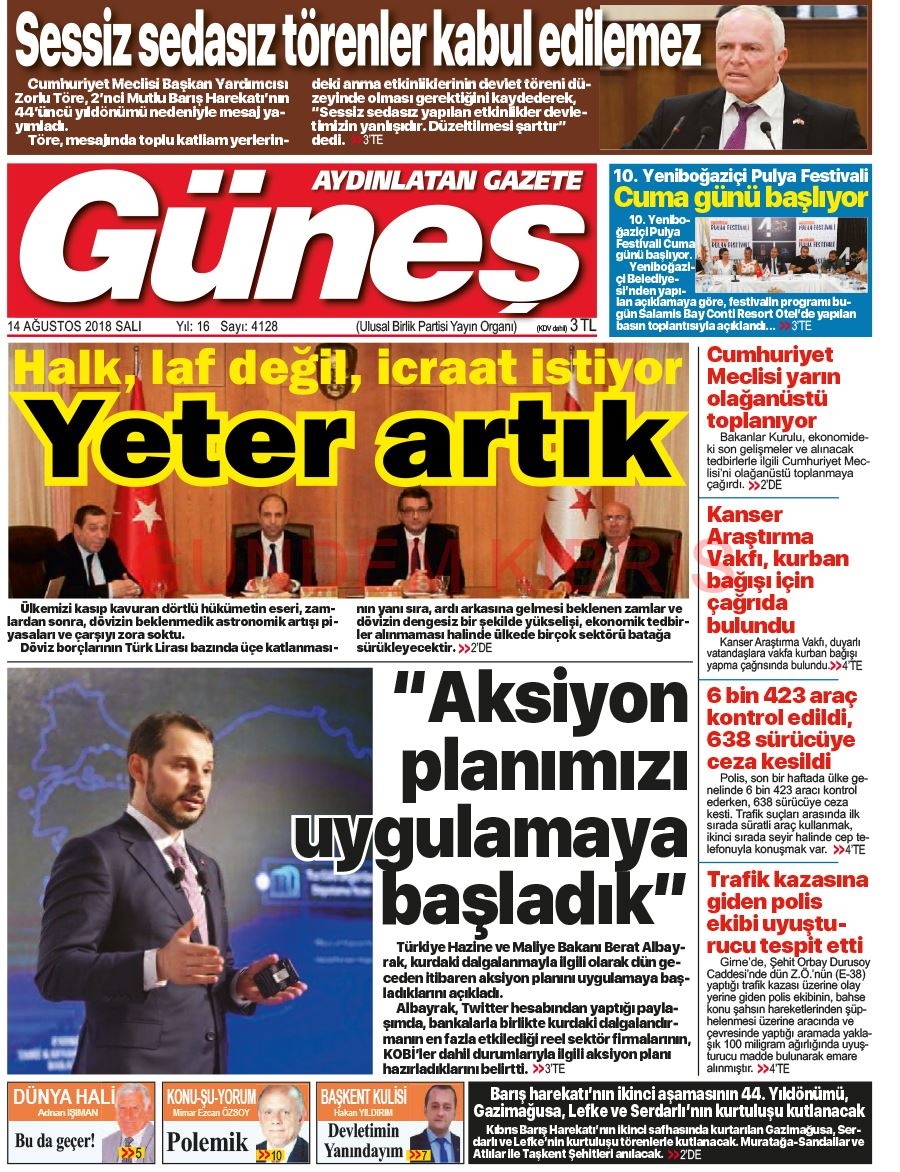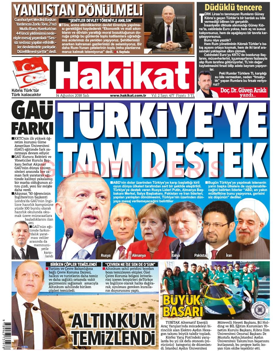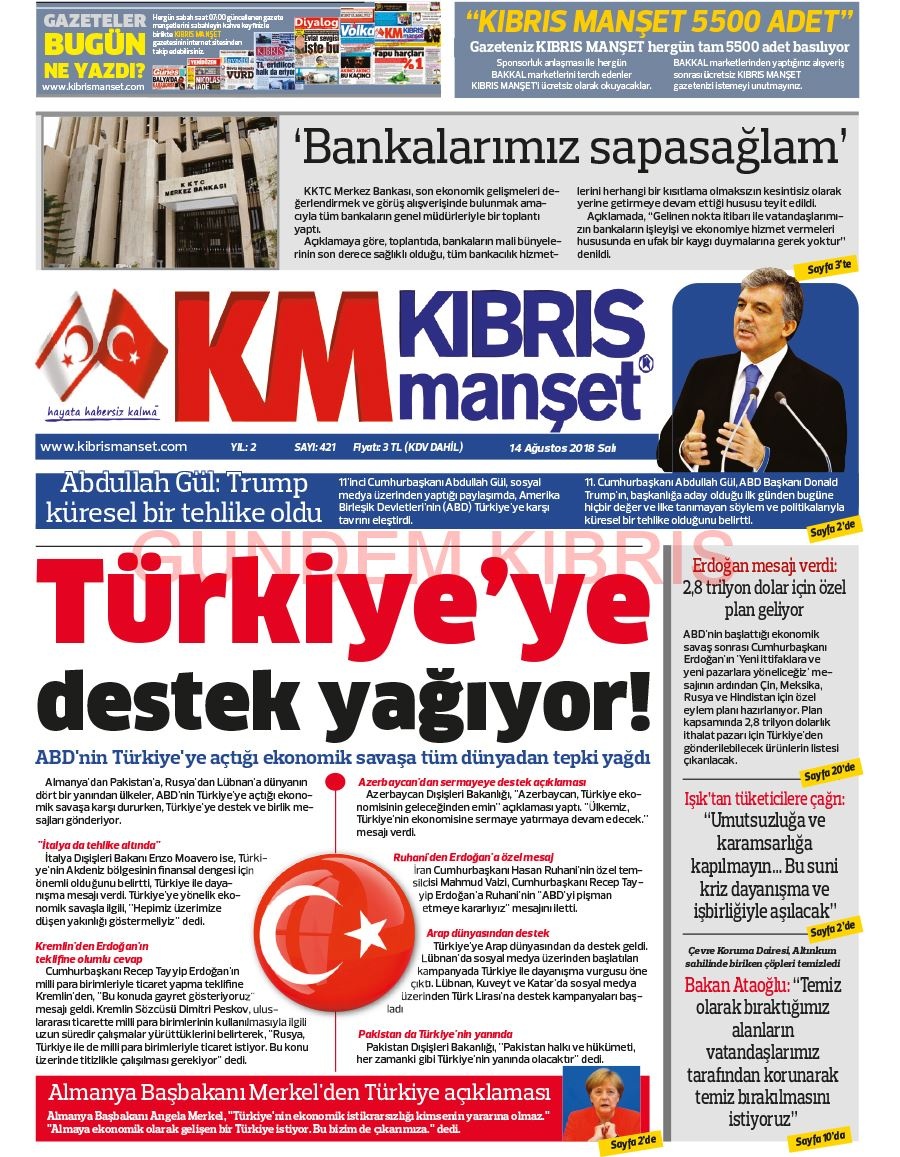KKTC Gazete Manşetleri 14 Ağustos 2018