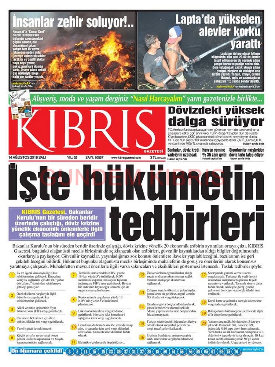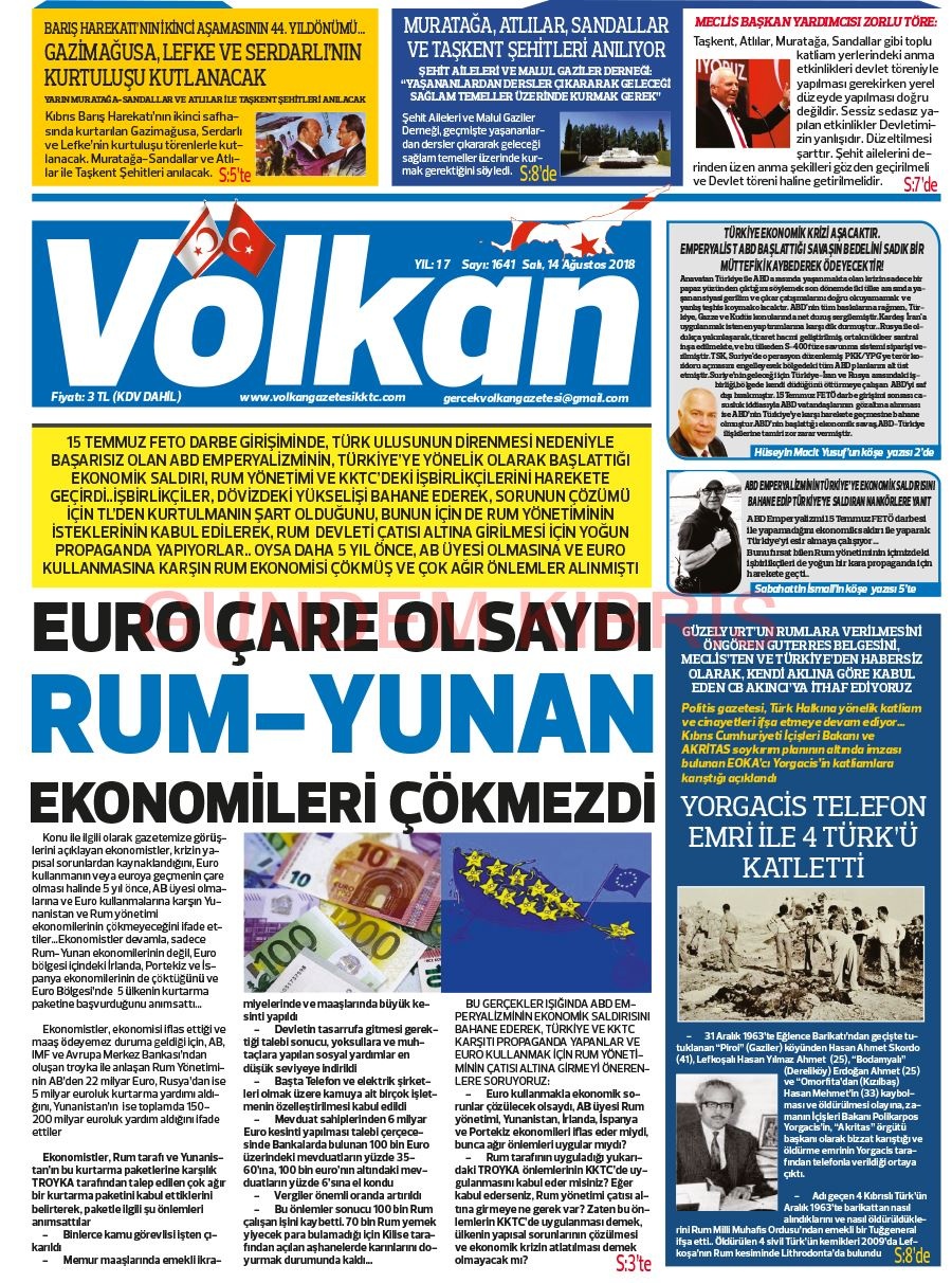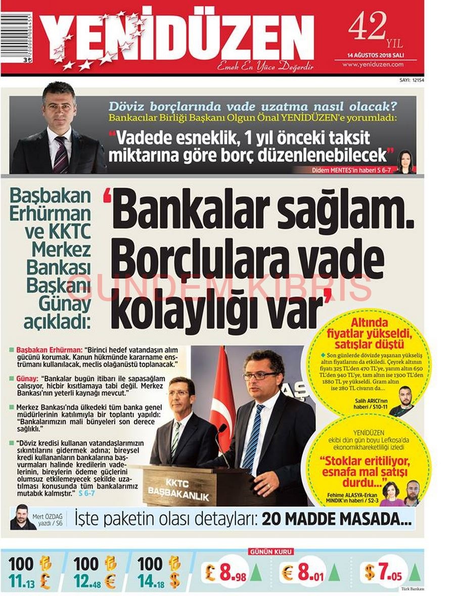 KKTC Gazete Manşetleri 14 Ağustos 2018