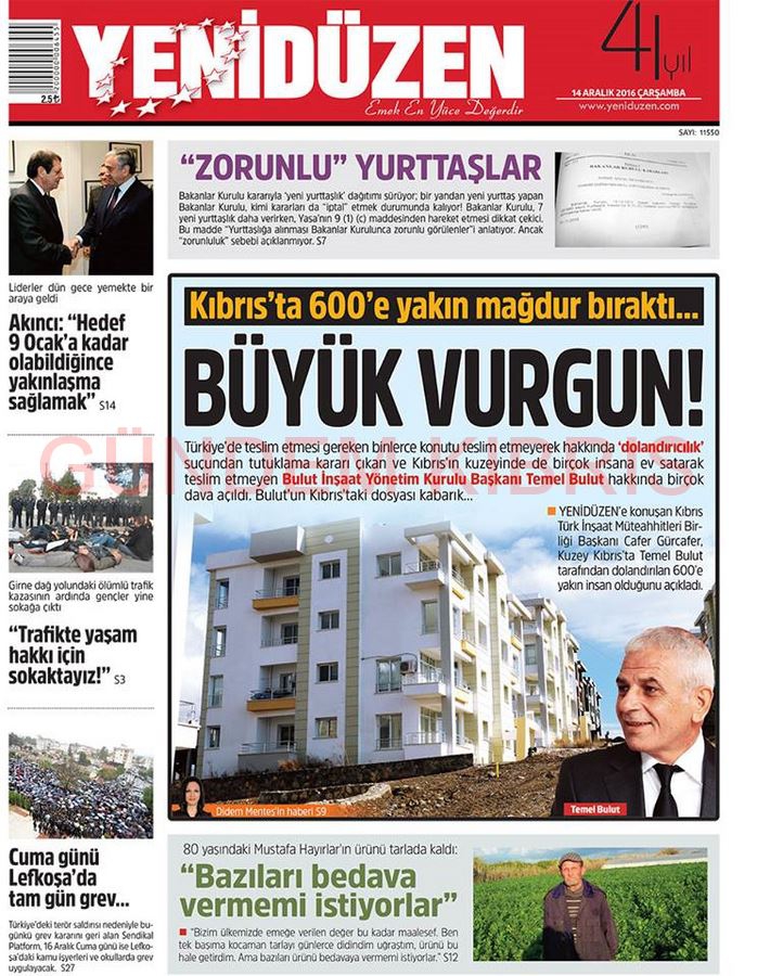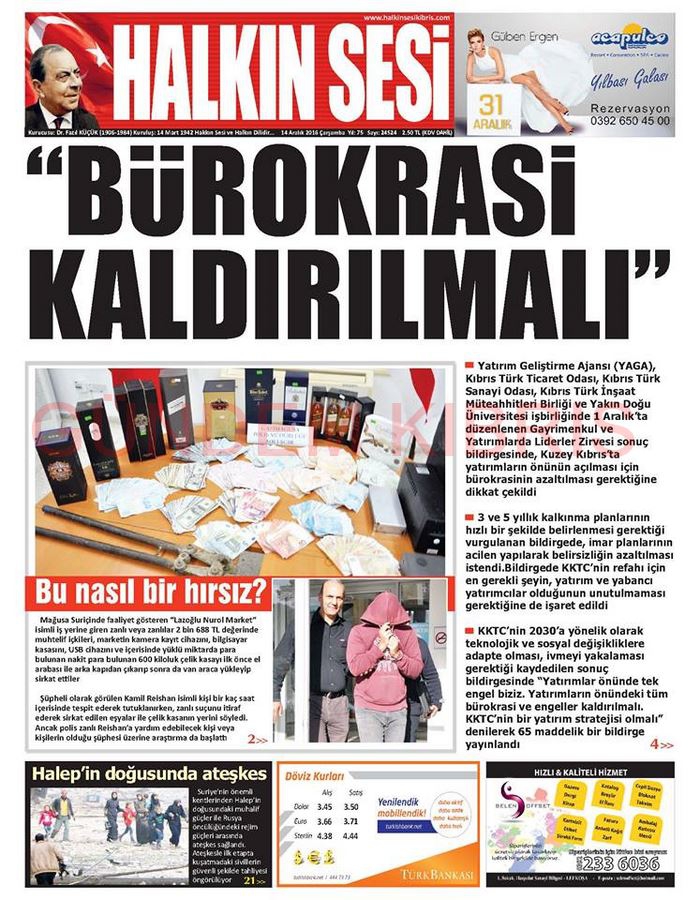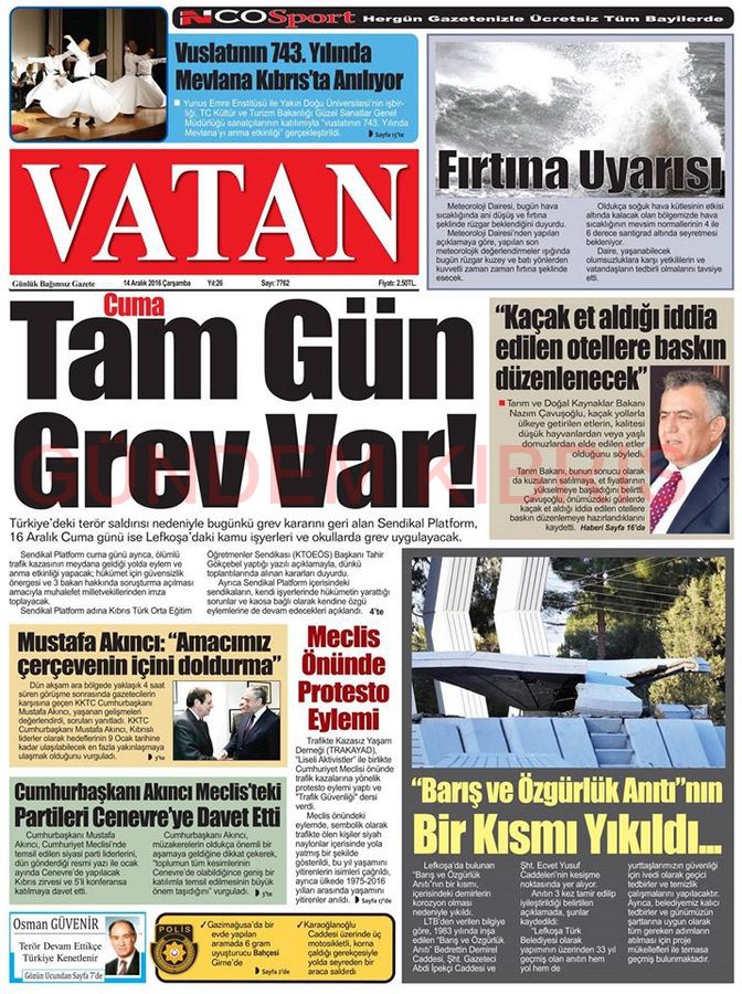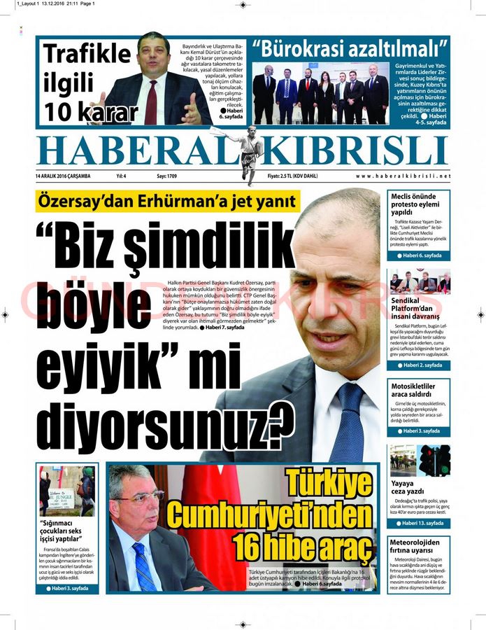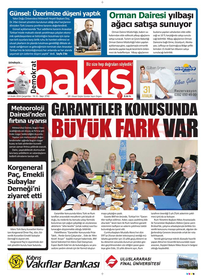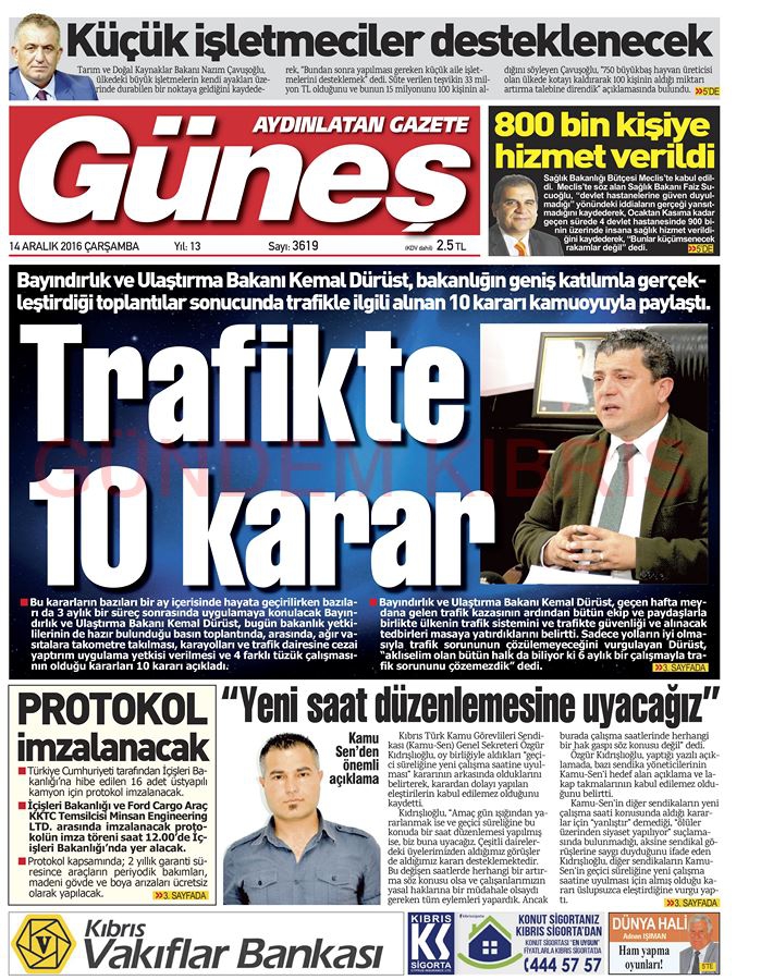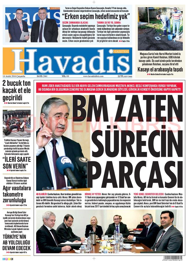 KKTC Gazete Manşetleri 14 Aralık 2016
