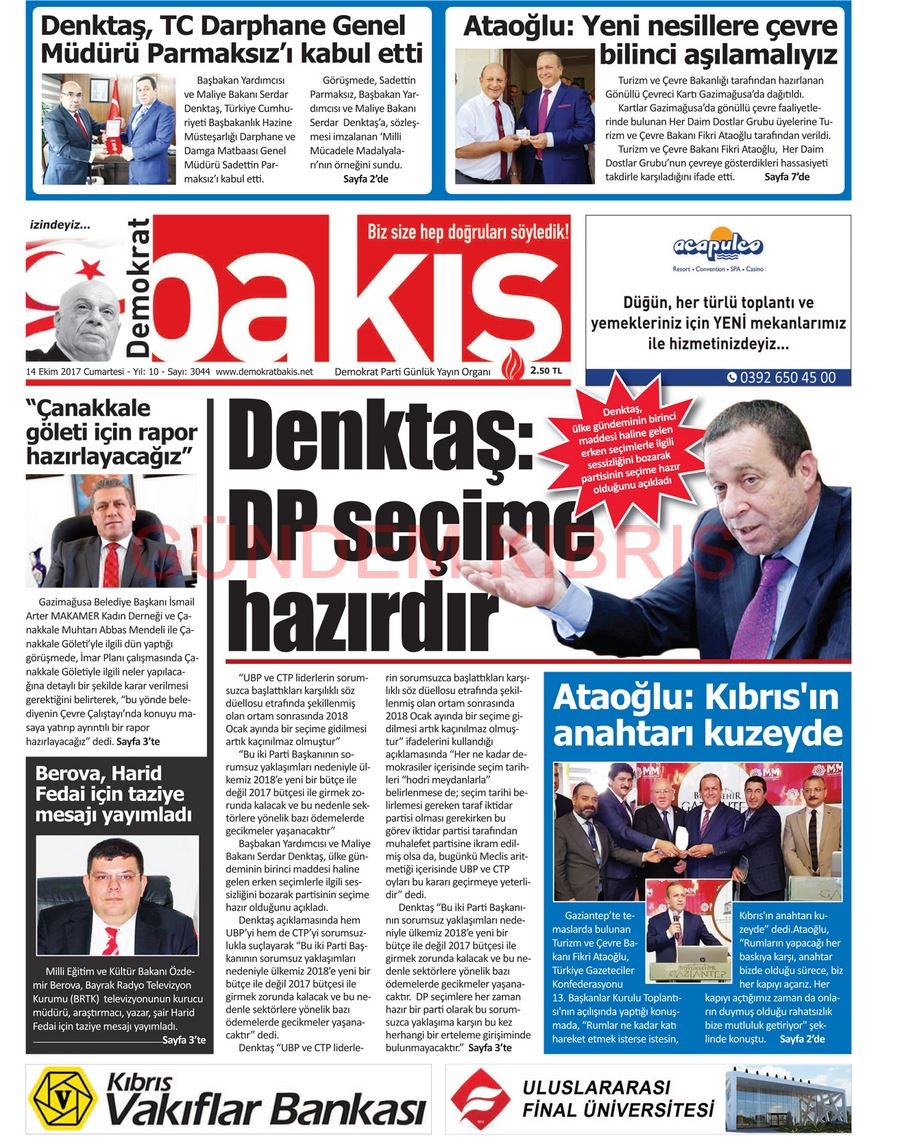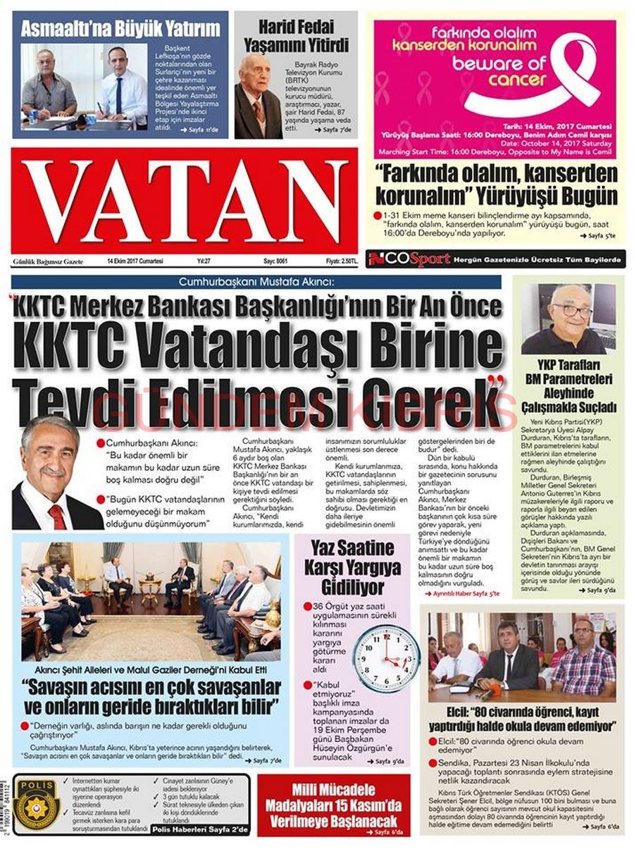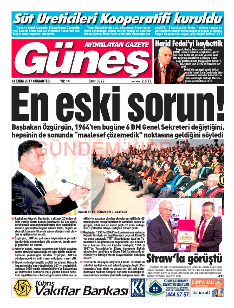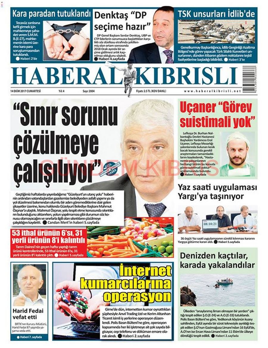 KKTC Gazete Manşetleri 14 Ekim 2017