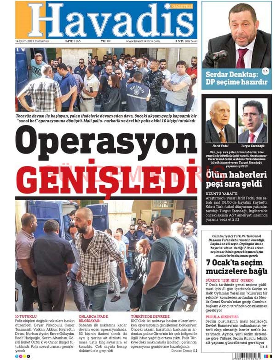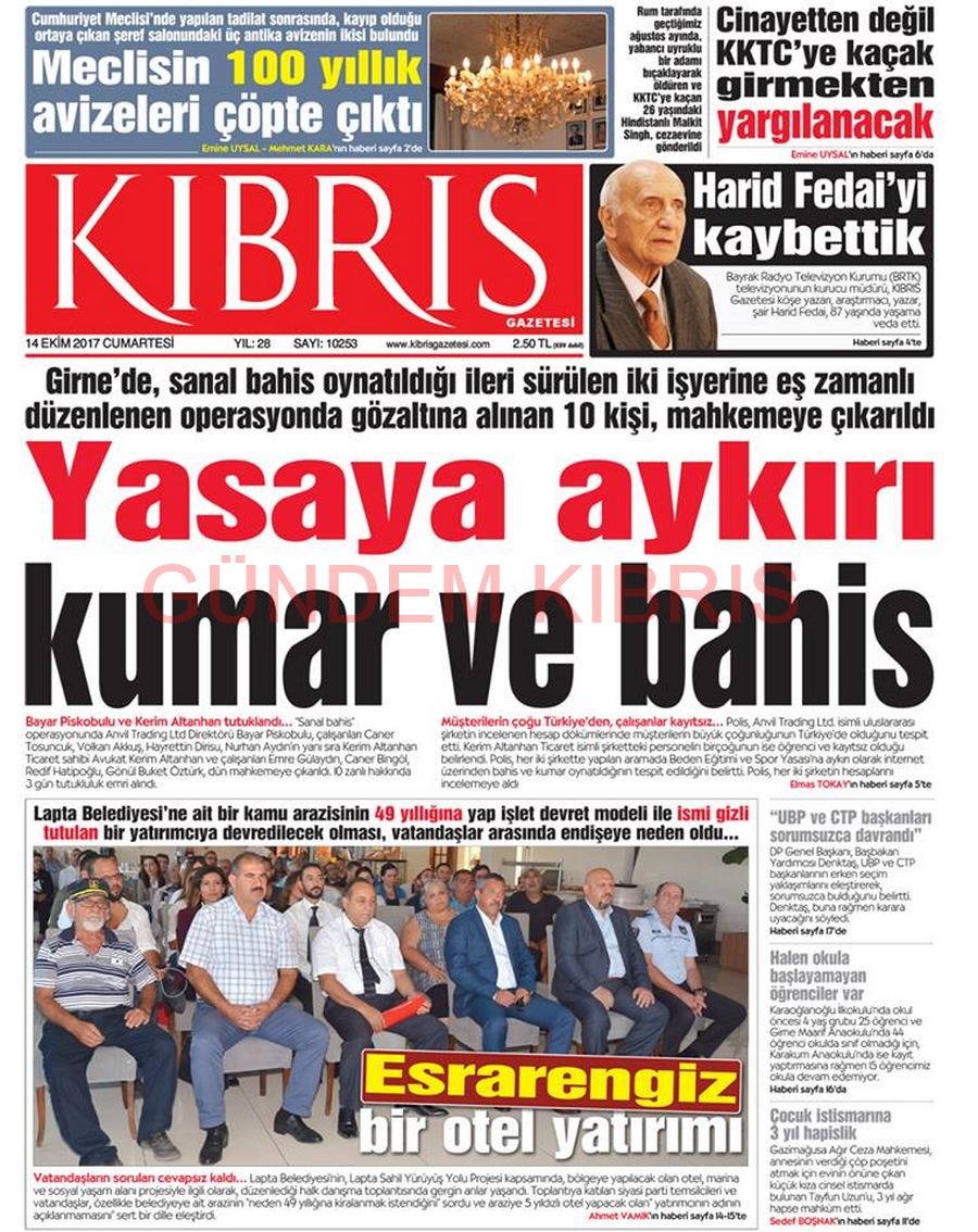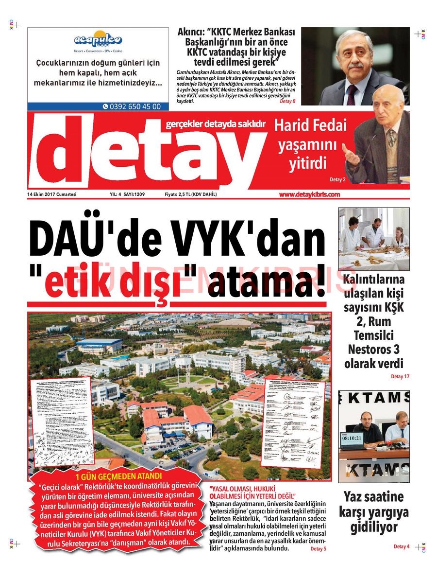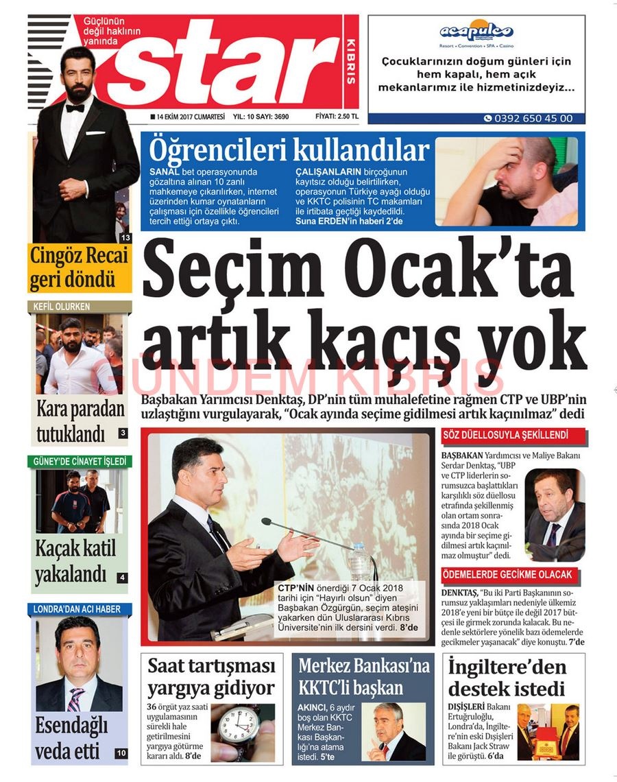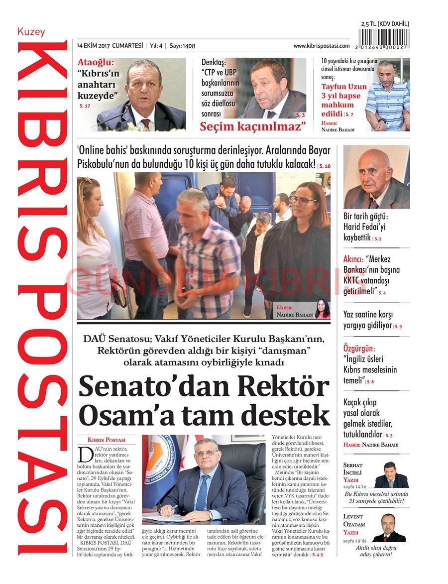 KKTC Gazete Manşetleri 14 Ekim 2017