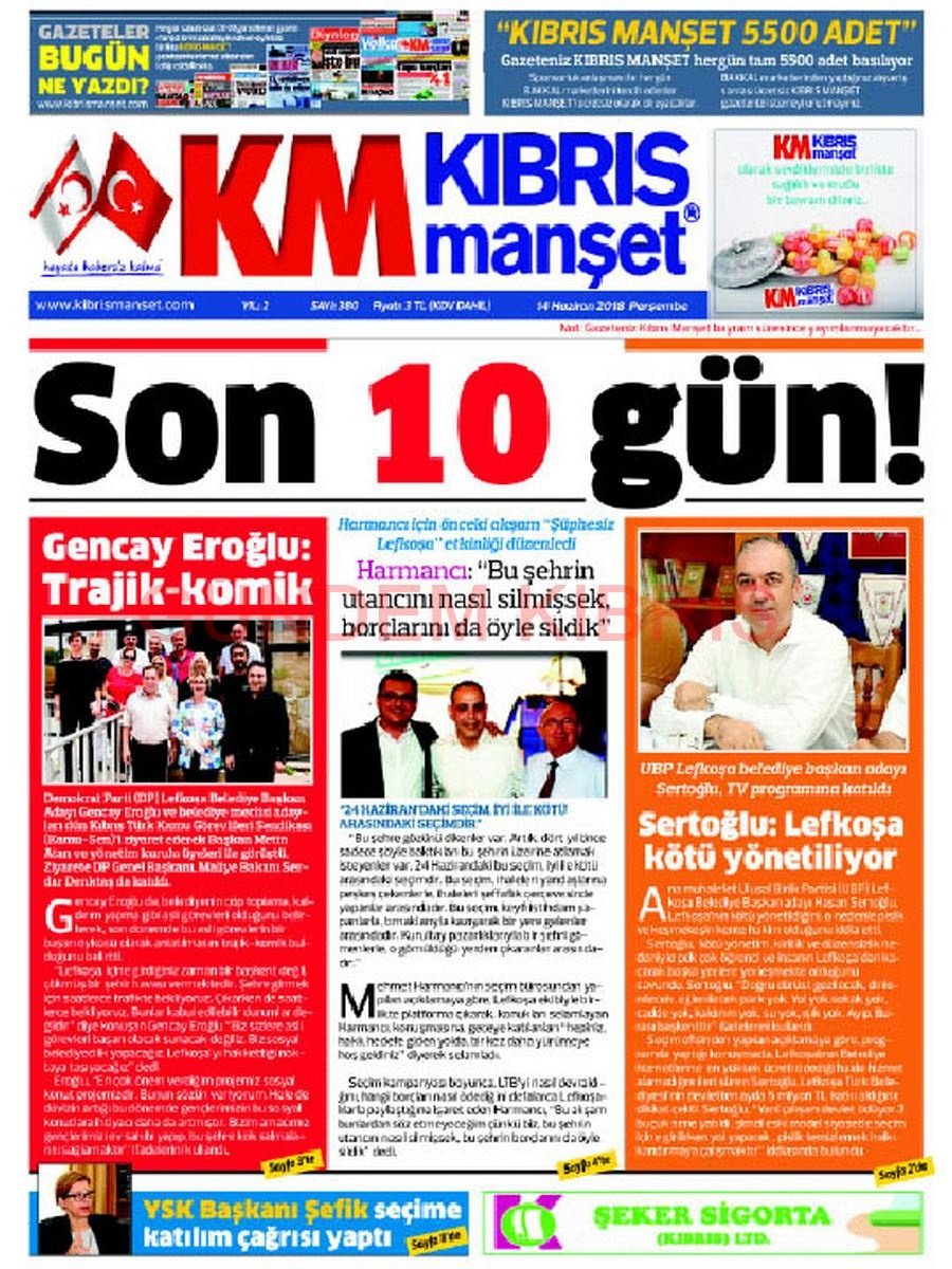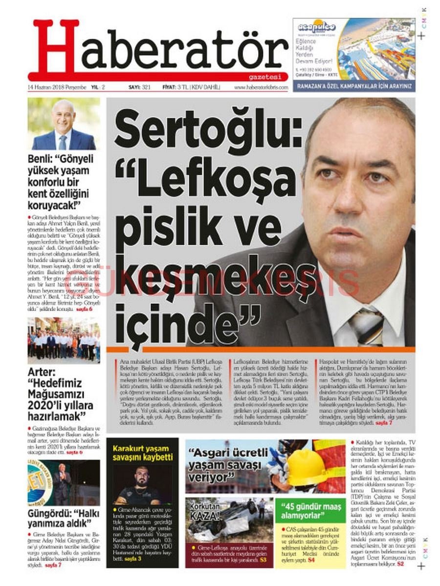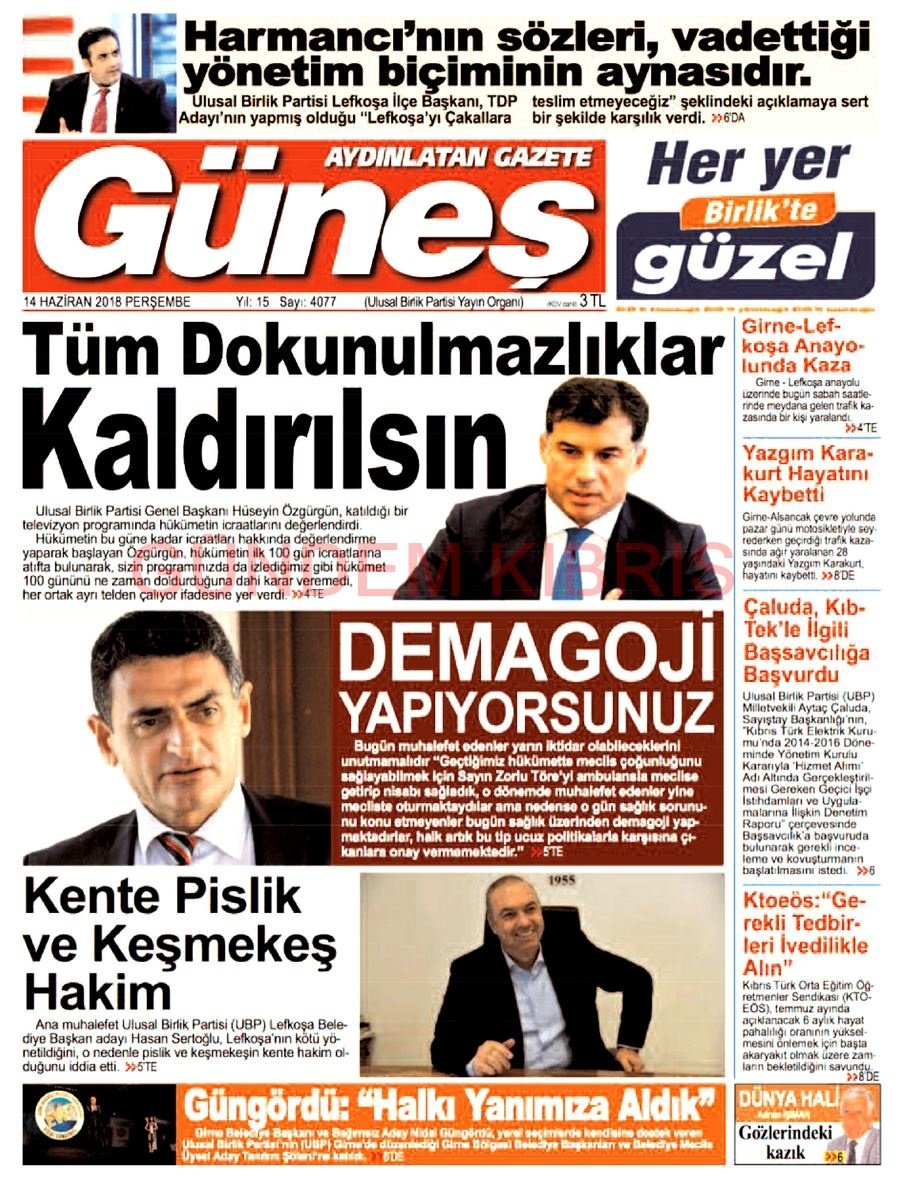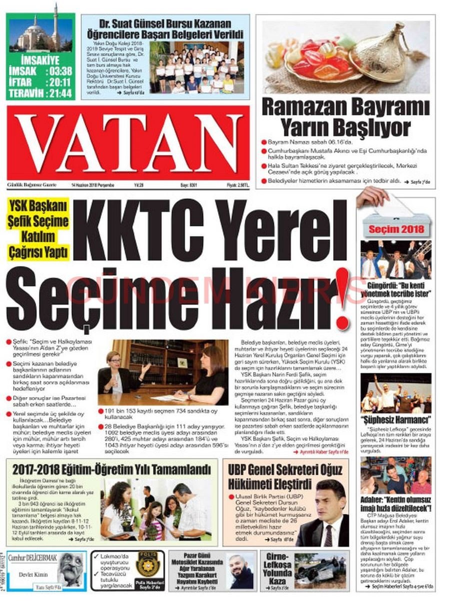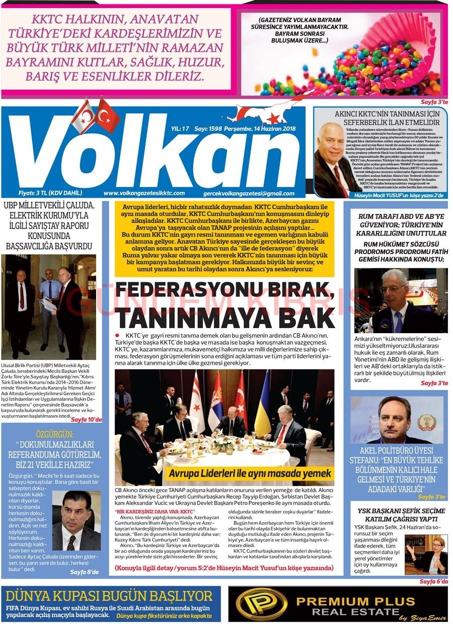 KKTC Gazete Manşetleri 14 Haziran 2018