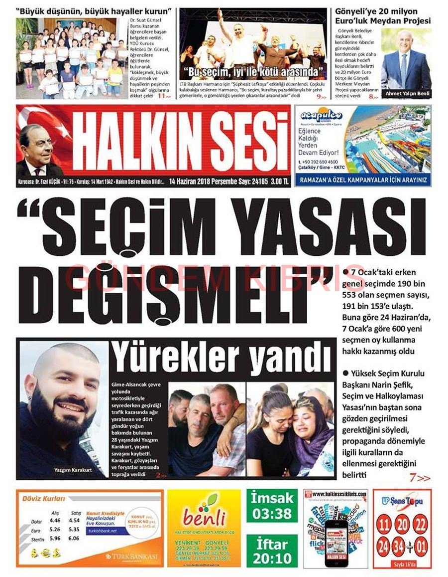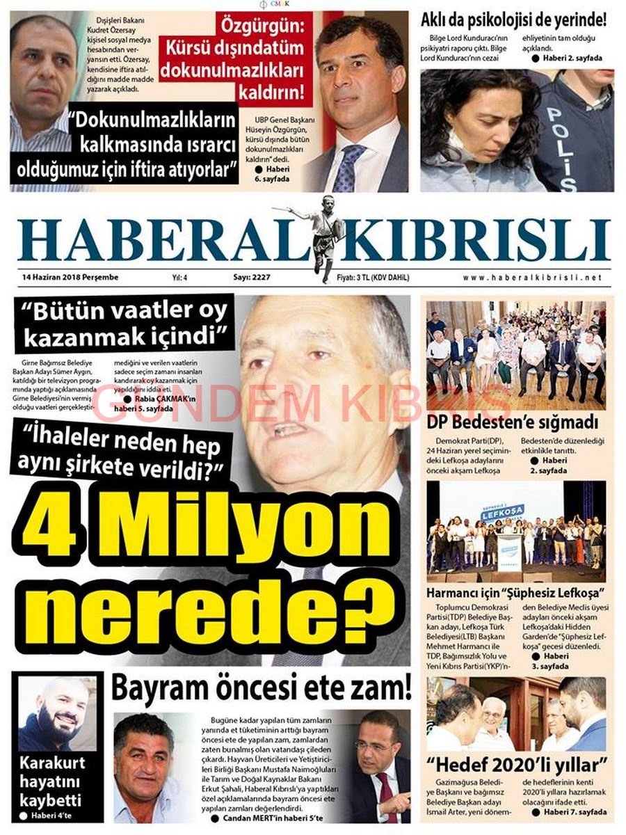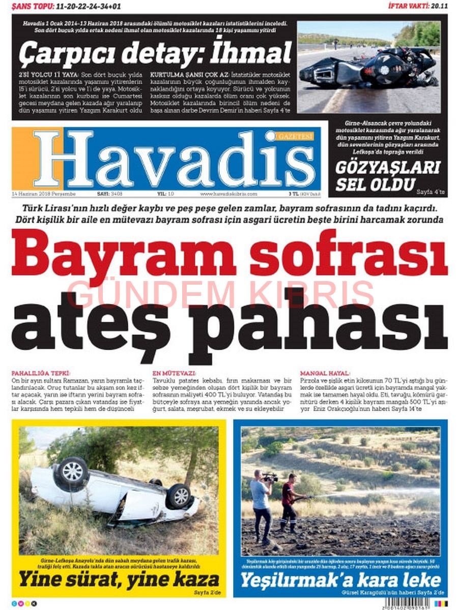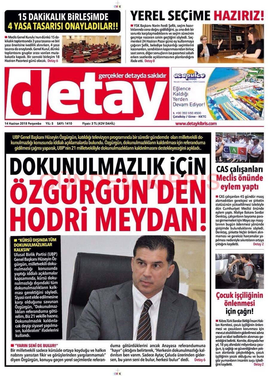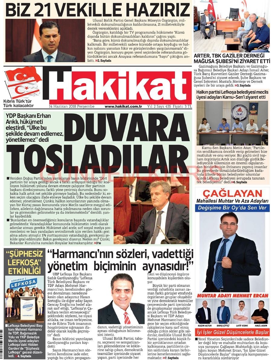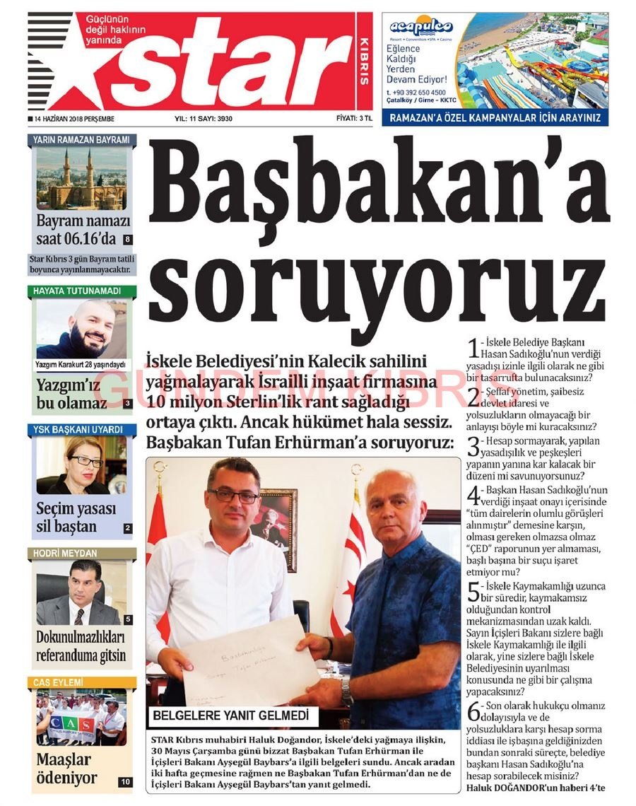 KKTC Gazete Manşetleri 14 Haziran 2018