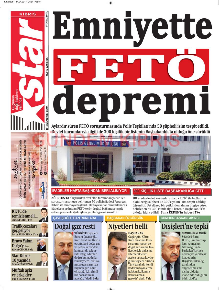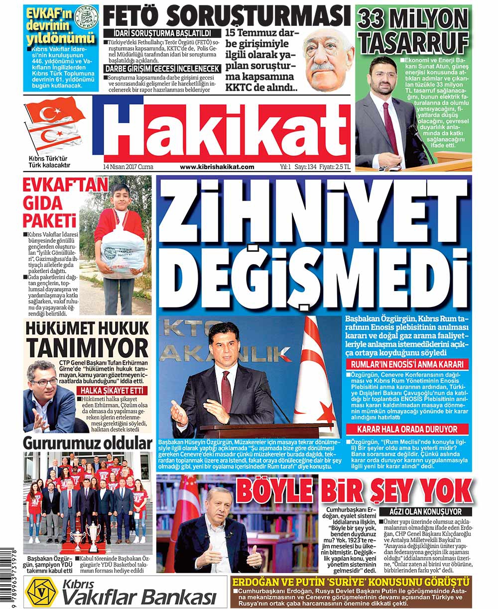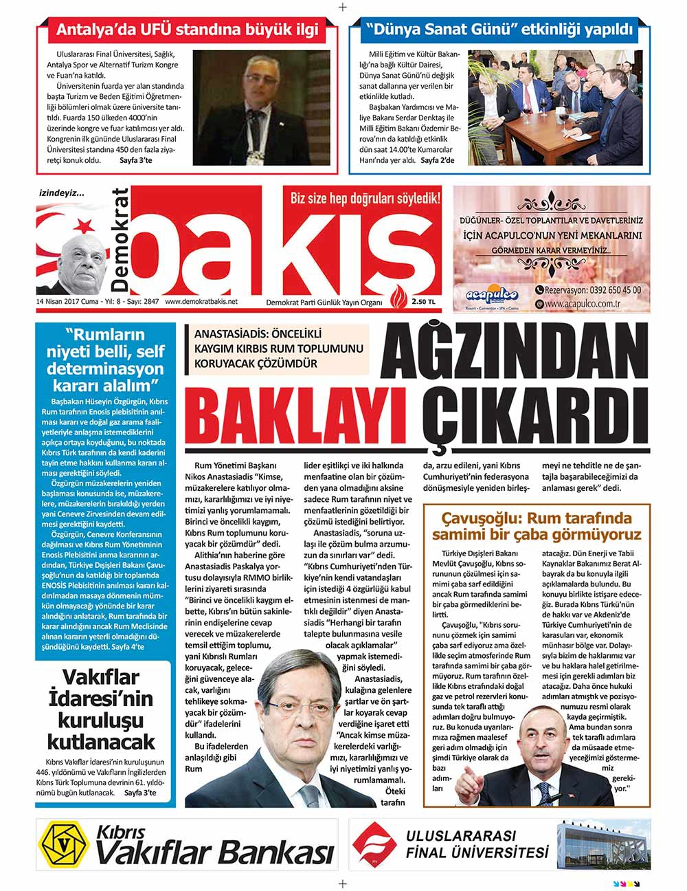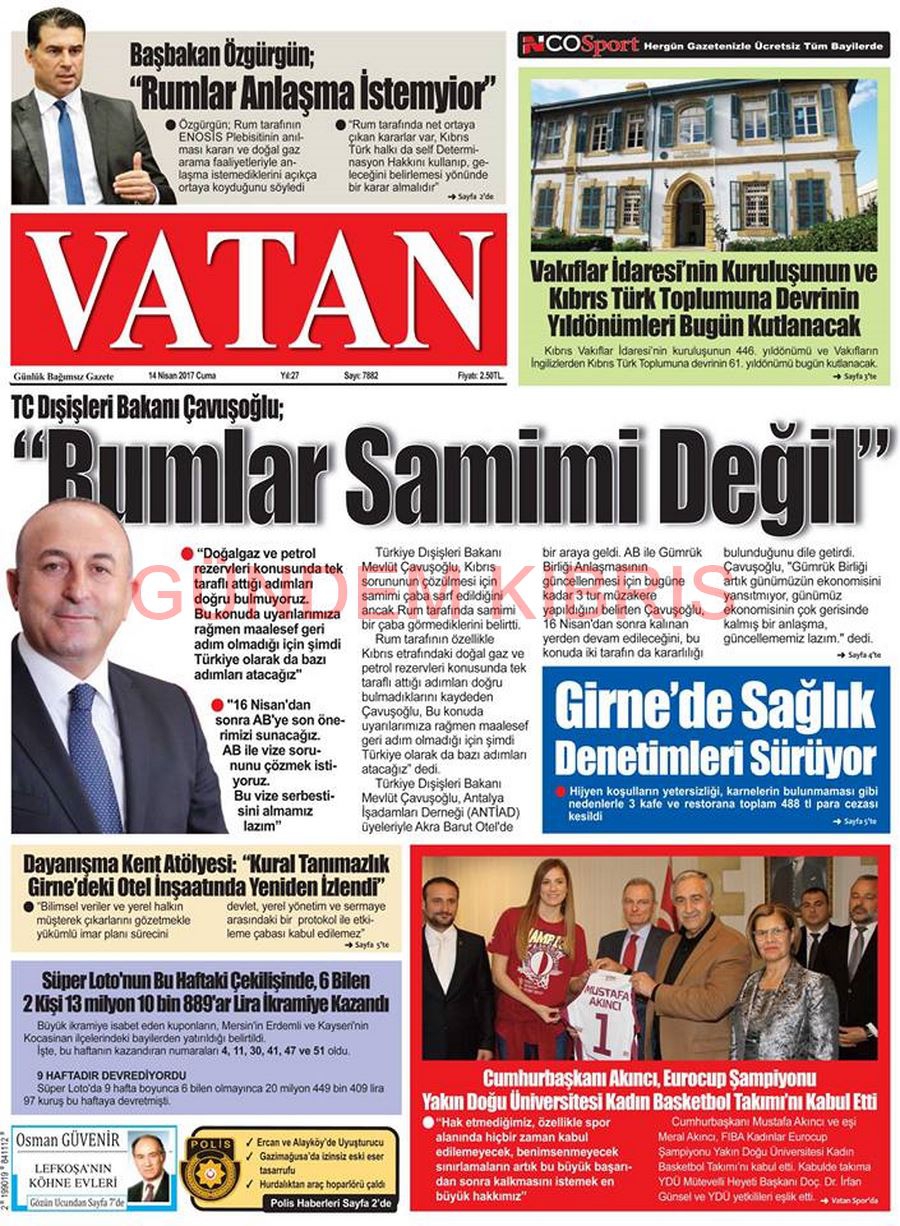 KKTC Gazete Manşetleri 14 Nisan 2017