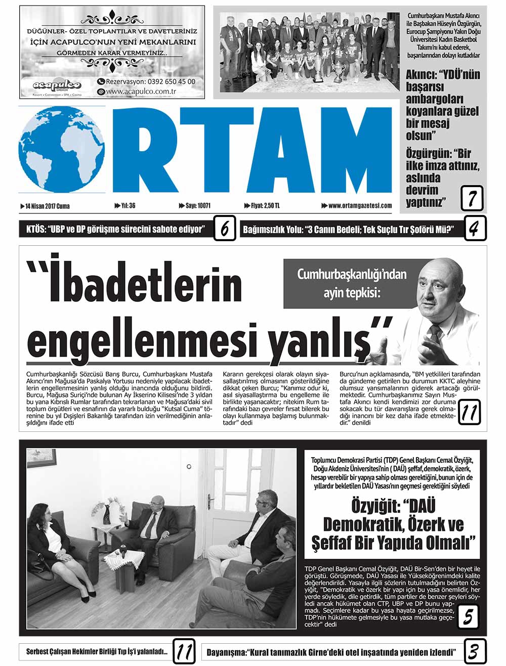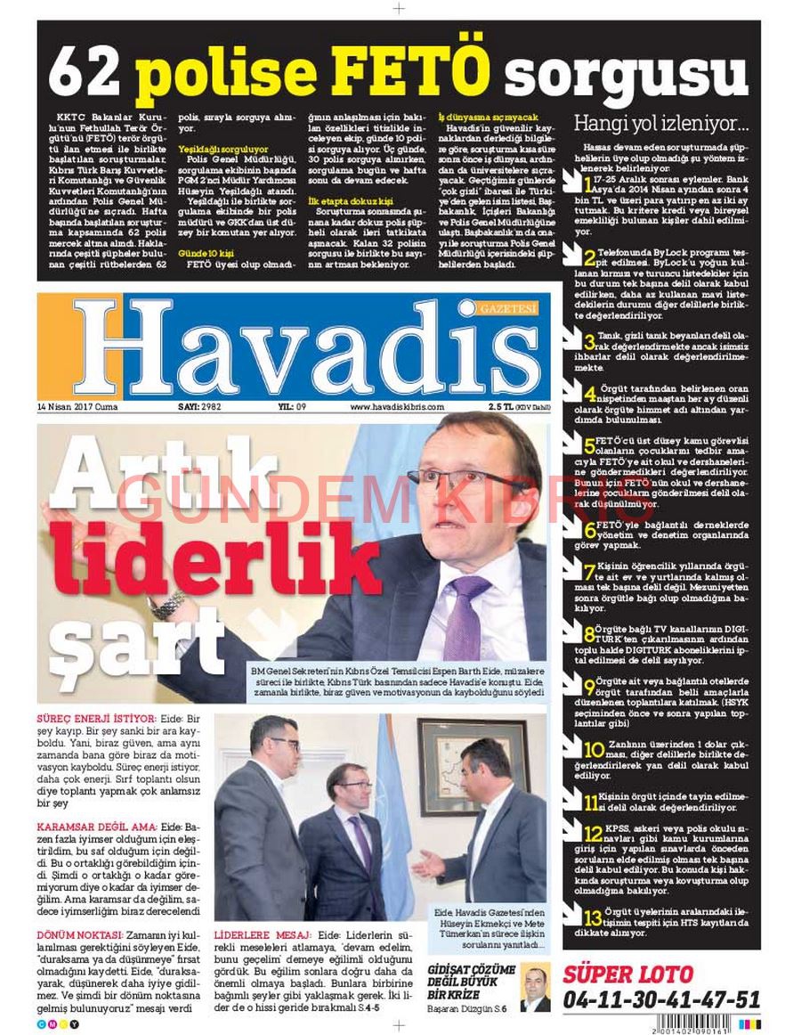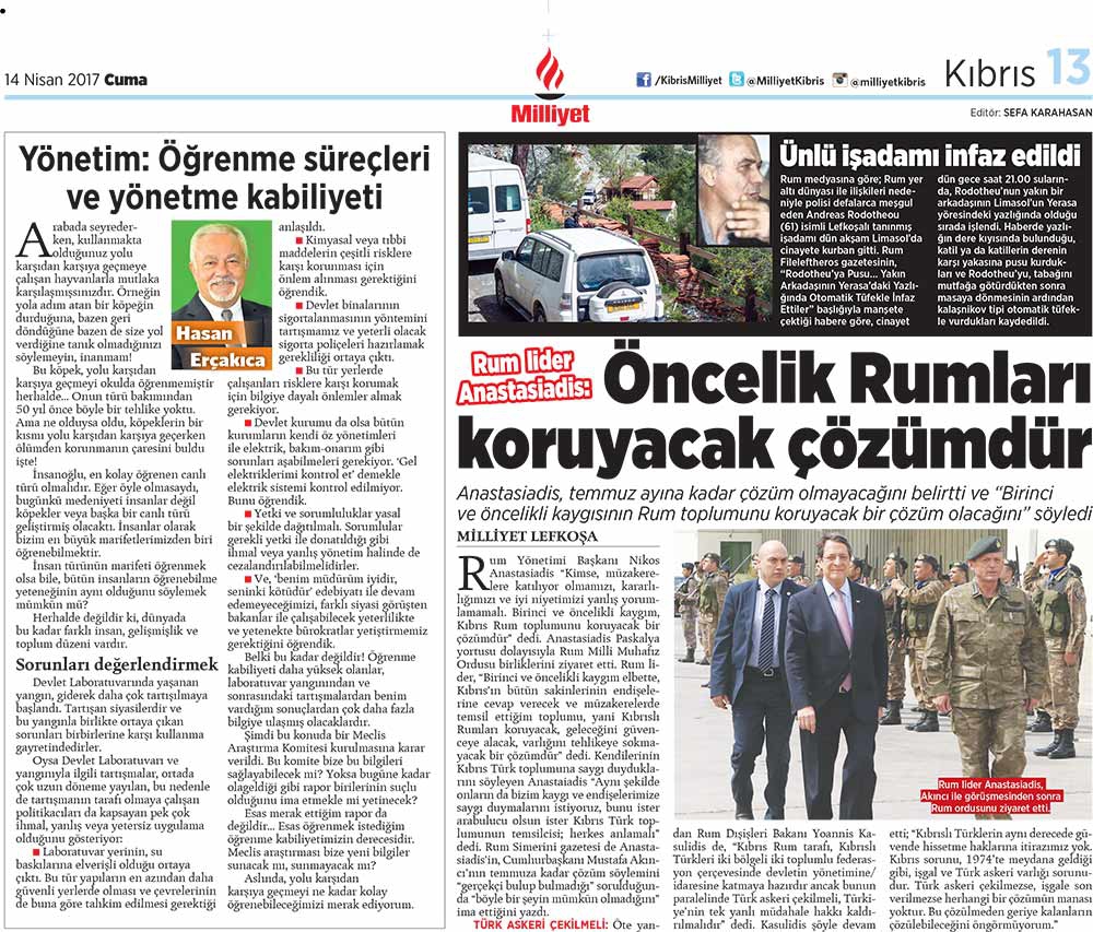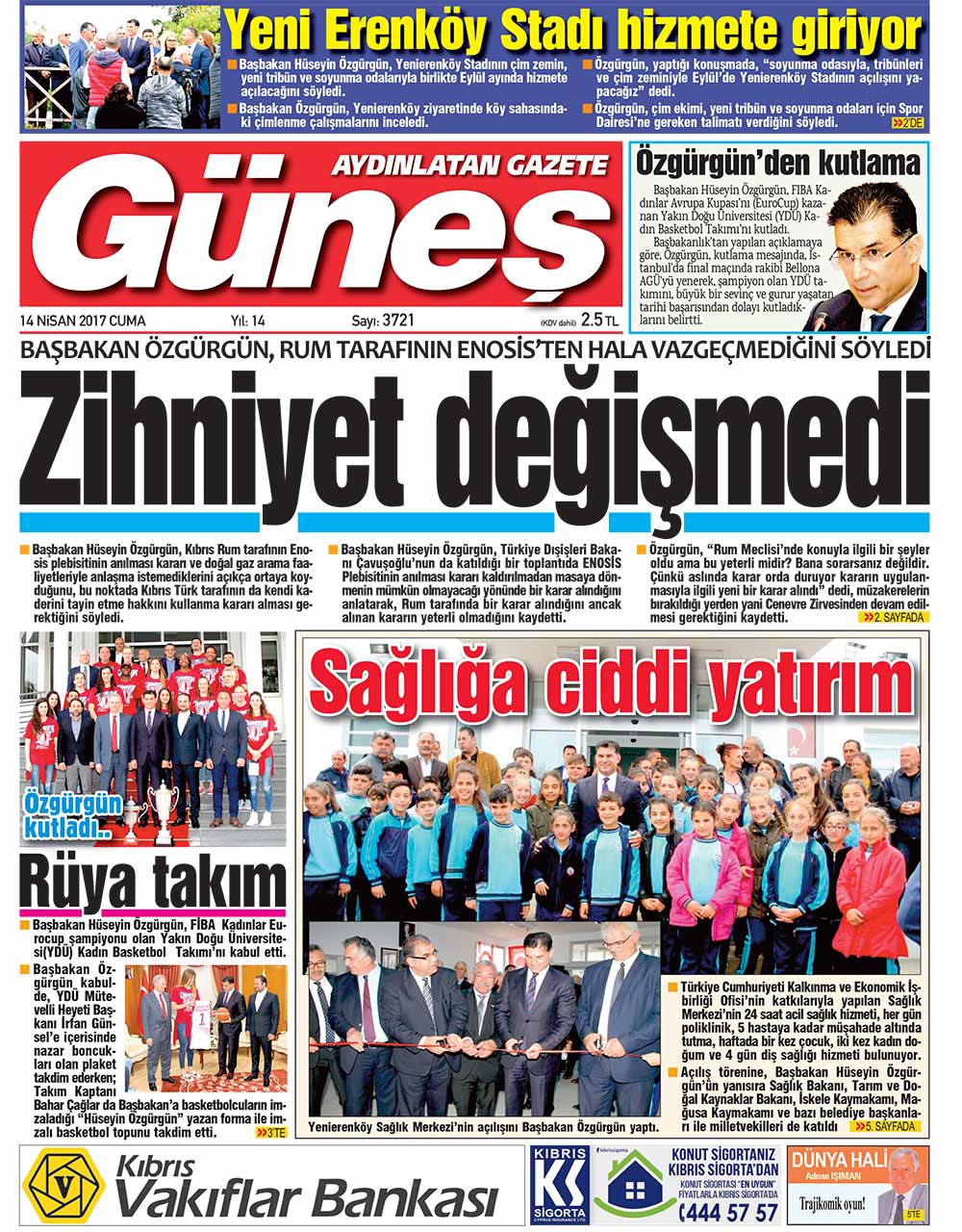 KKTC Gazete Manşetleri 14 Nisan 2017