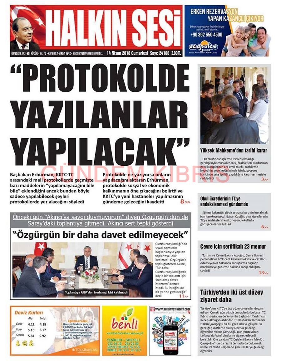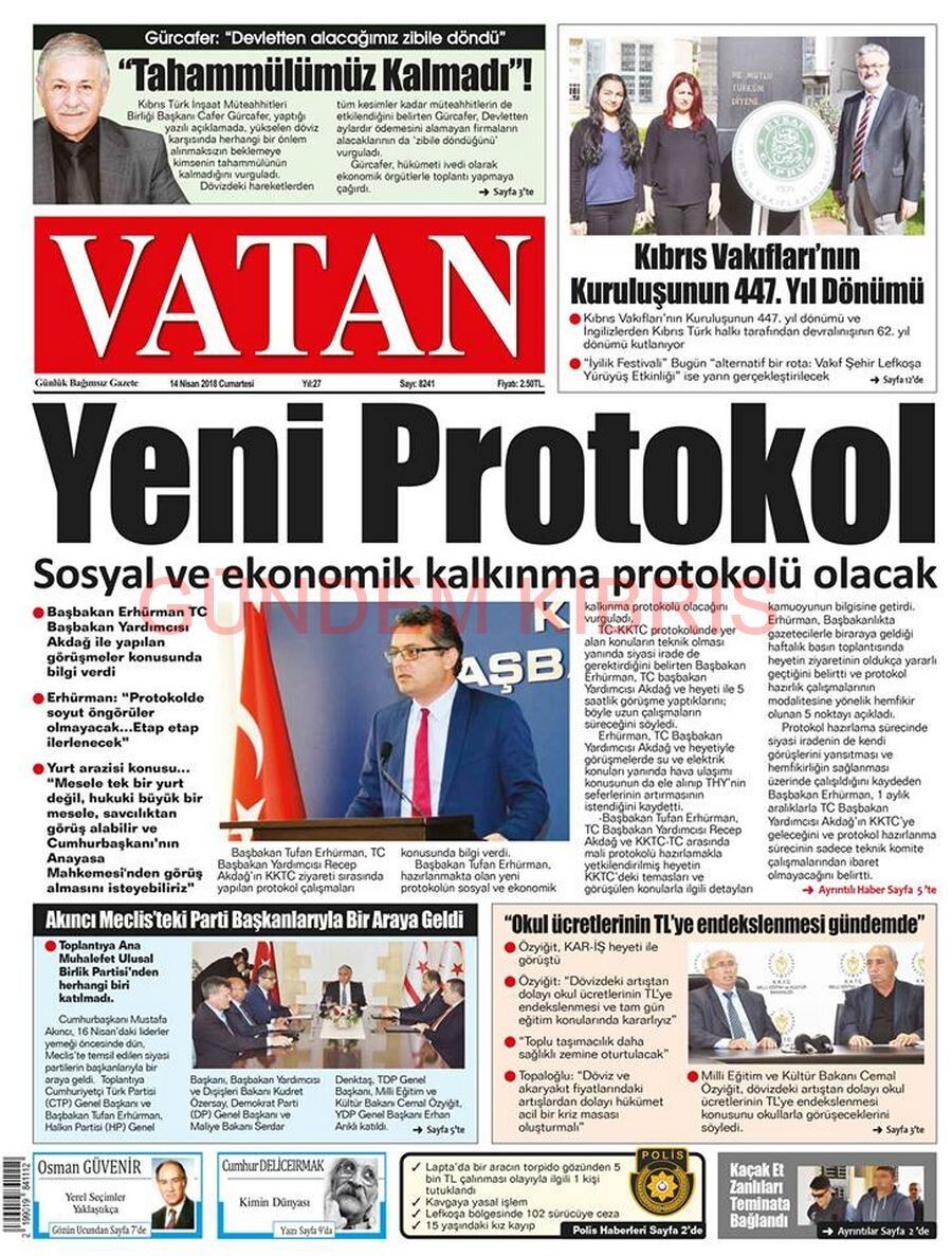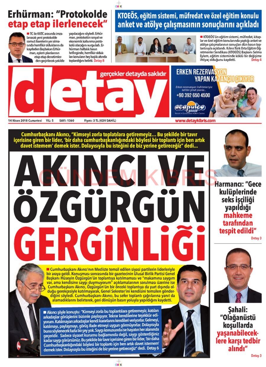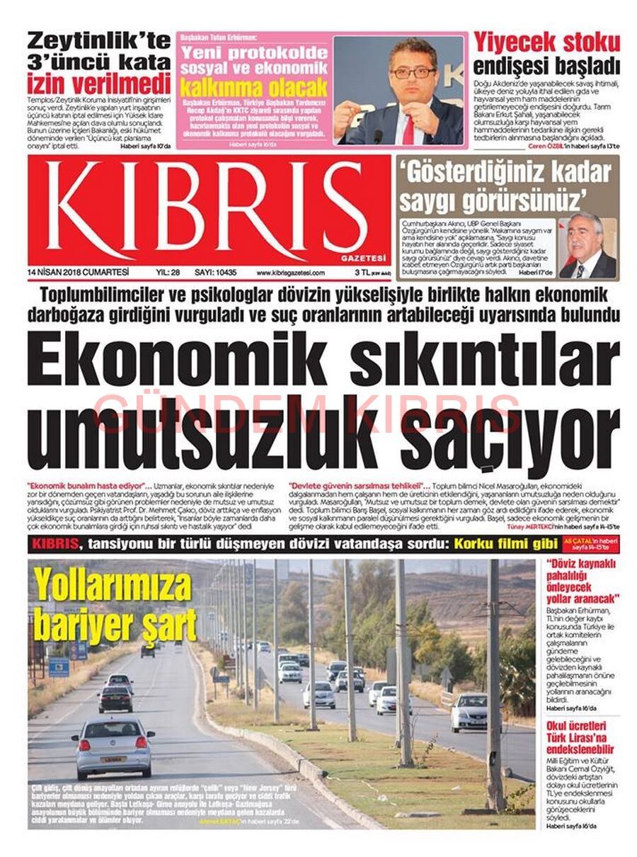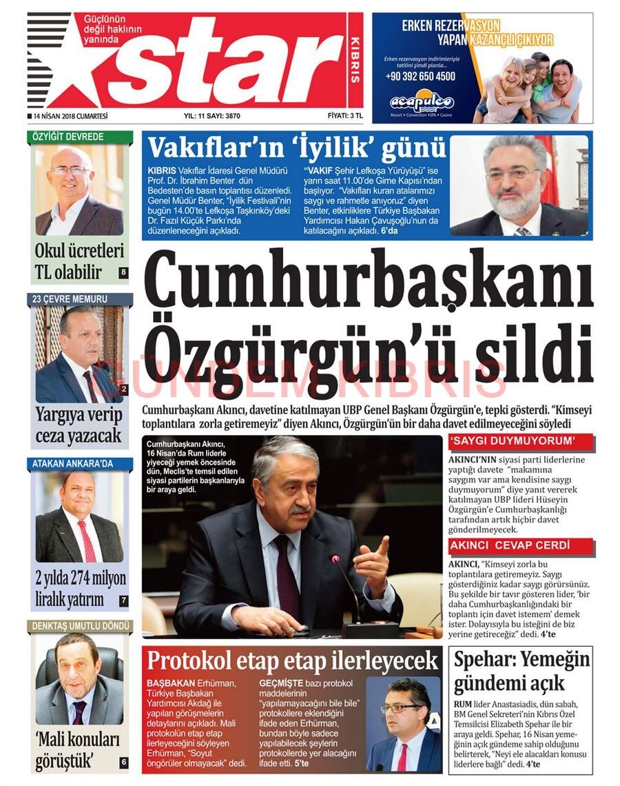 KKTC Gazete Manşetleri 14 Nisan 2018