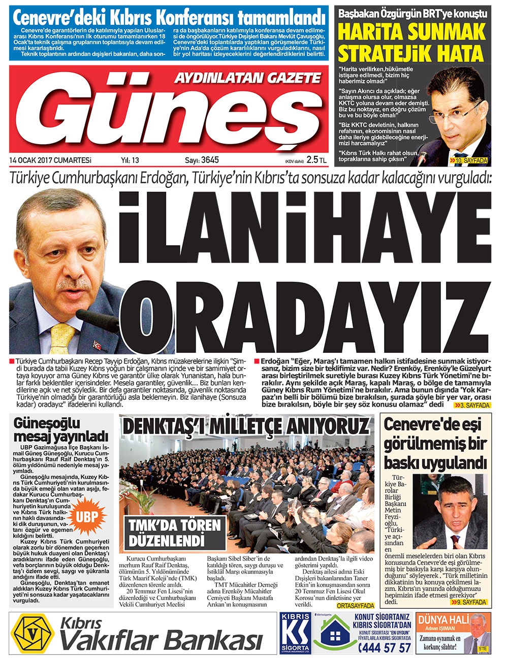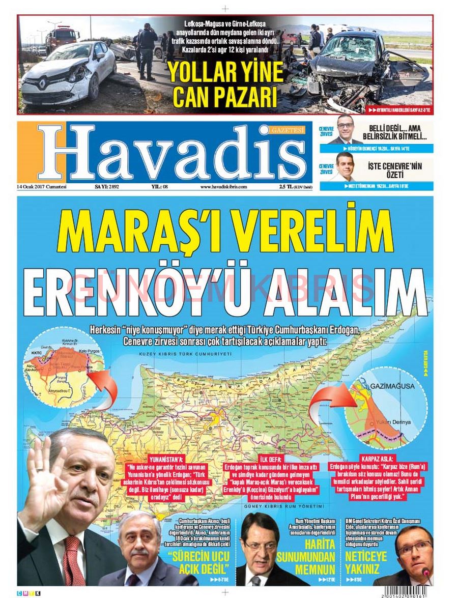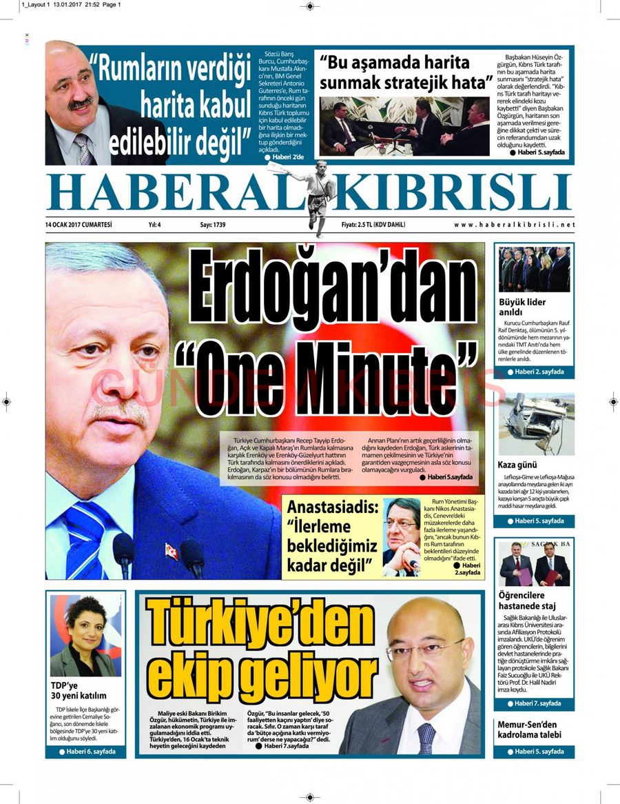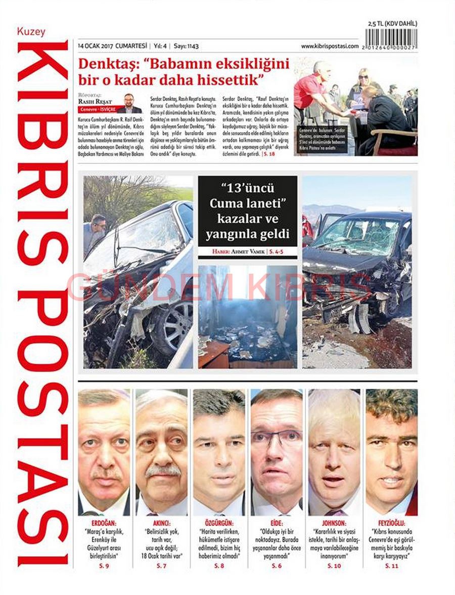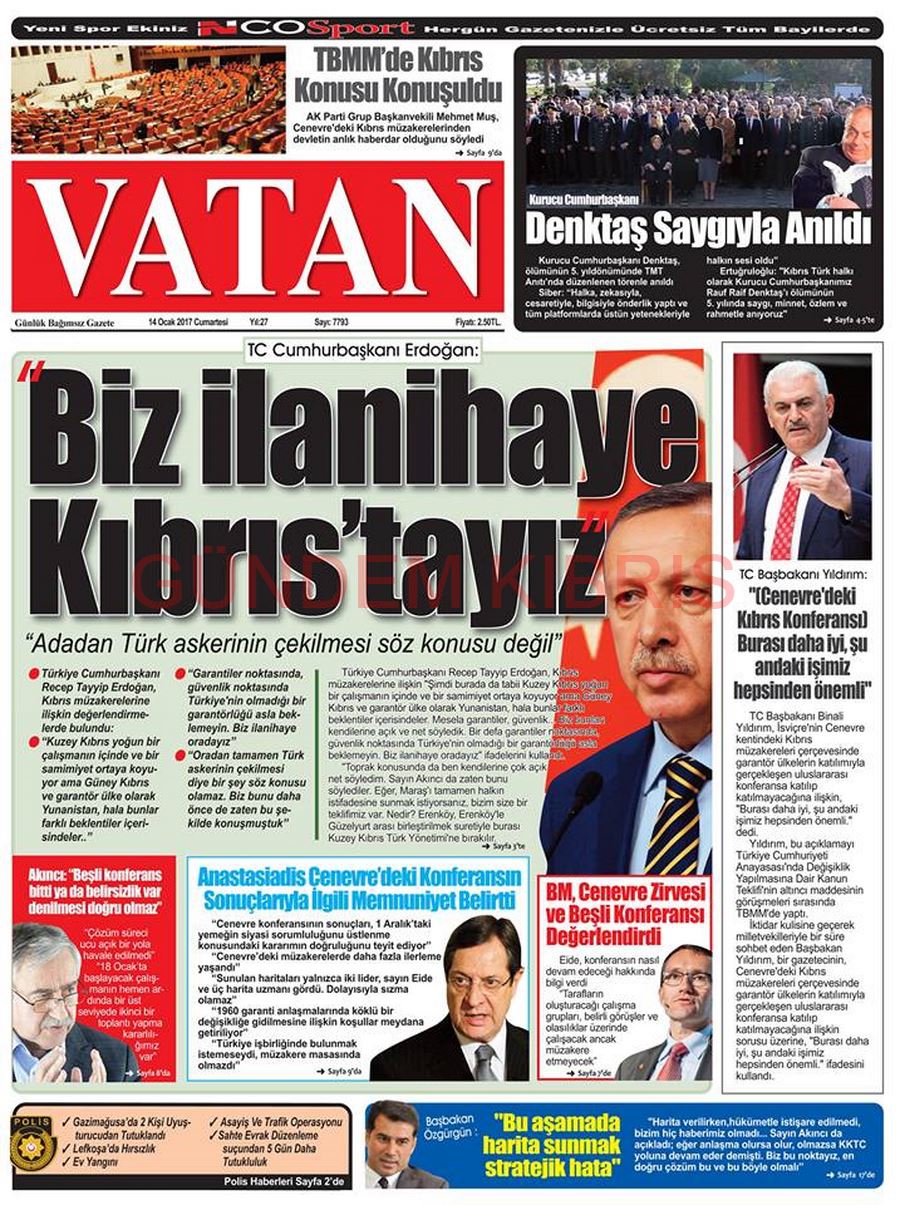 KKTC Gazete Manşetleri 14 Ocak 2017
