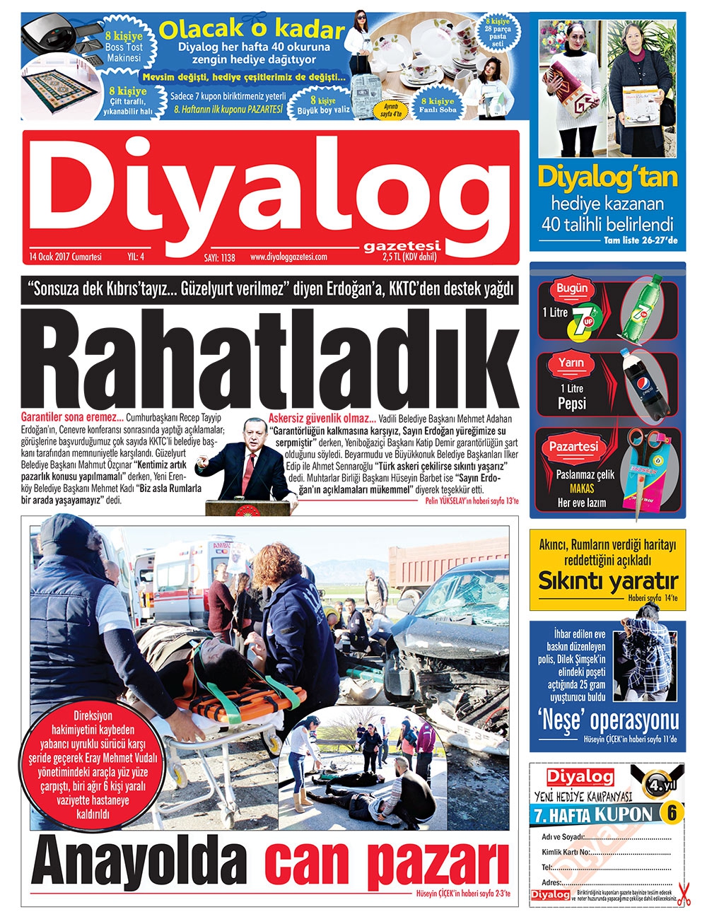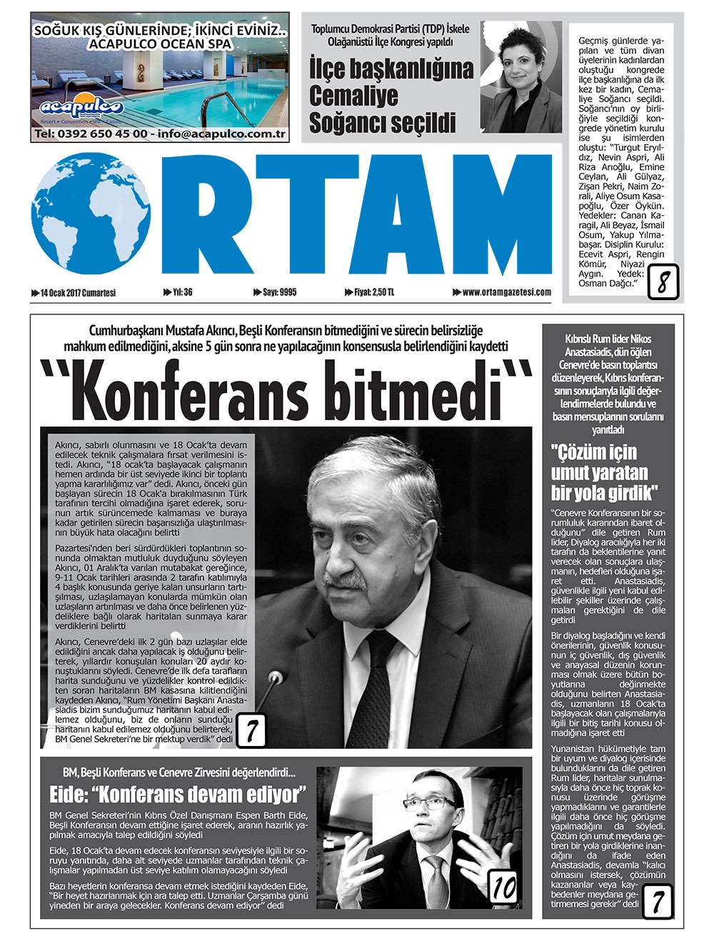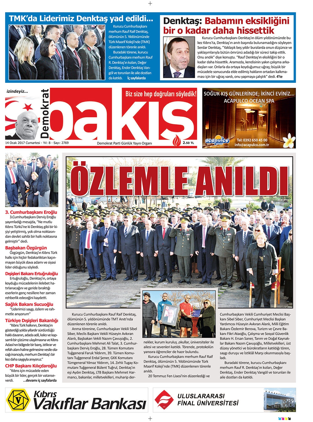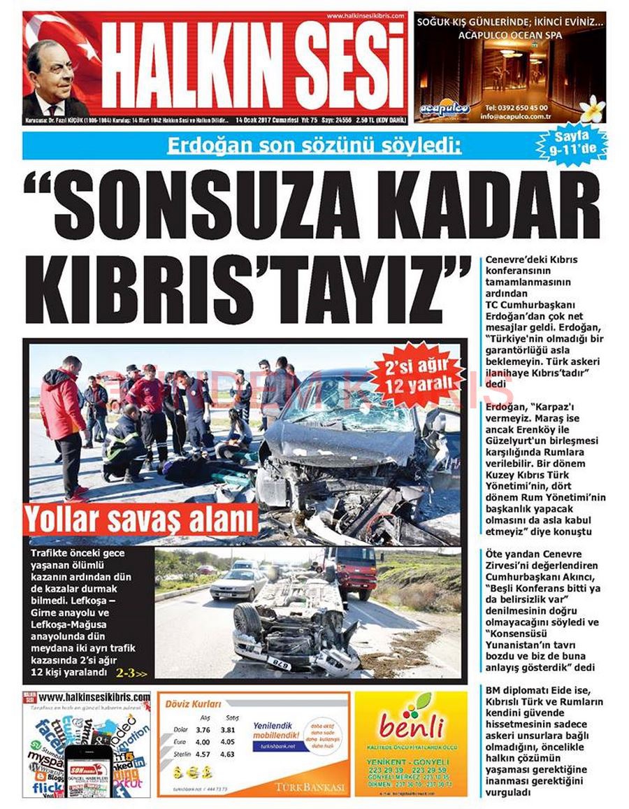 KKTC Gazete Manşetleri 14 Ocak 2017