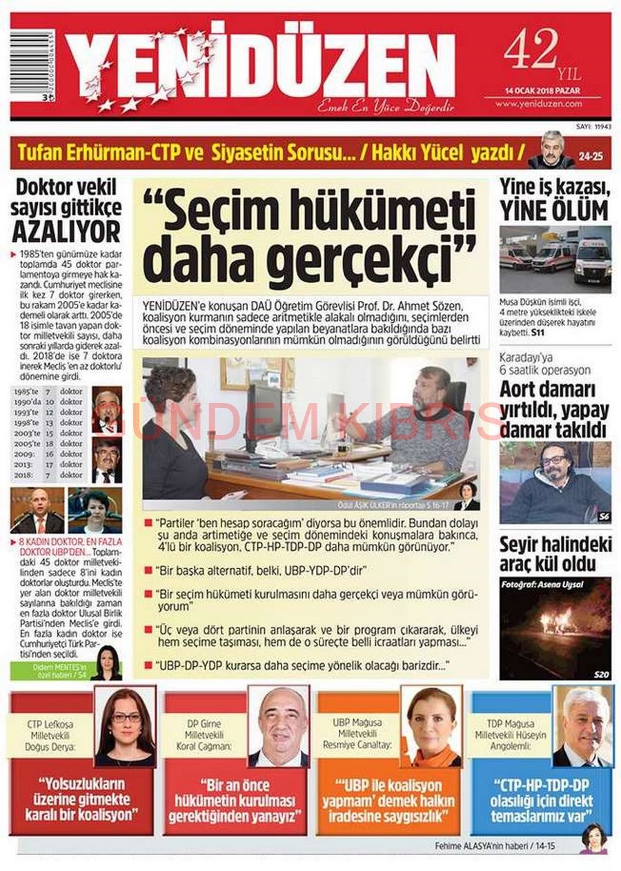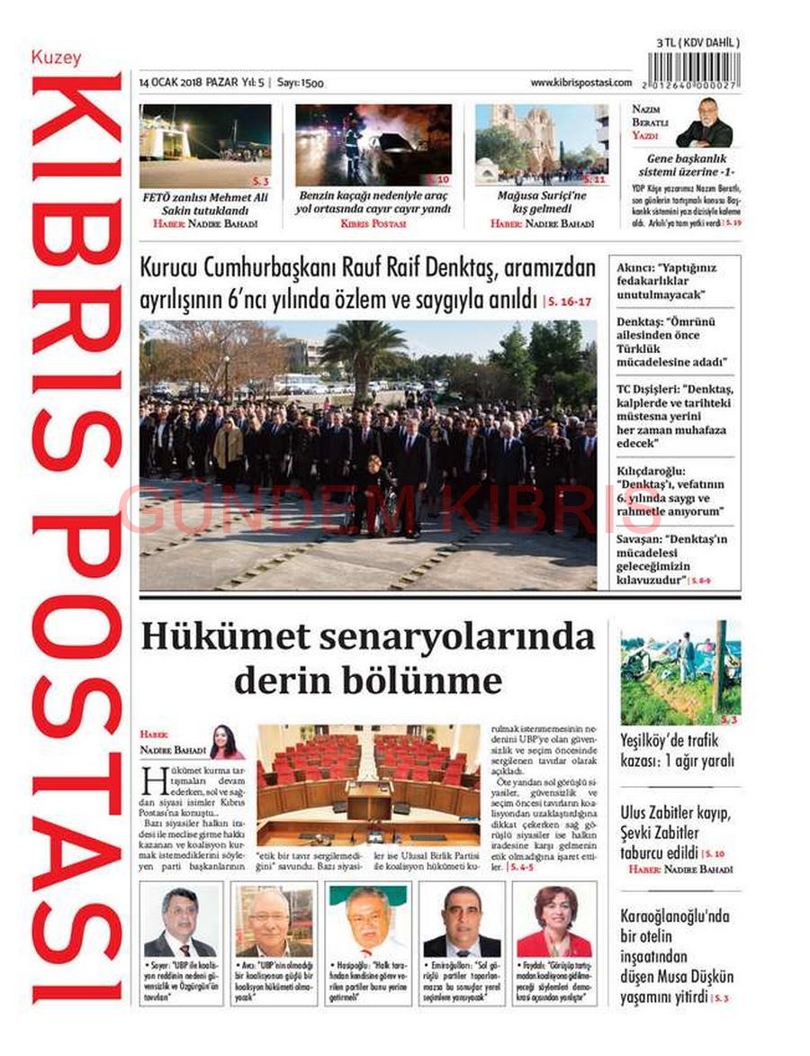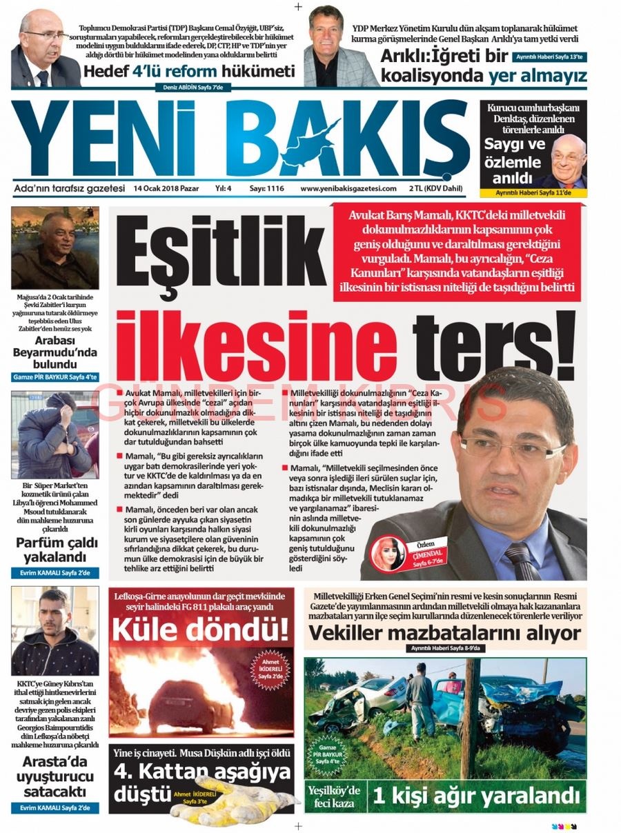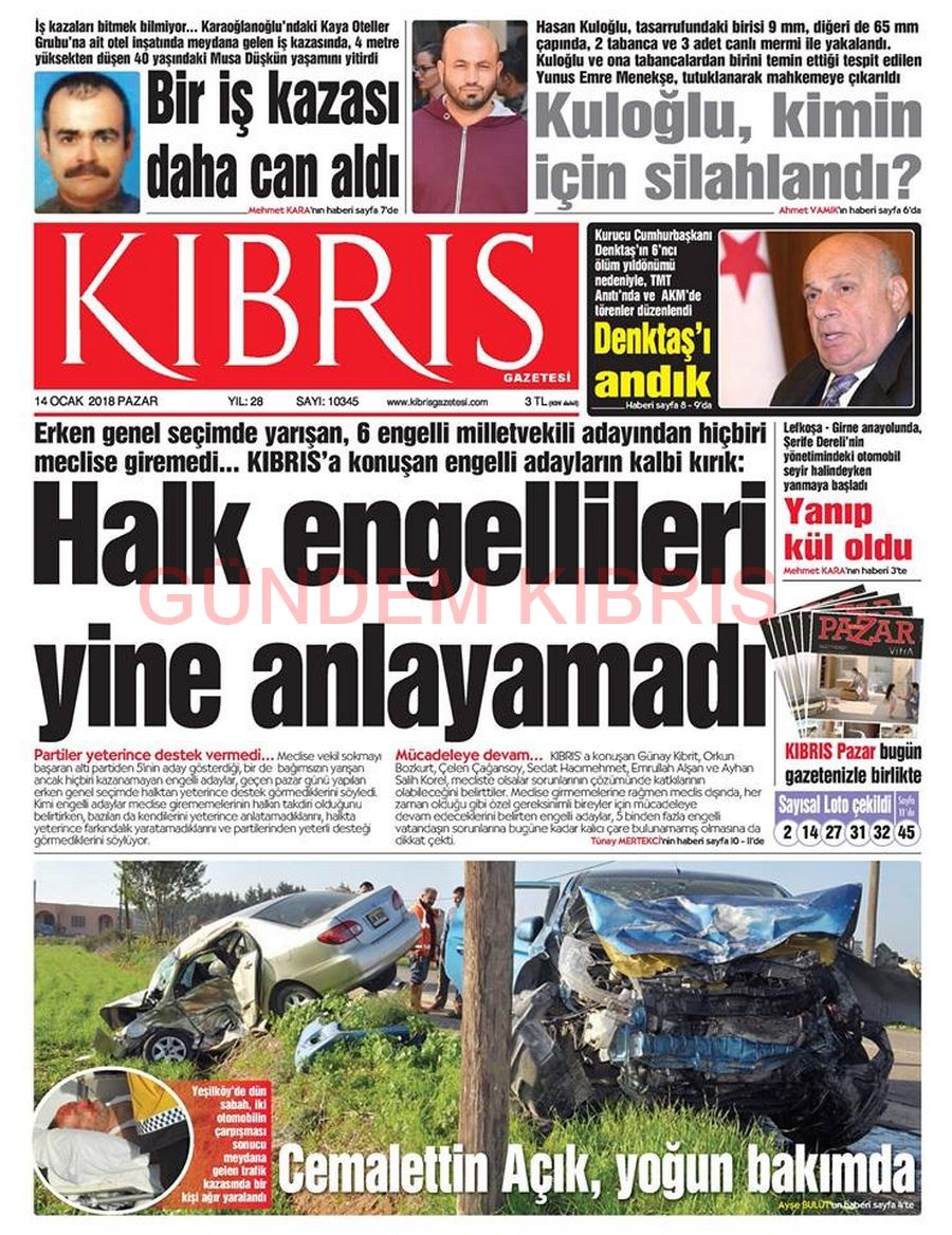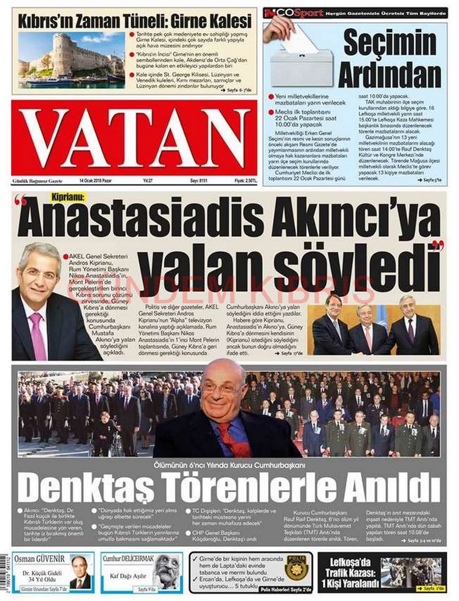 KKTC Gazete Manşetleri 14 Ocak 2018
