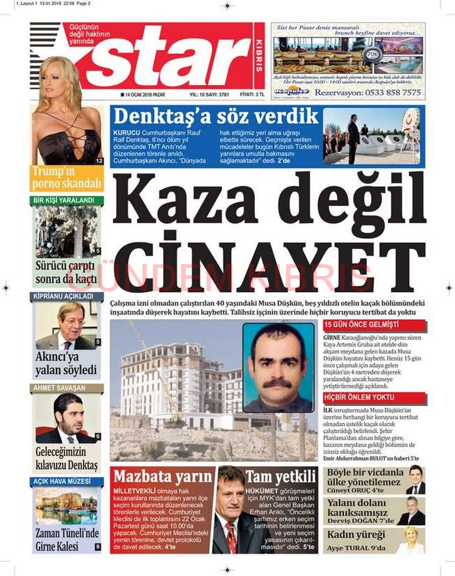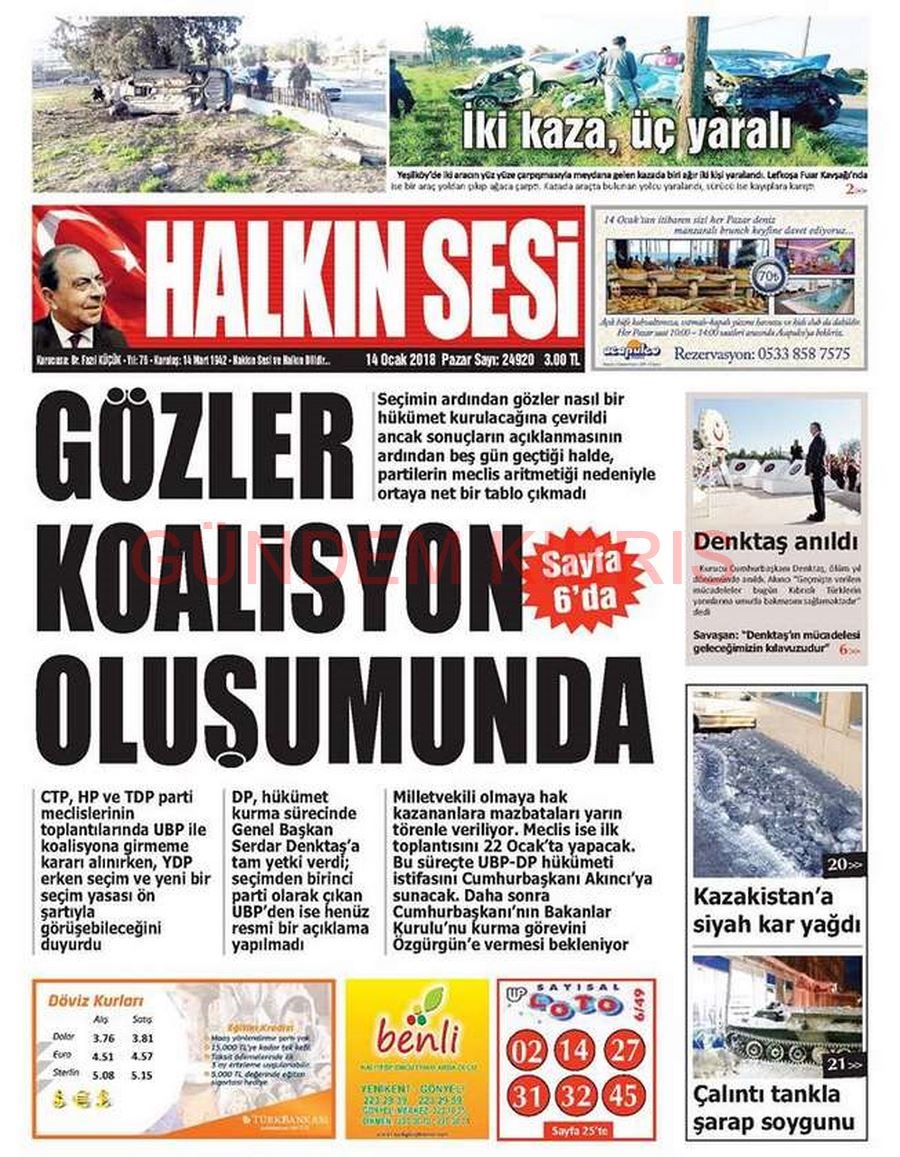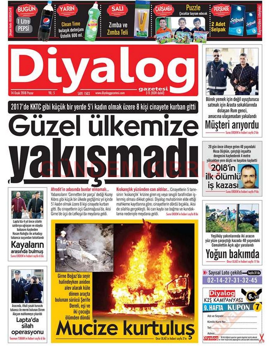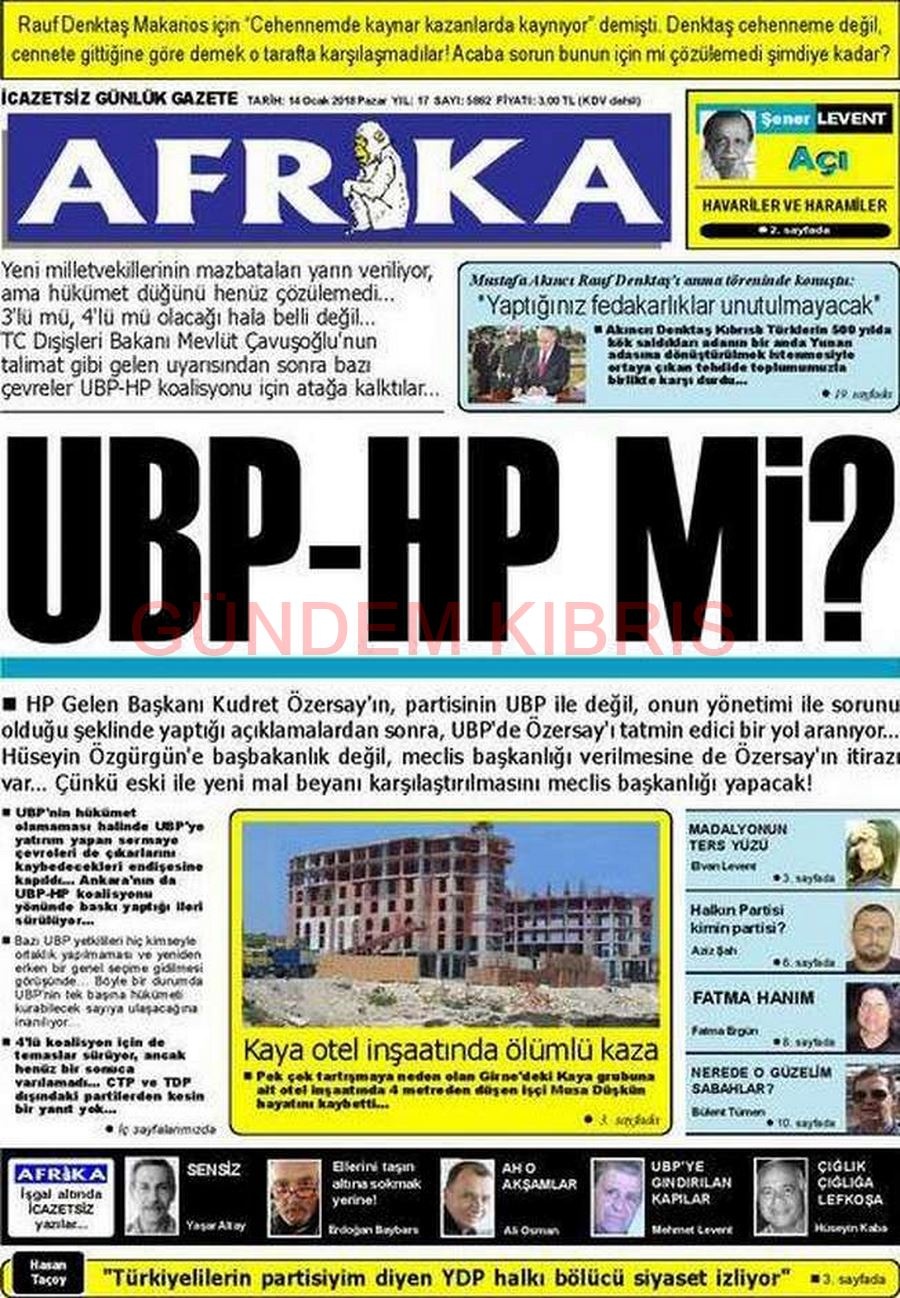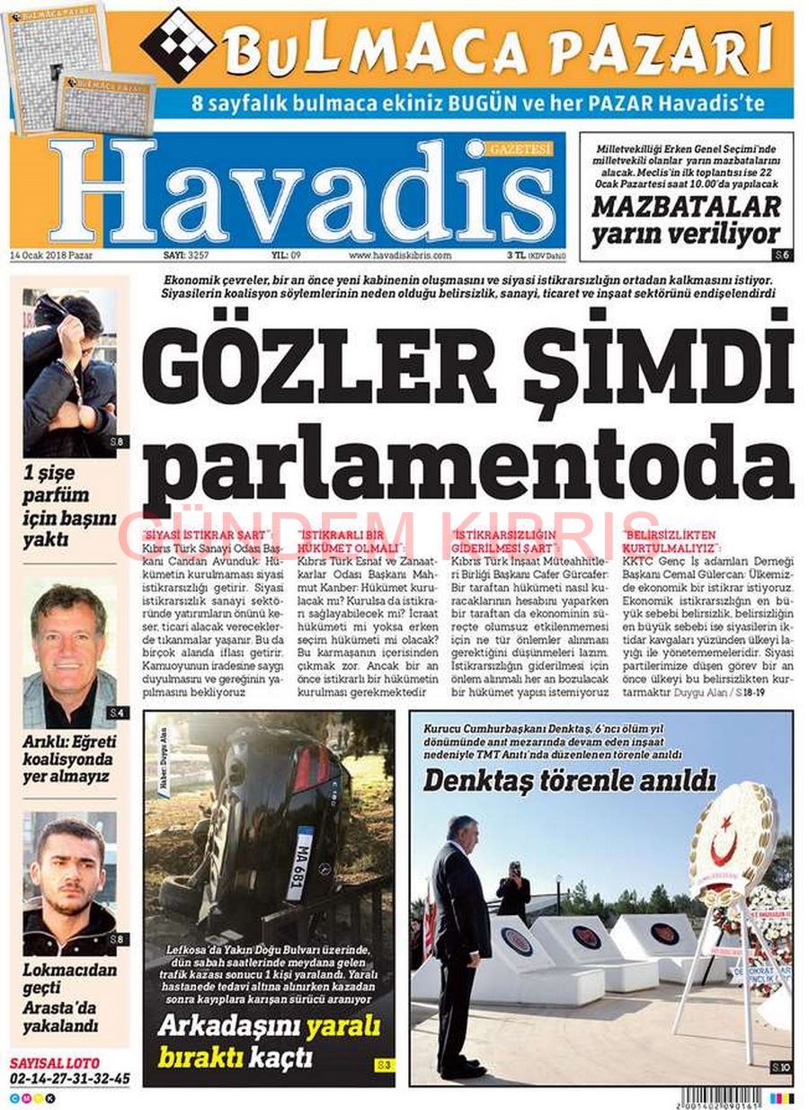 KKTC Gazete Manşetleri 14 Ocak 2018
