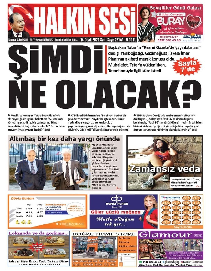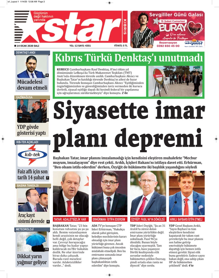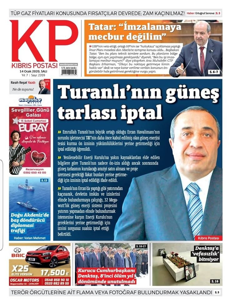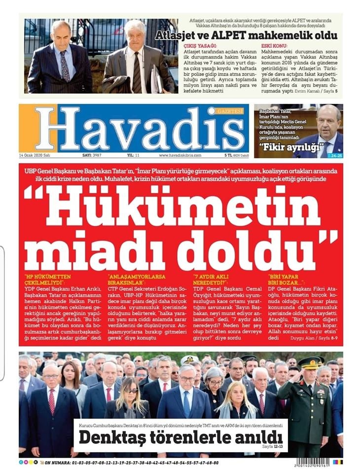 KKTC Gazete Manşetleri -14 Ocak 2020