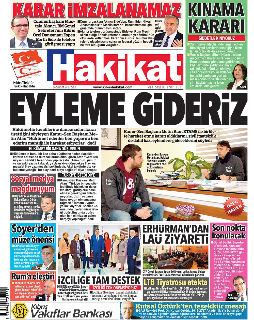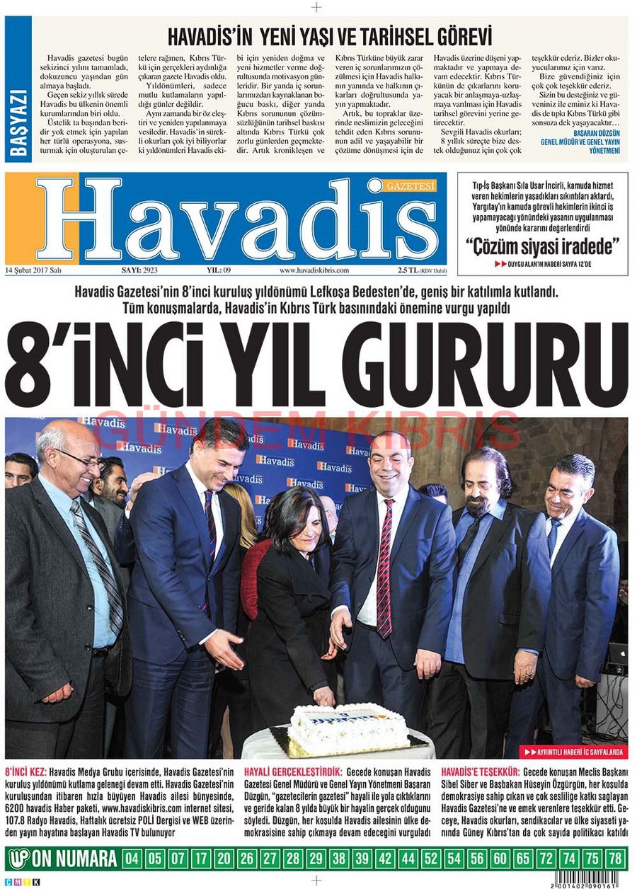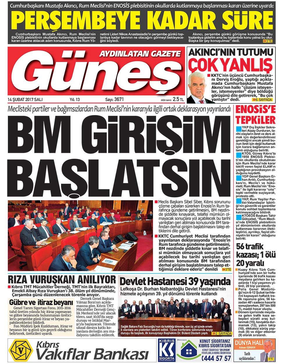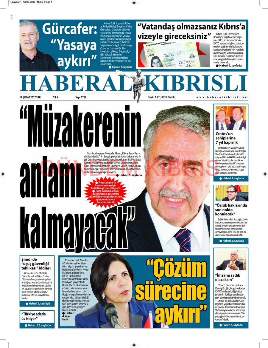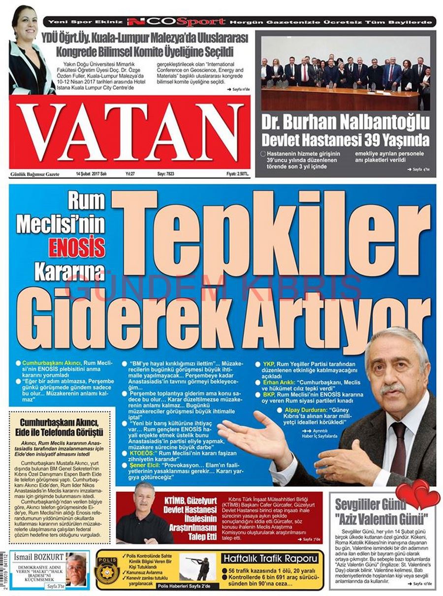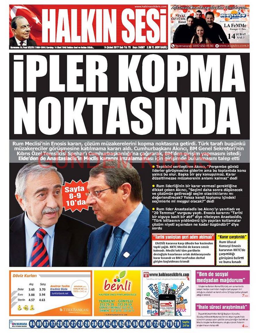 KKTC Gazete Manşetleri 14 Şubat 2017