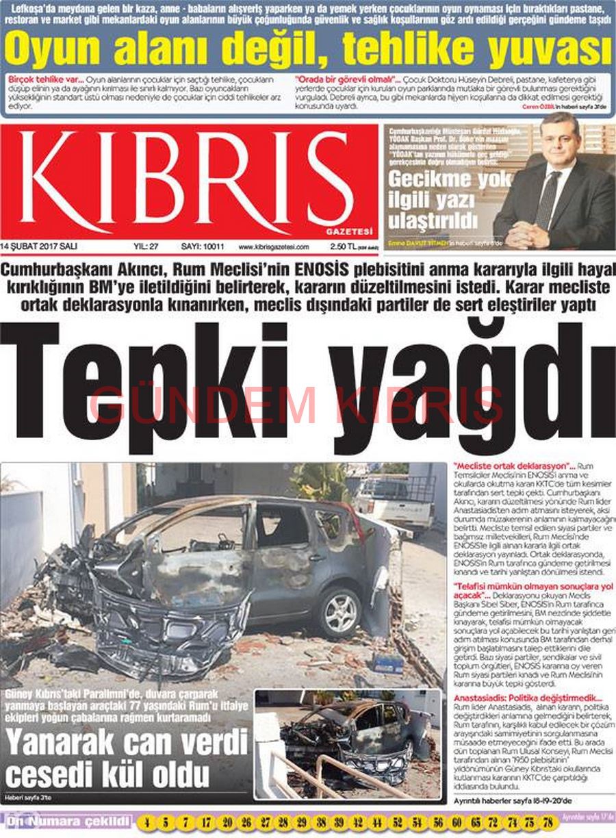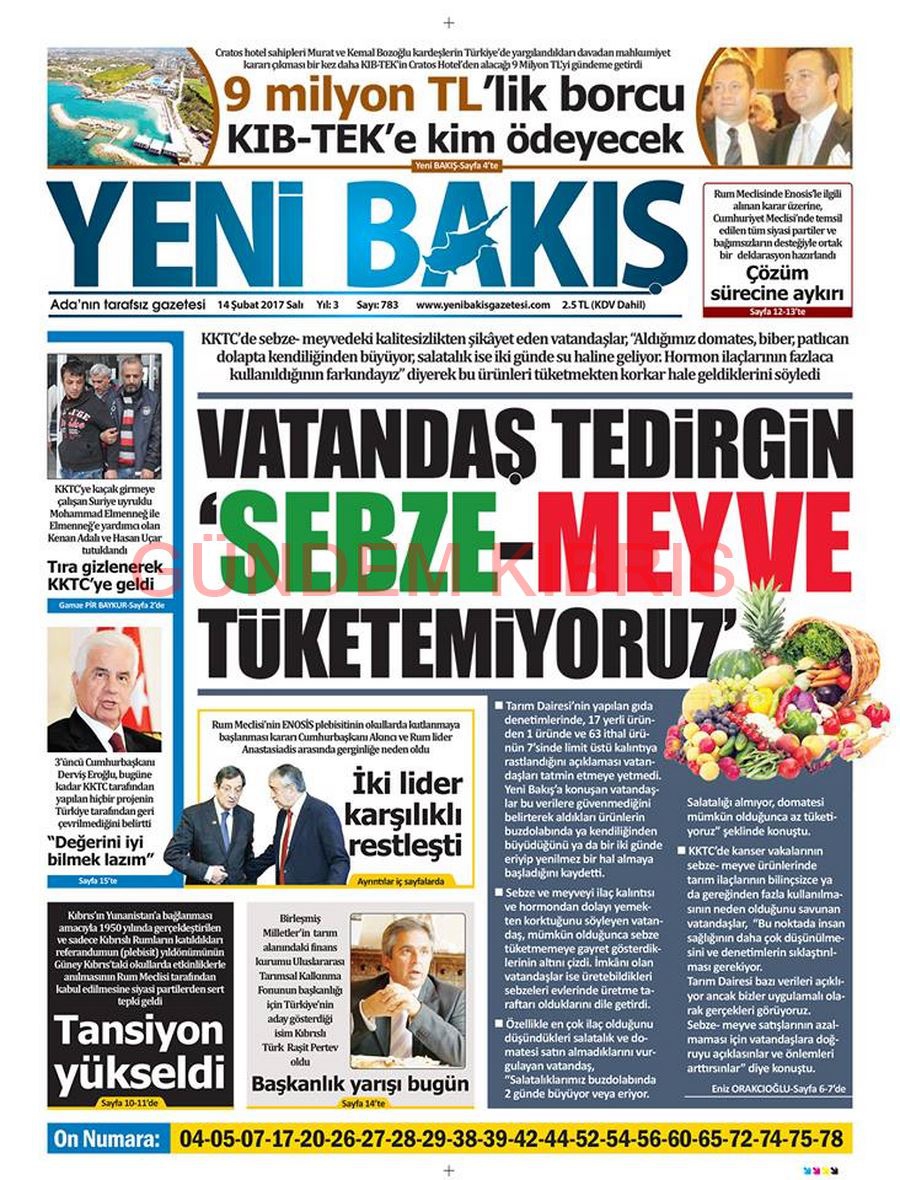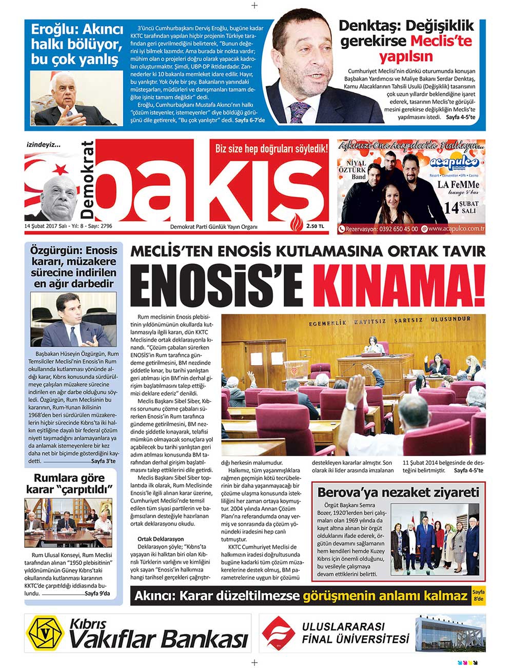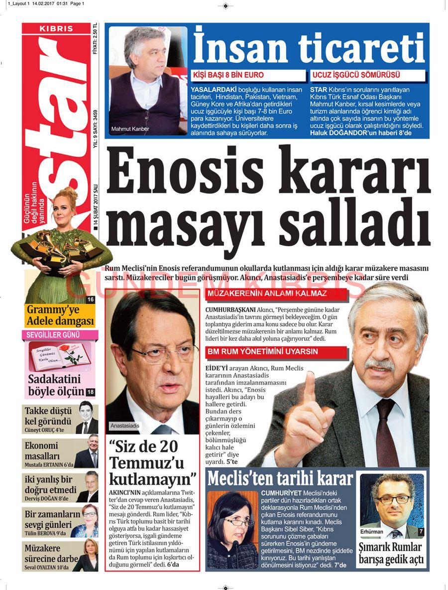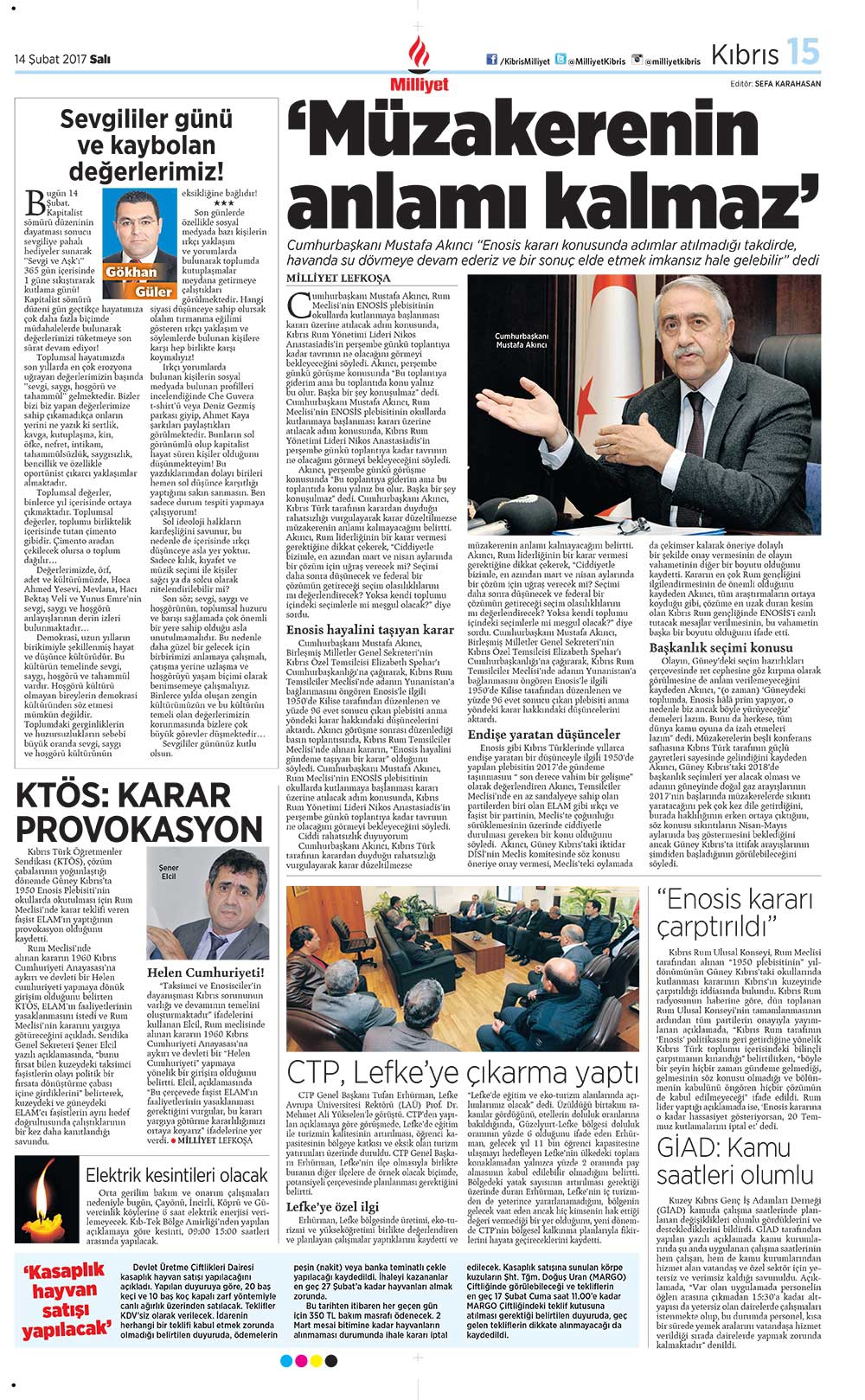KKTC Gazete Manşetleri 14 Şubat 2017