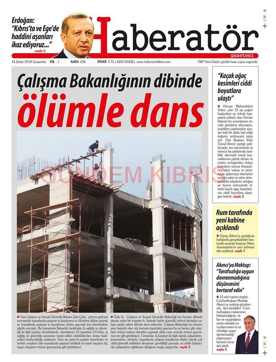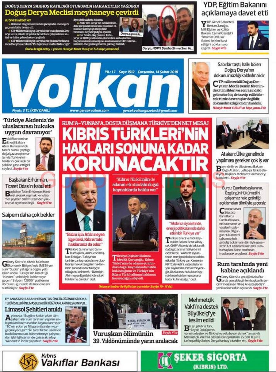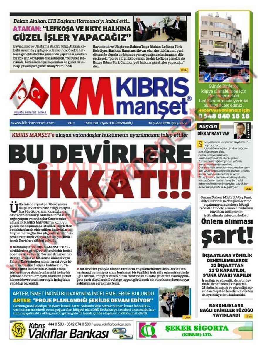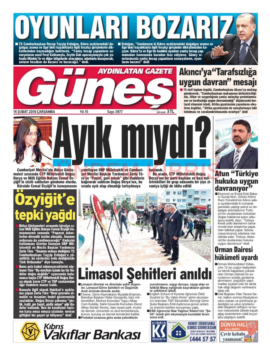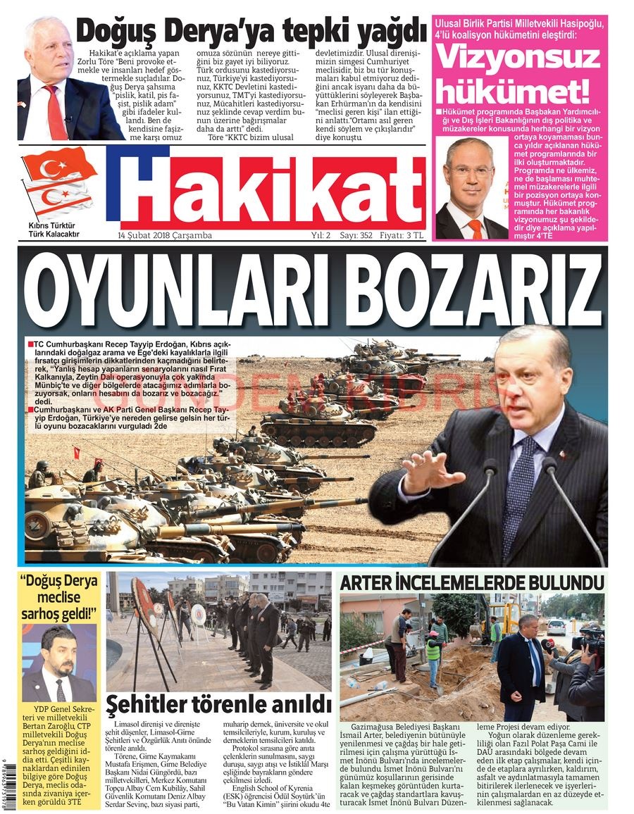 KKTC Gazete Manşetleri 14 Şubat 2018