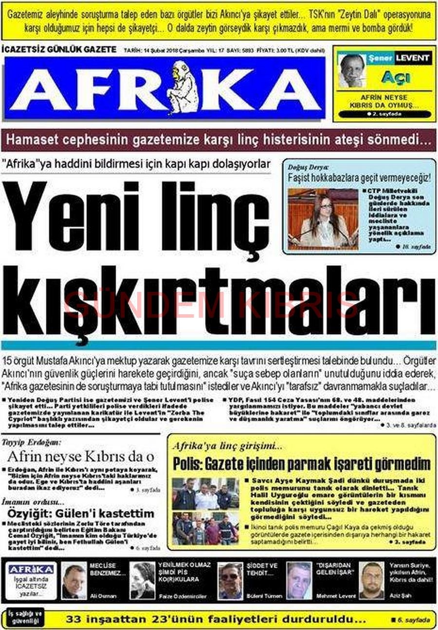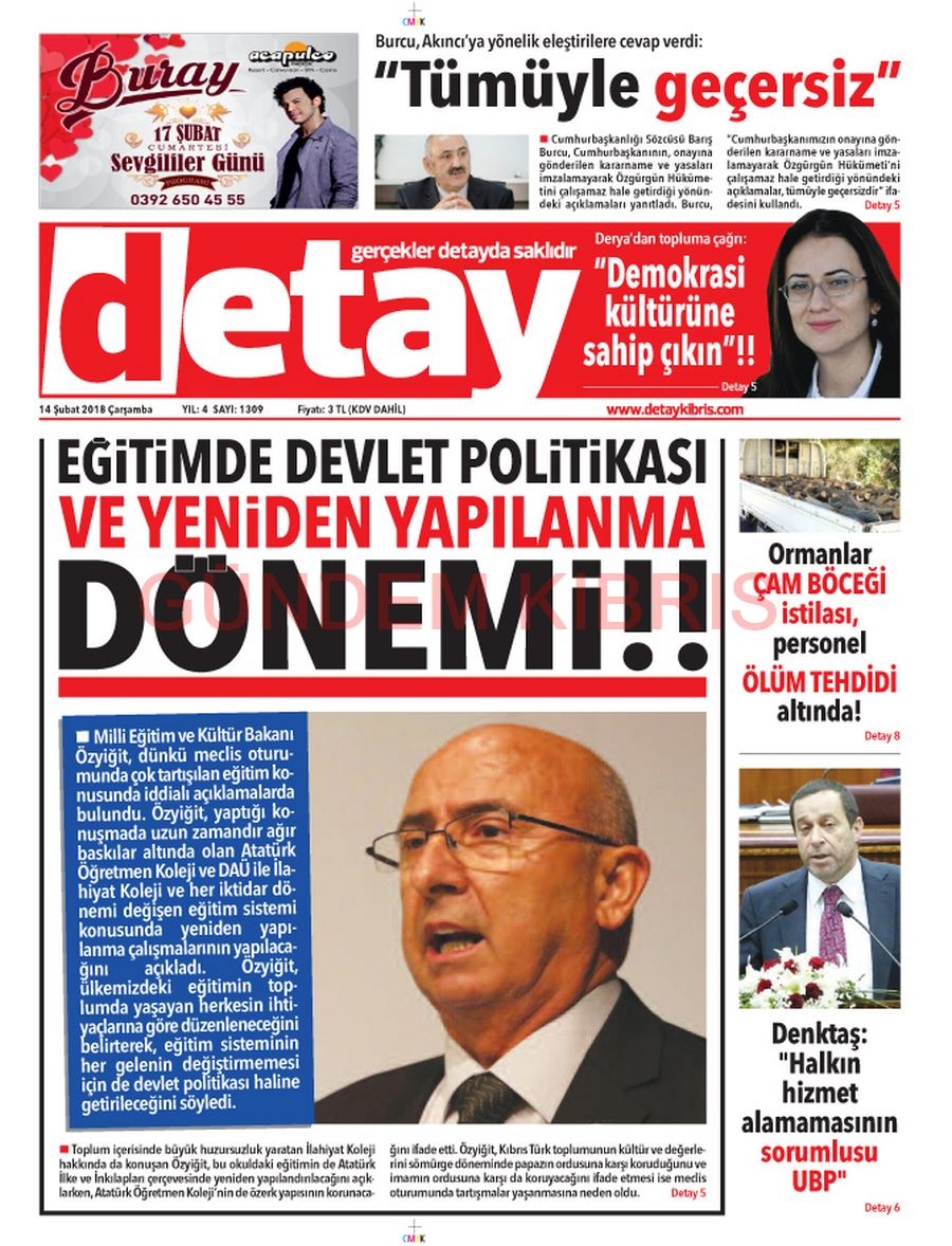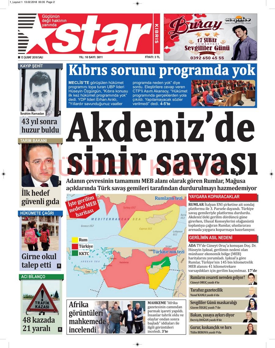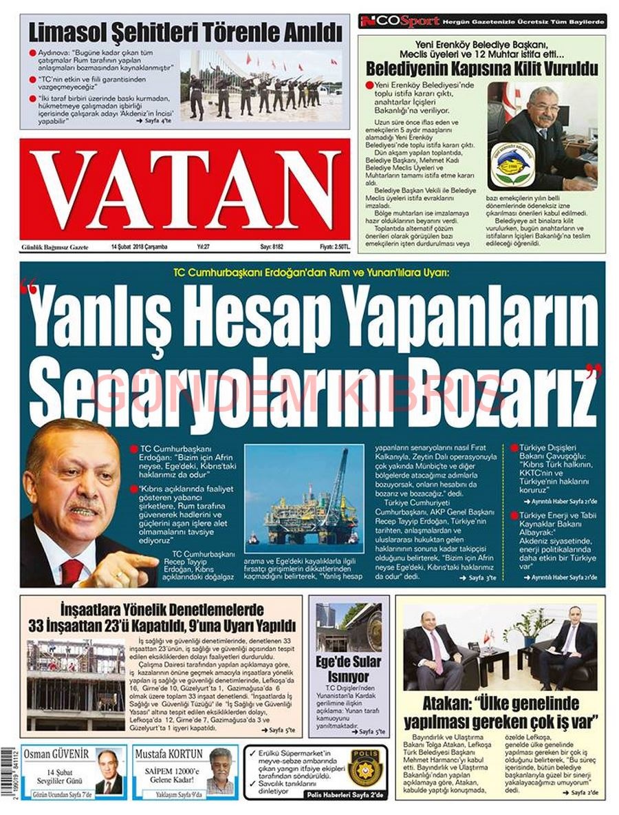 KKTC Gazete Manşetleri 14 Şubat 2018