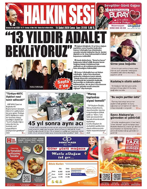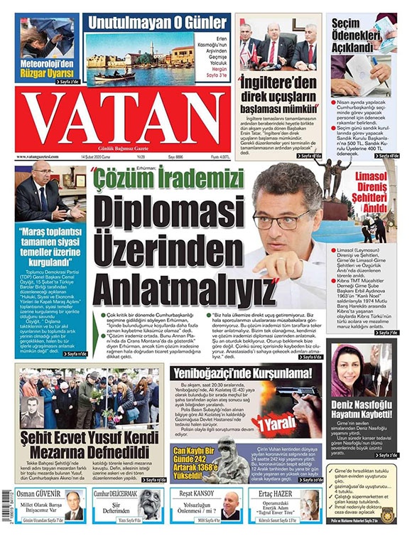 KKTC Gazete Manşetleri - 14 Şubat 2020