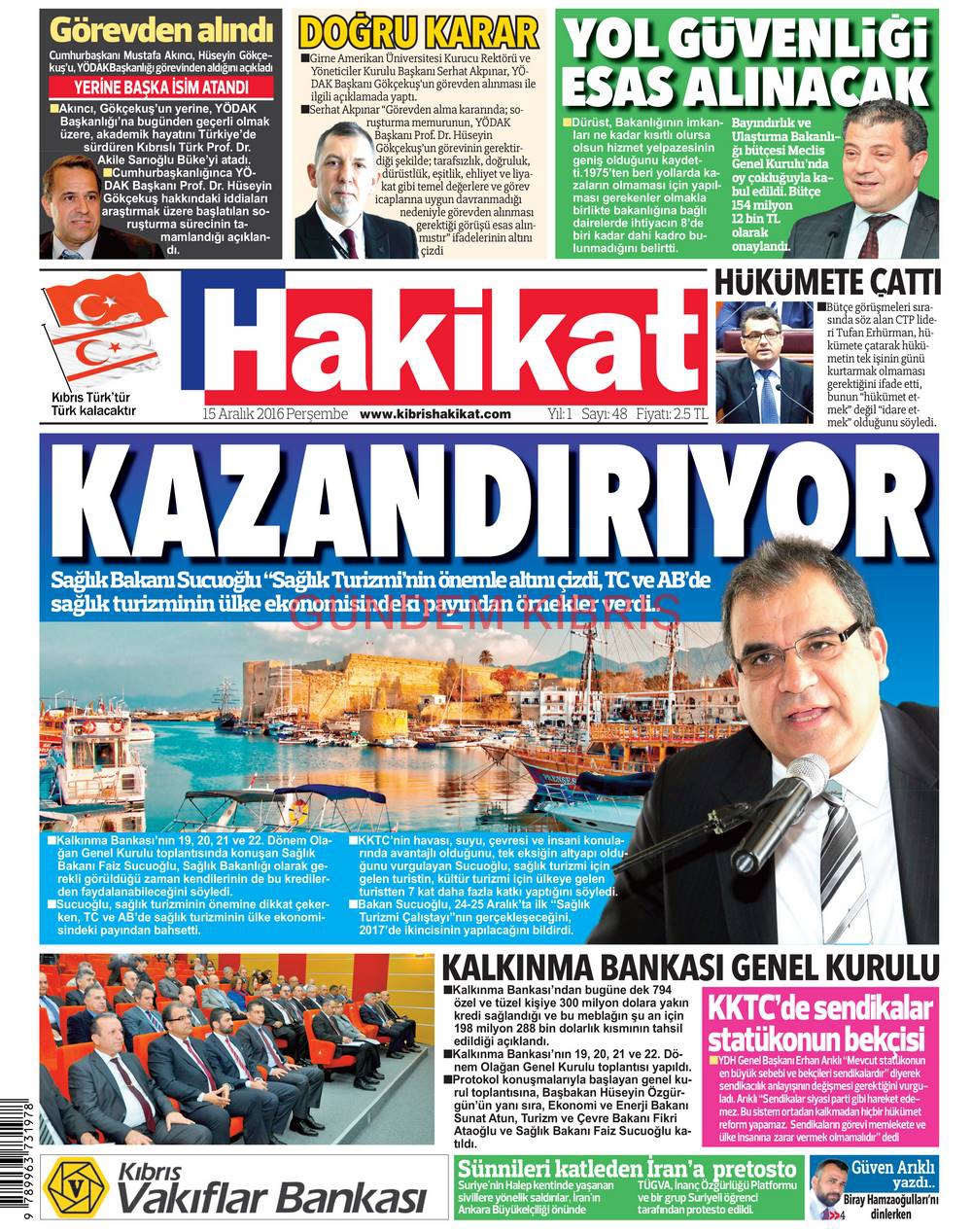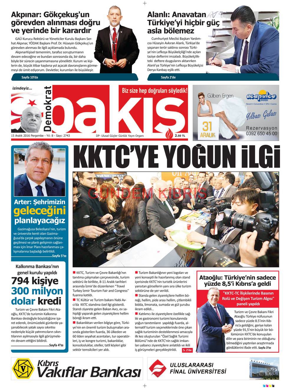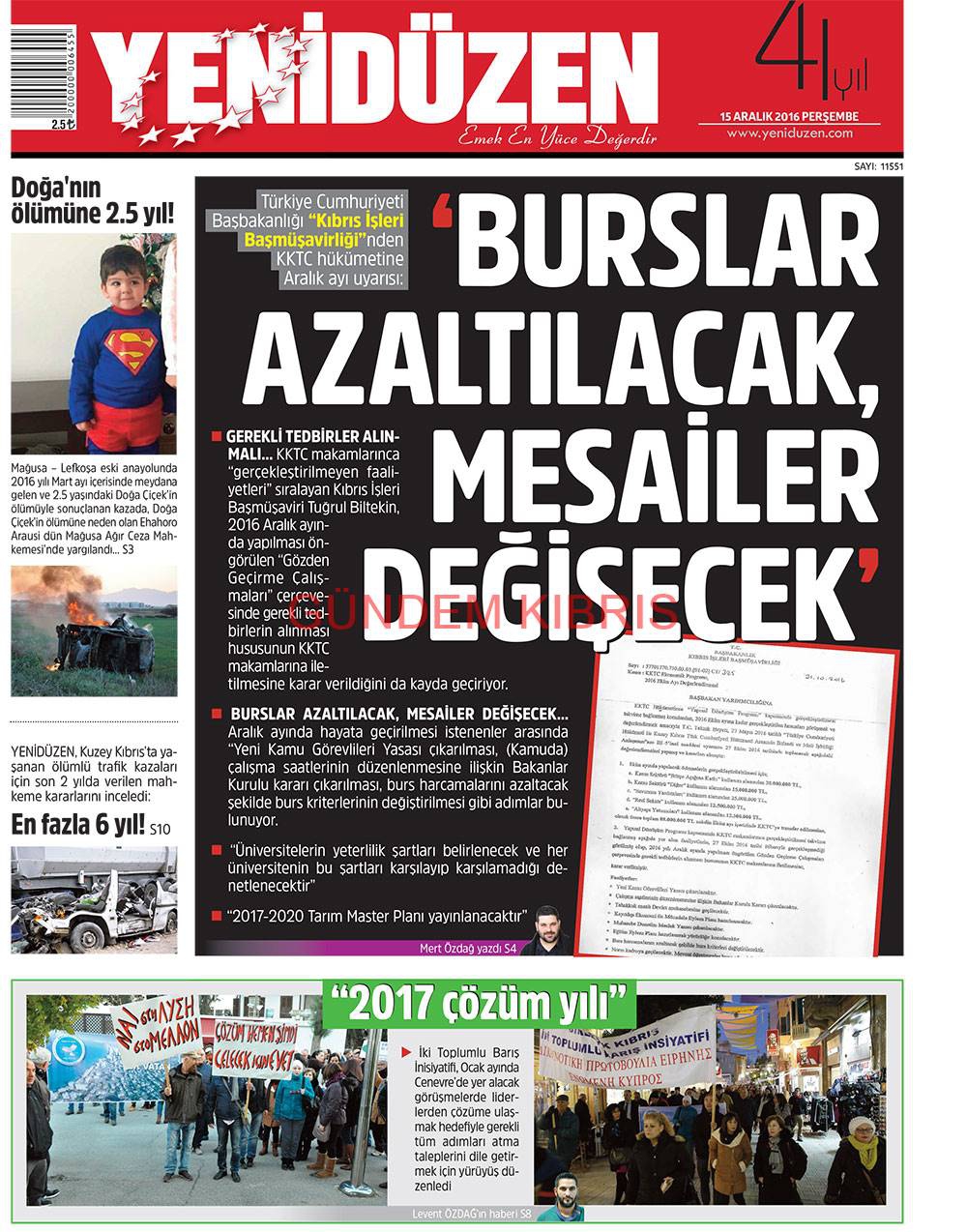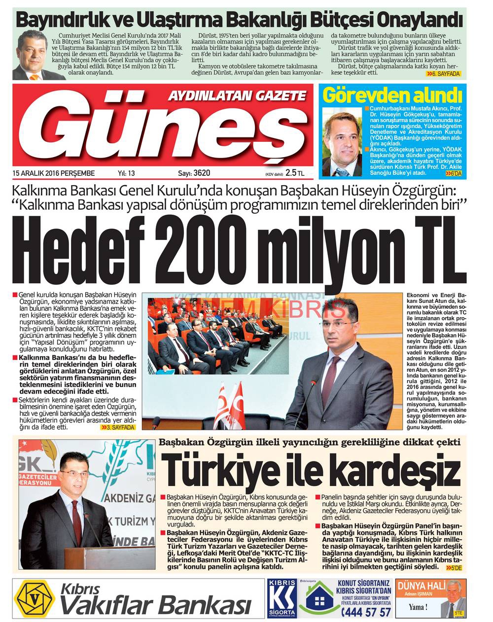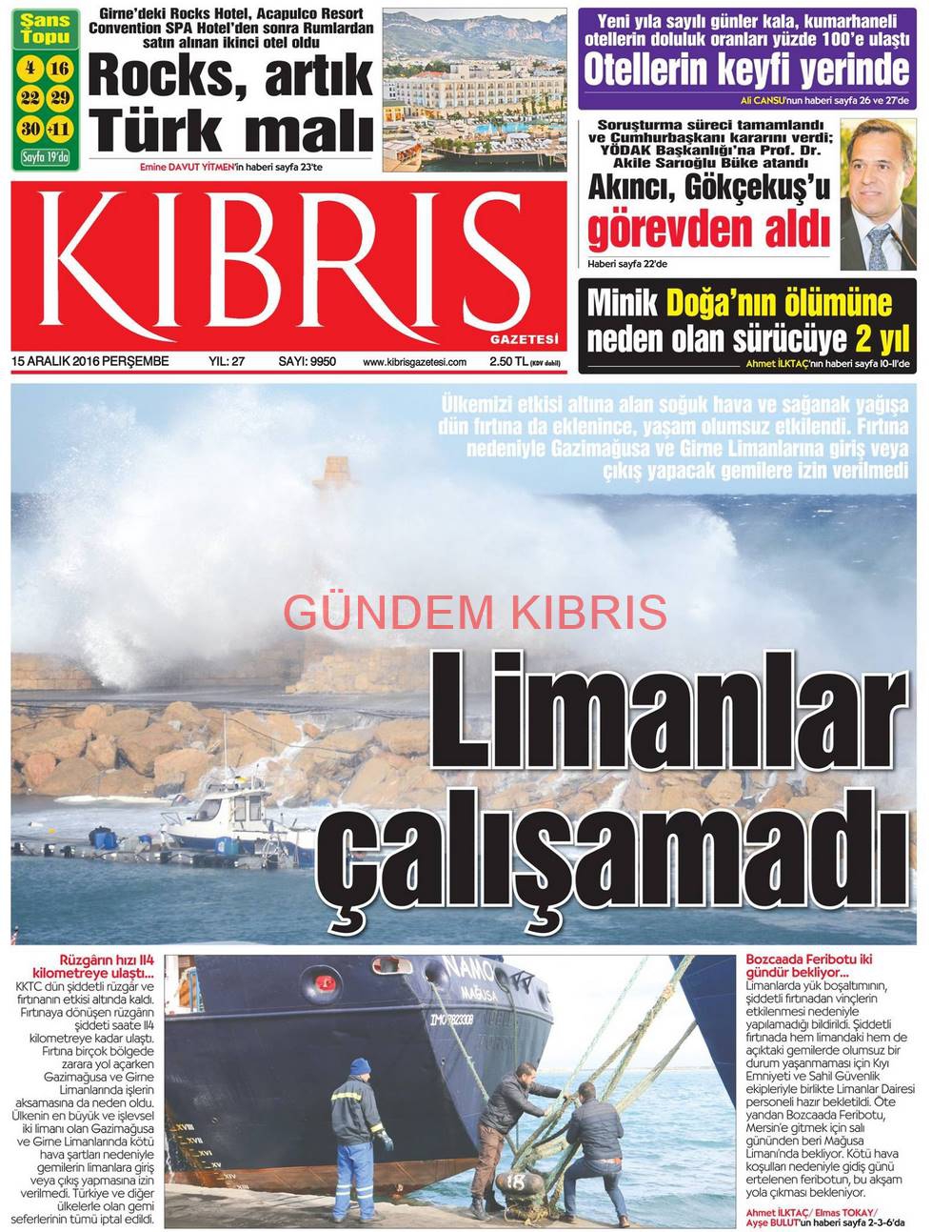 KKTC Gazete Manşetleri 15 Aralık 2016