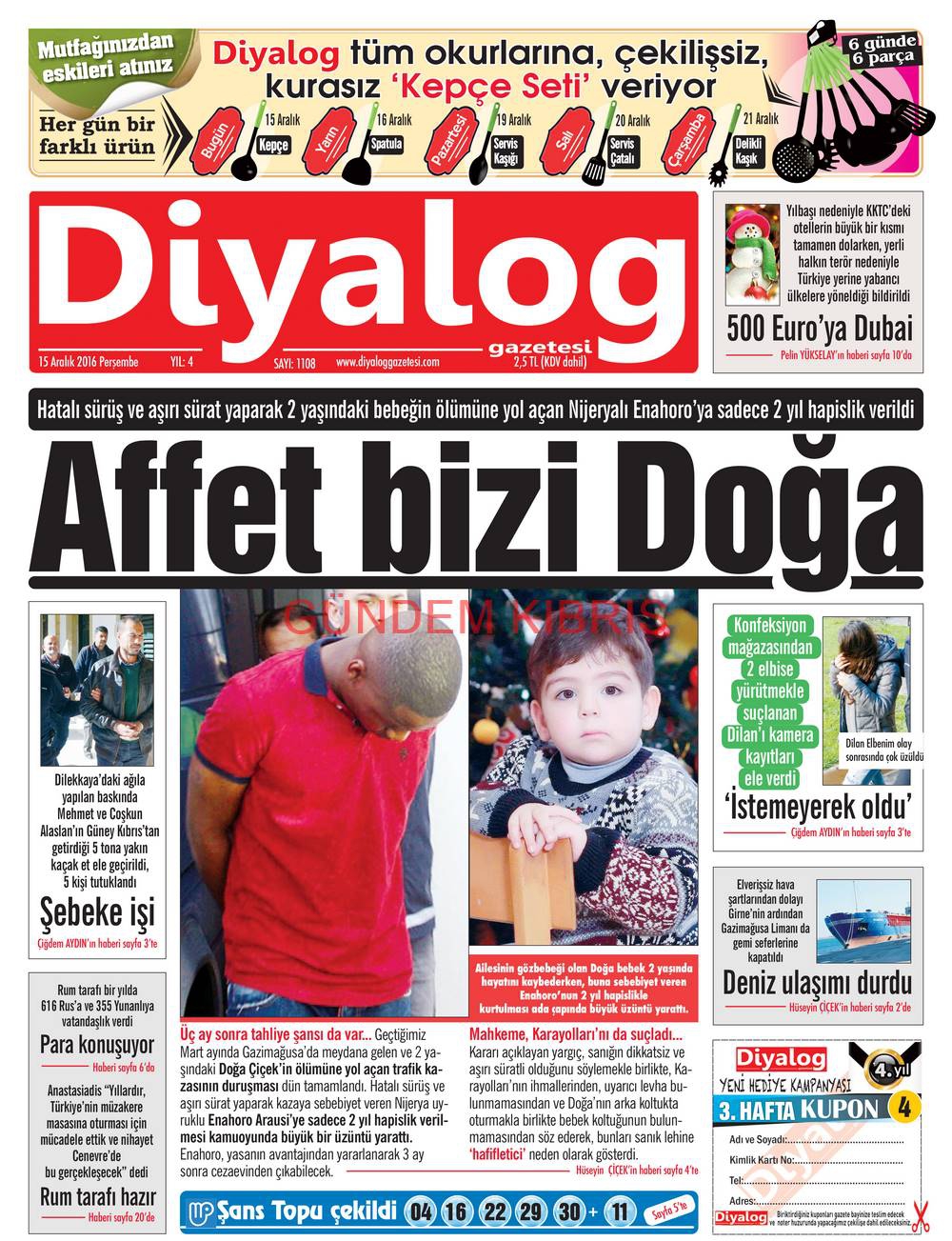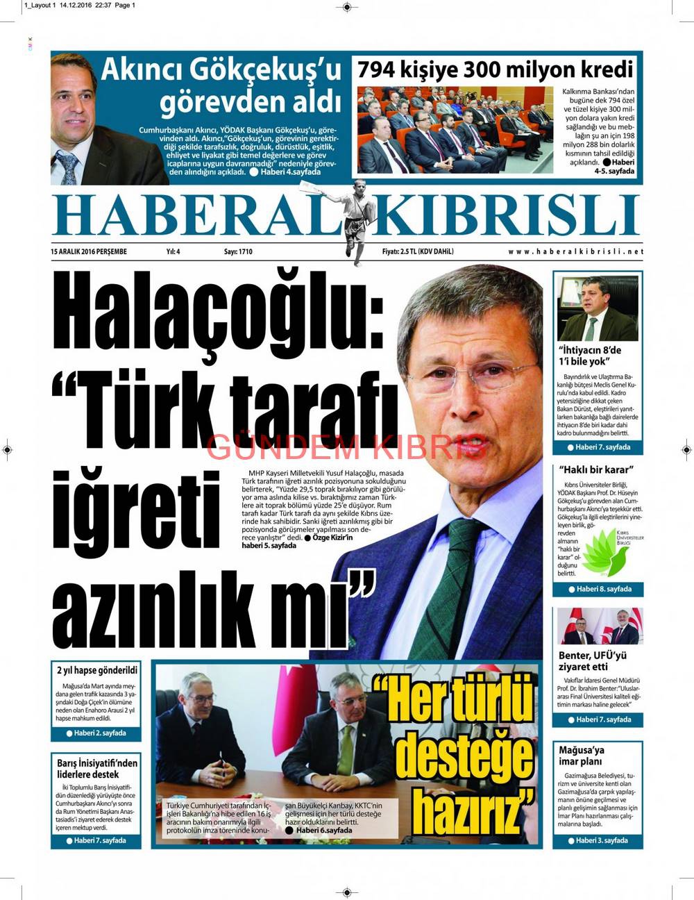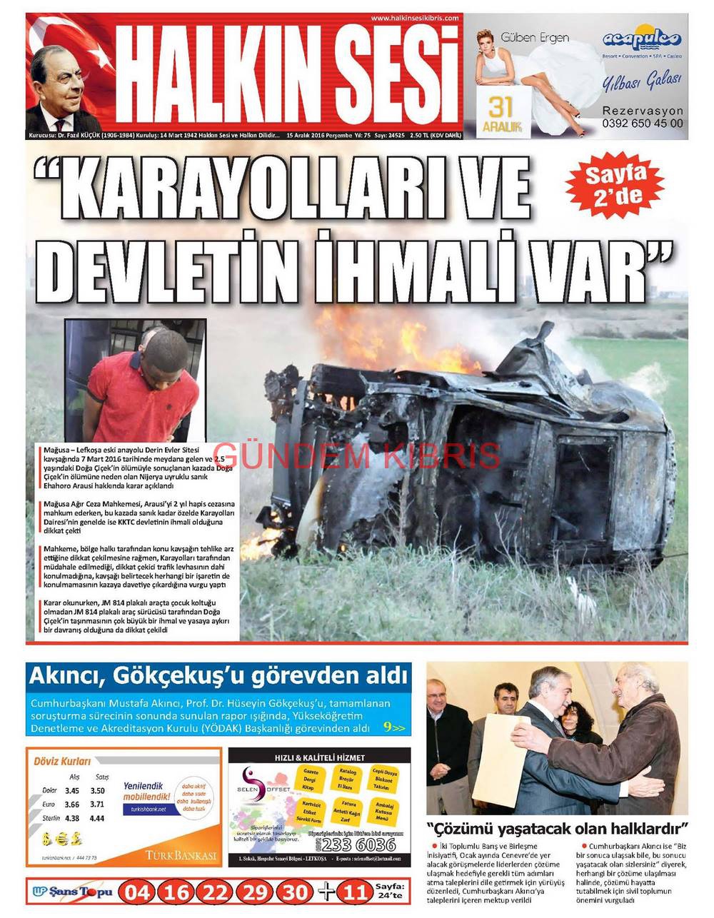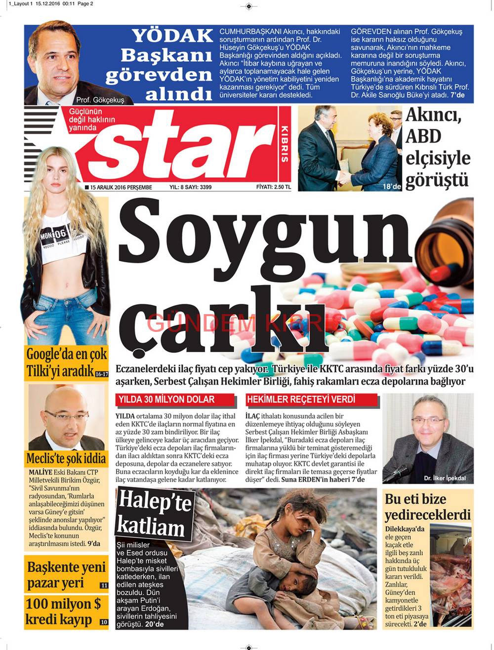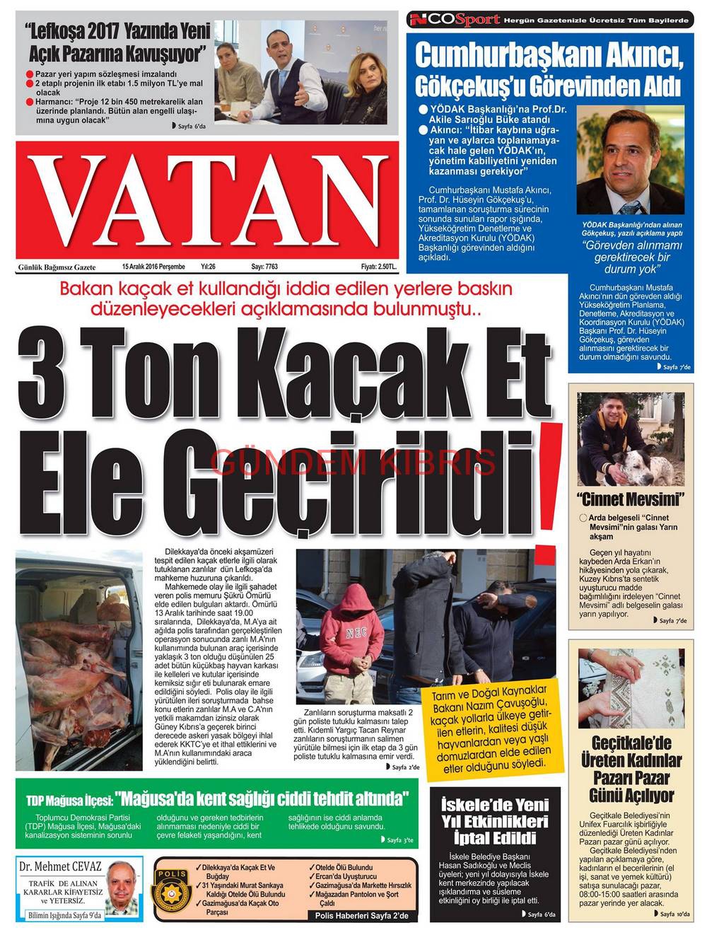 KKTC Gazete Manşetleri 15 Aralık 2016