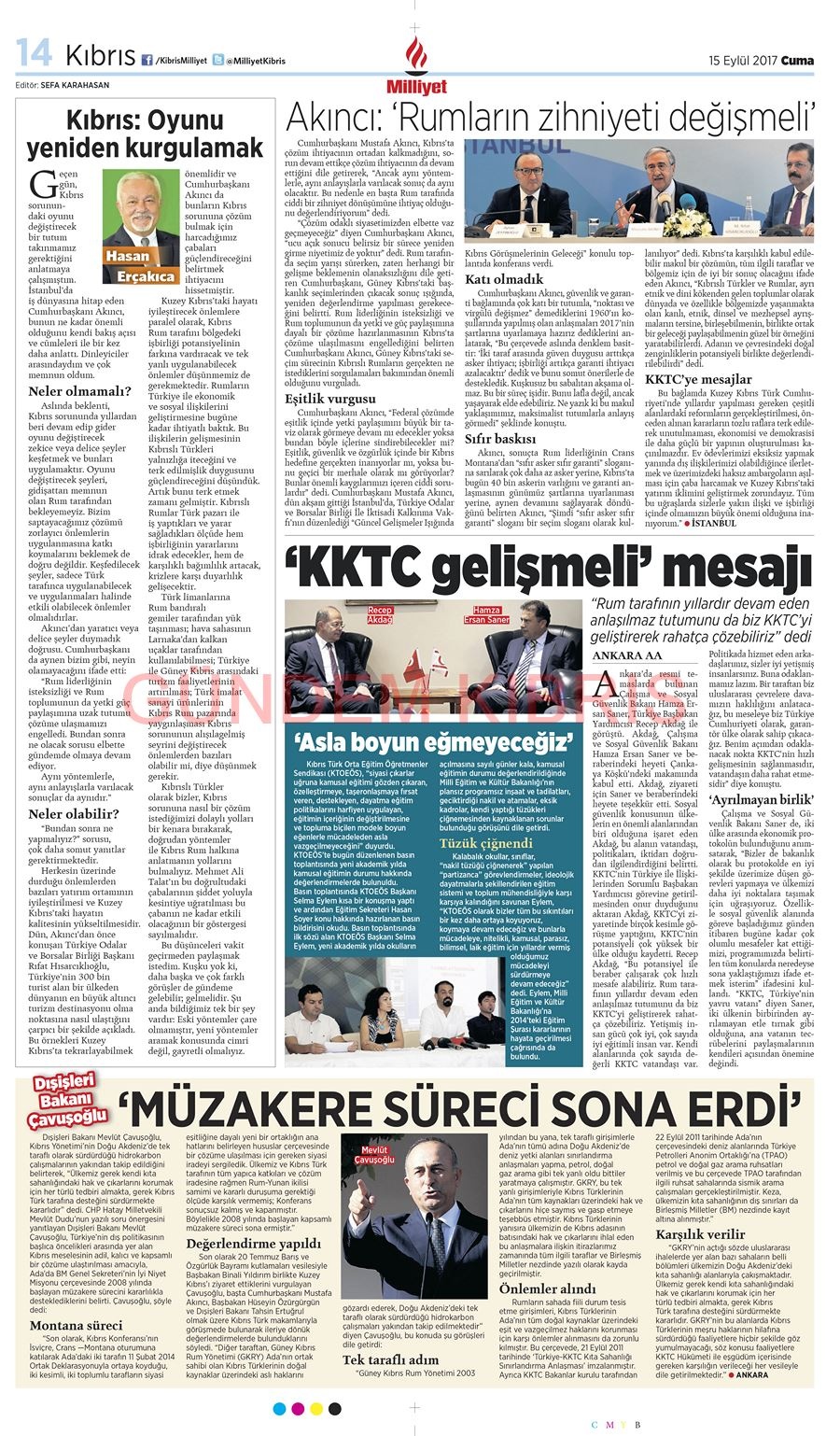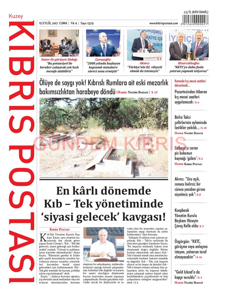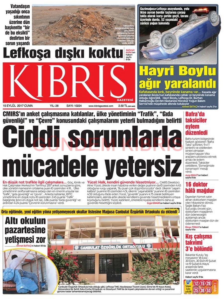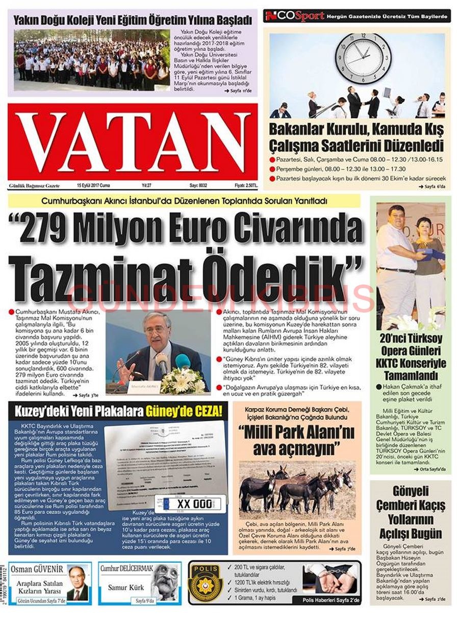 KKTC Gazete Manşetleri 15 Eylül 2017