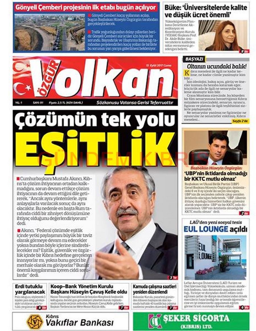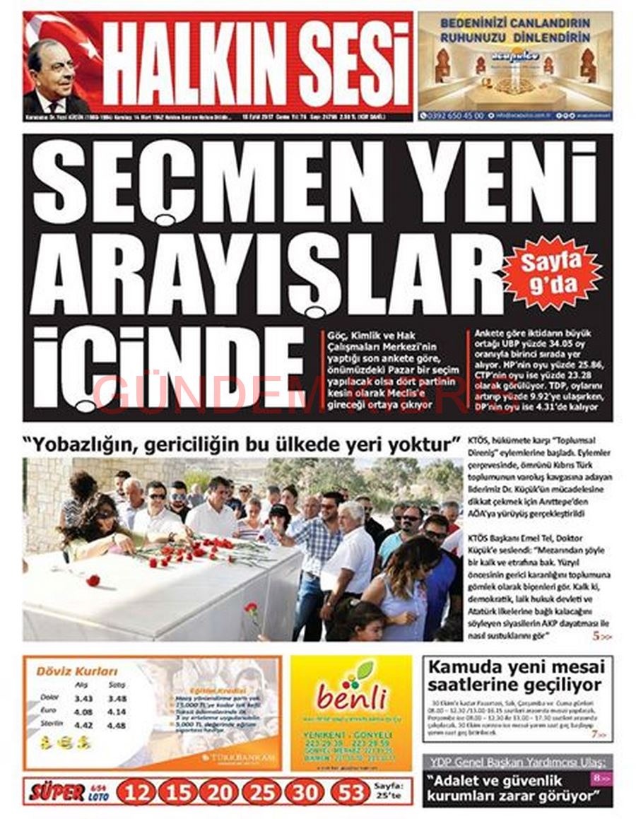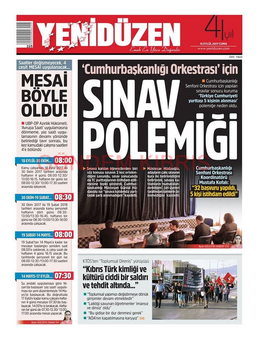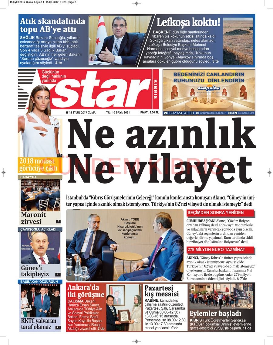KKTC Gazete Manşetleri 15 Eylül 2017