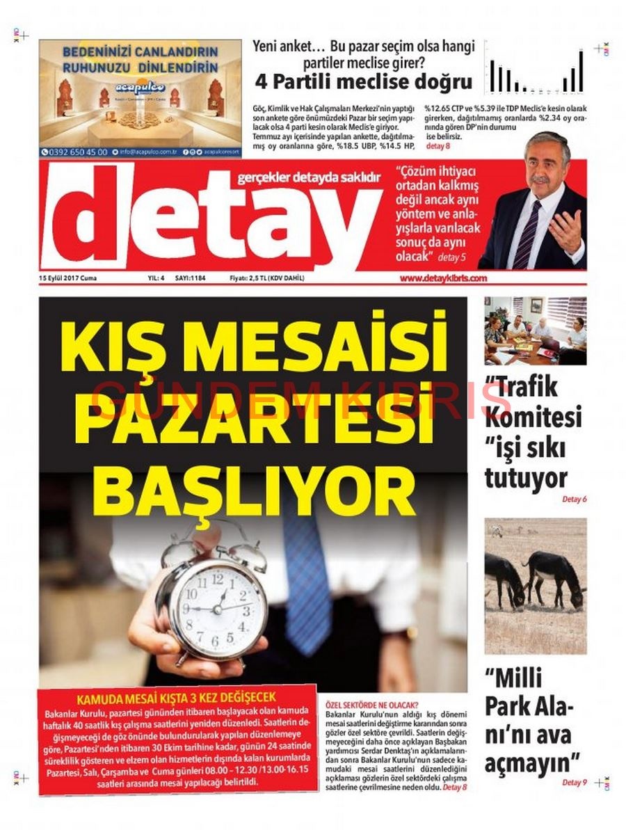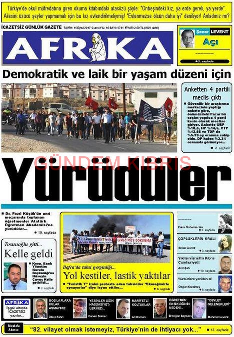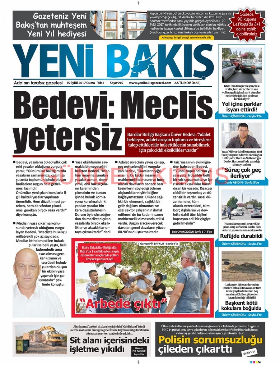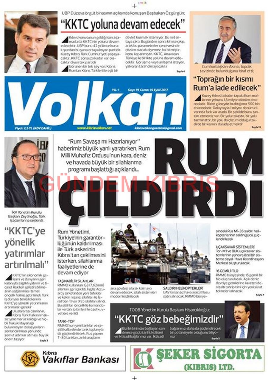 KKTC Gazete Manşetleri 15 Eylül 2017