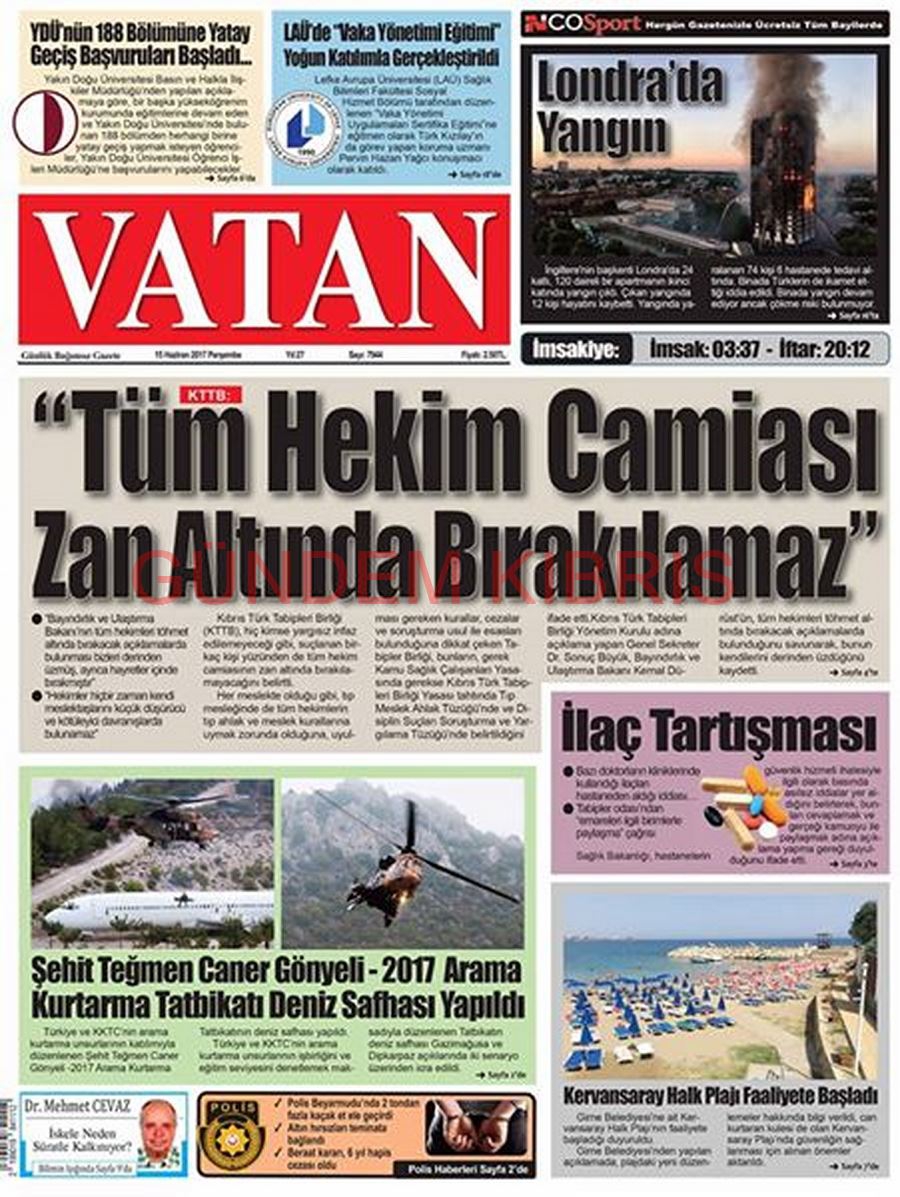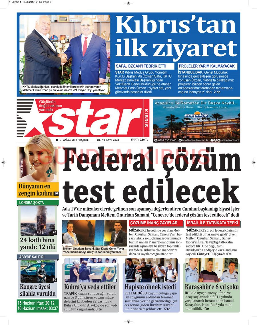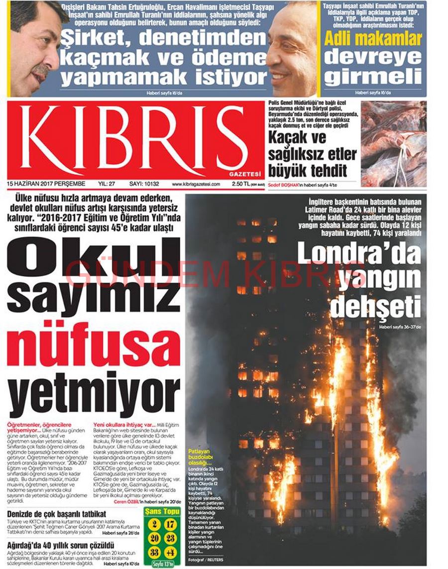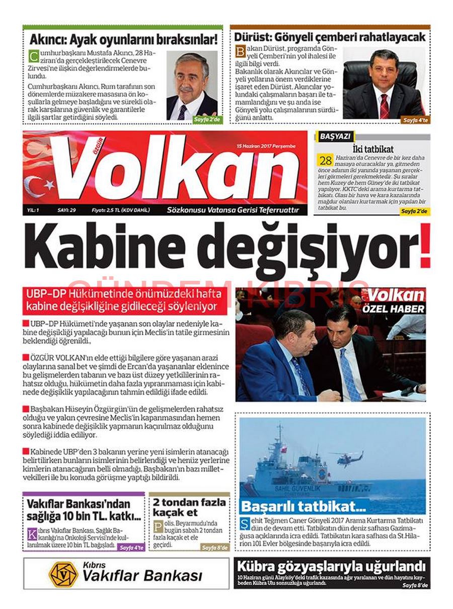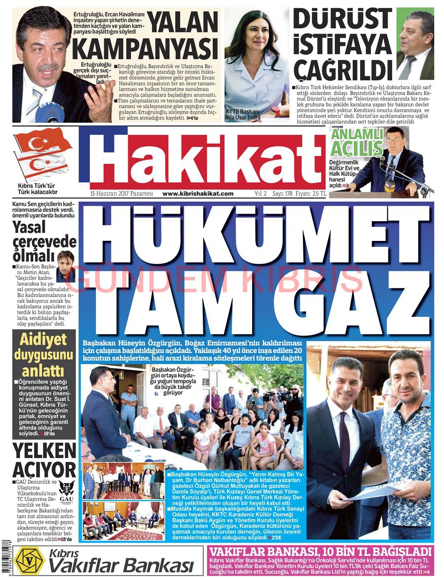 KKTC Gazete Manşetleri 15 Haziran 2017