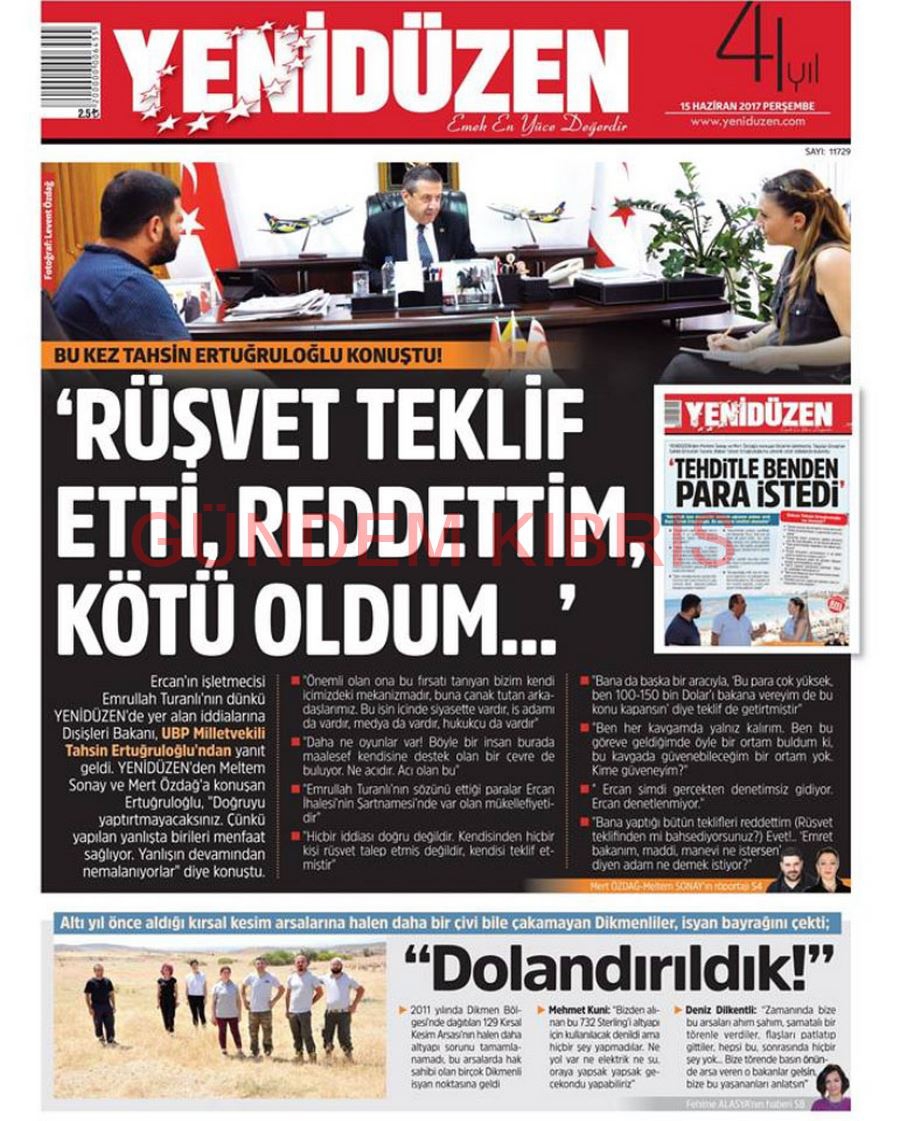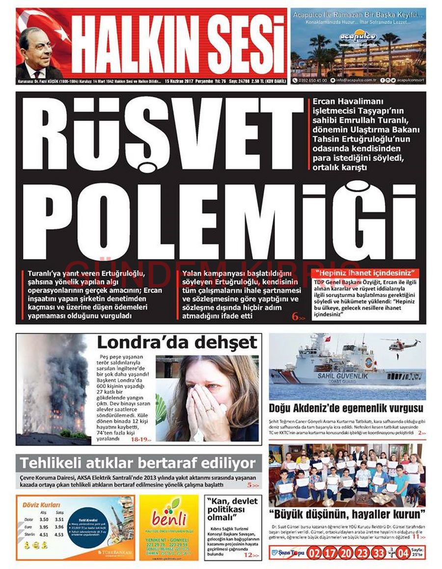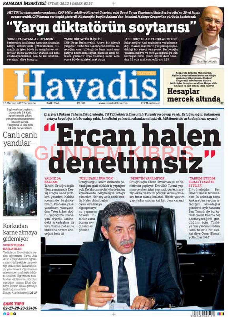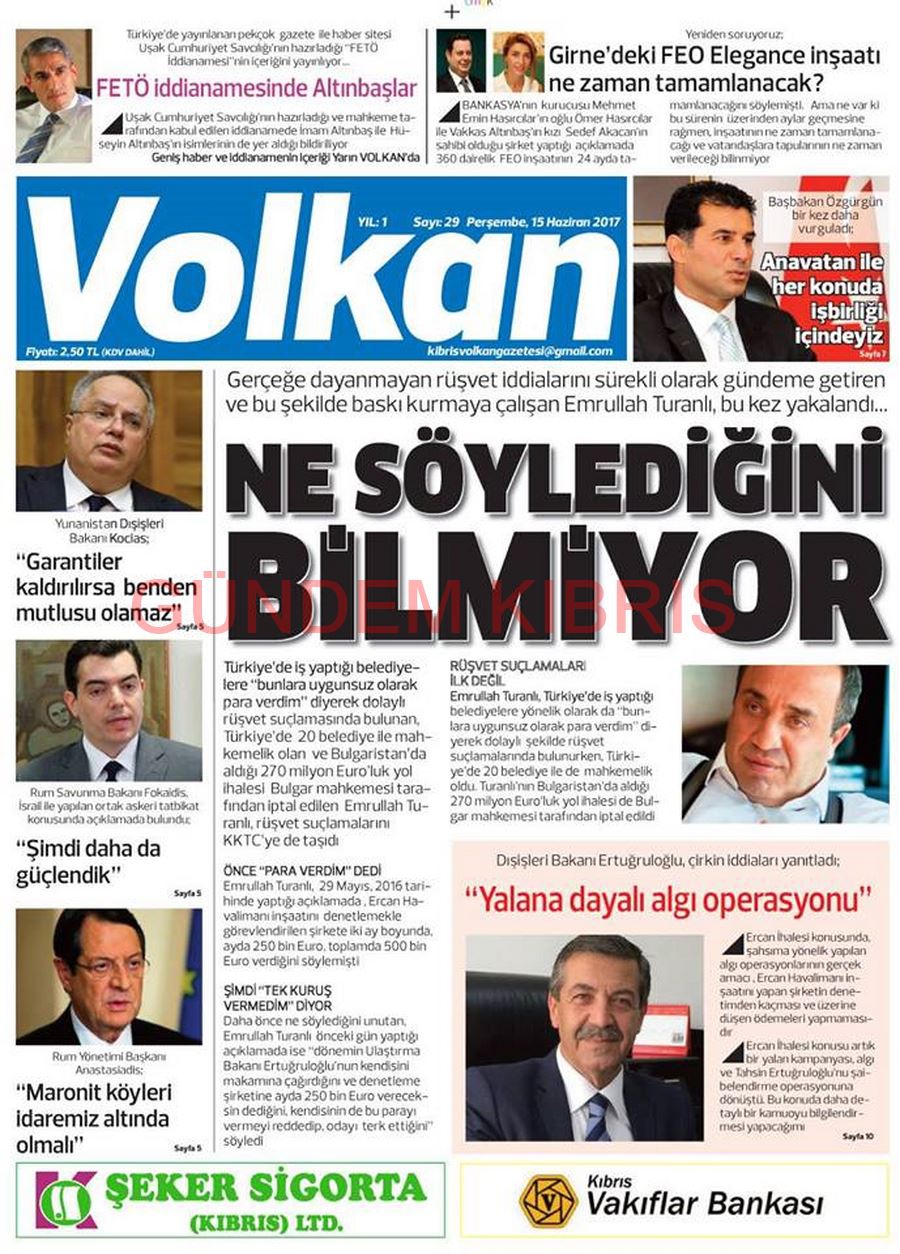 KKTC Gazete Manşetleri 15 Haziran 2017