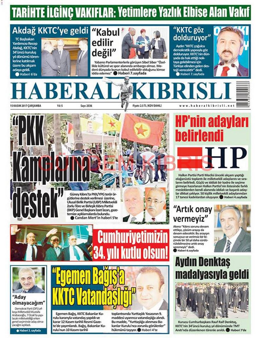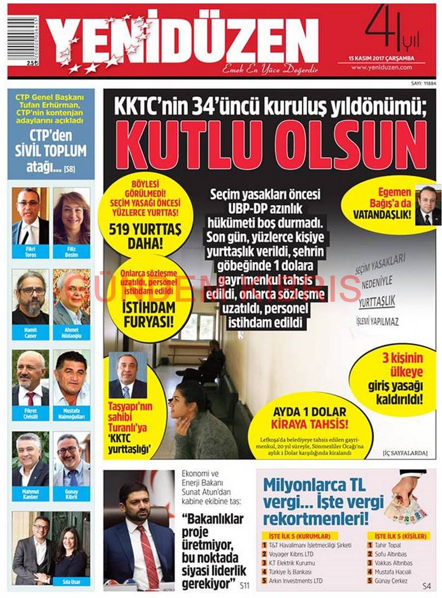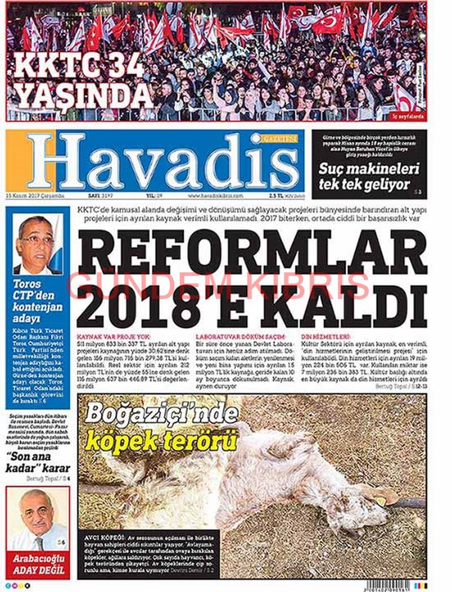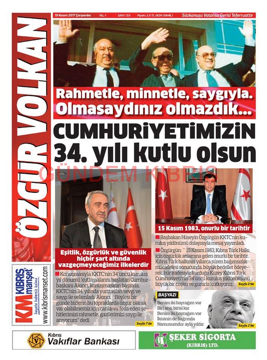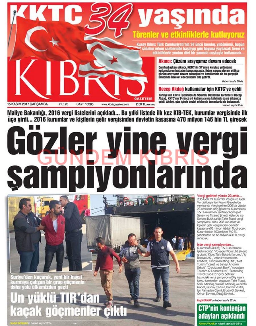 KKTC Gazete Manşetleri 15 Kasım 2017