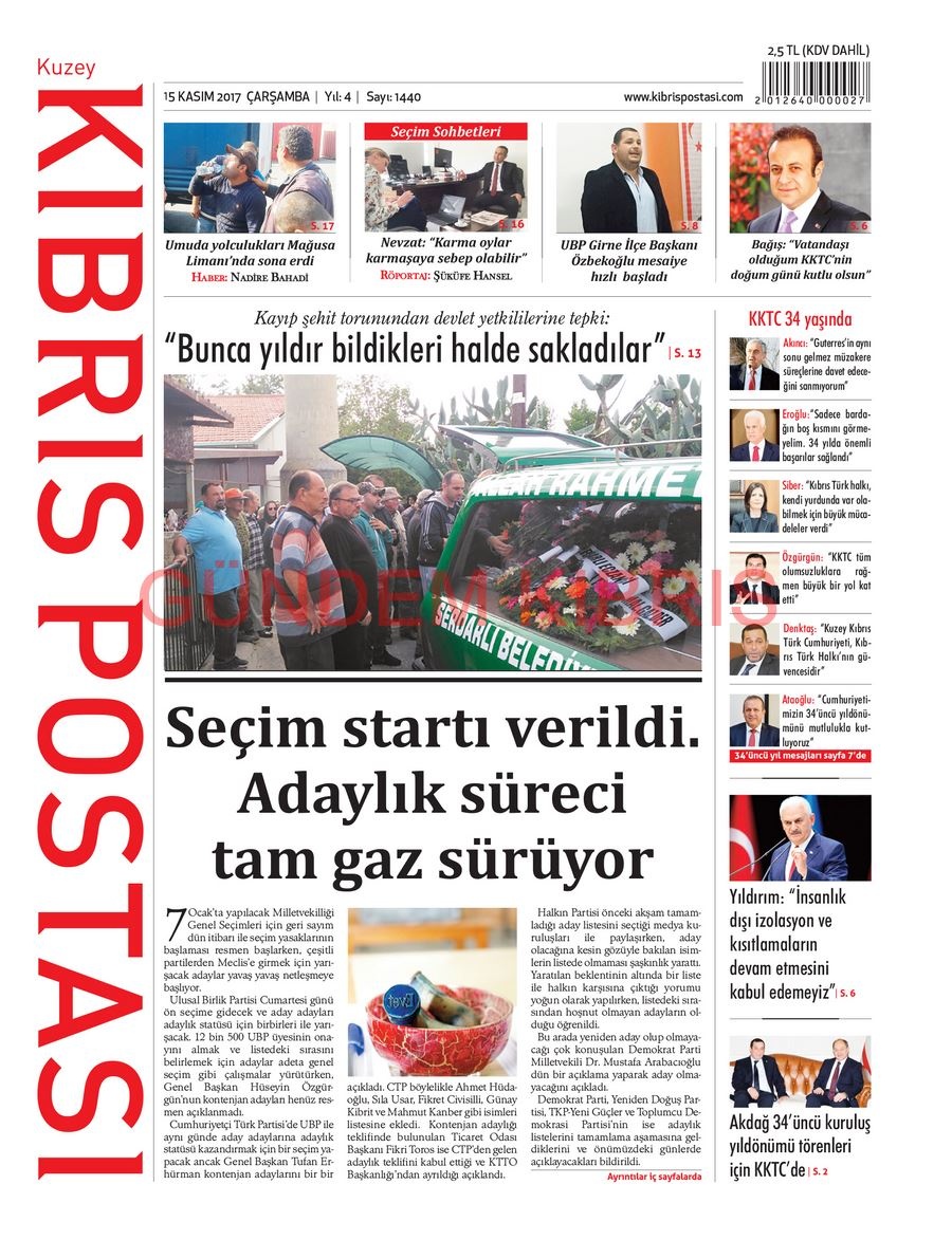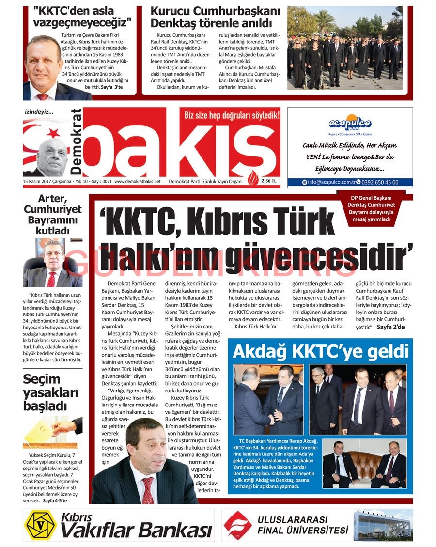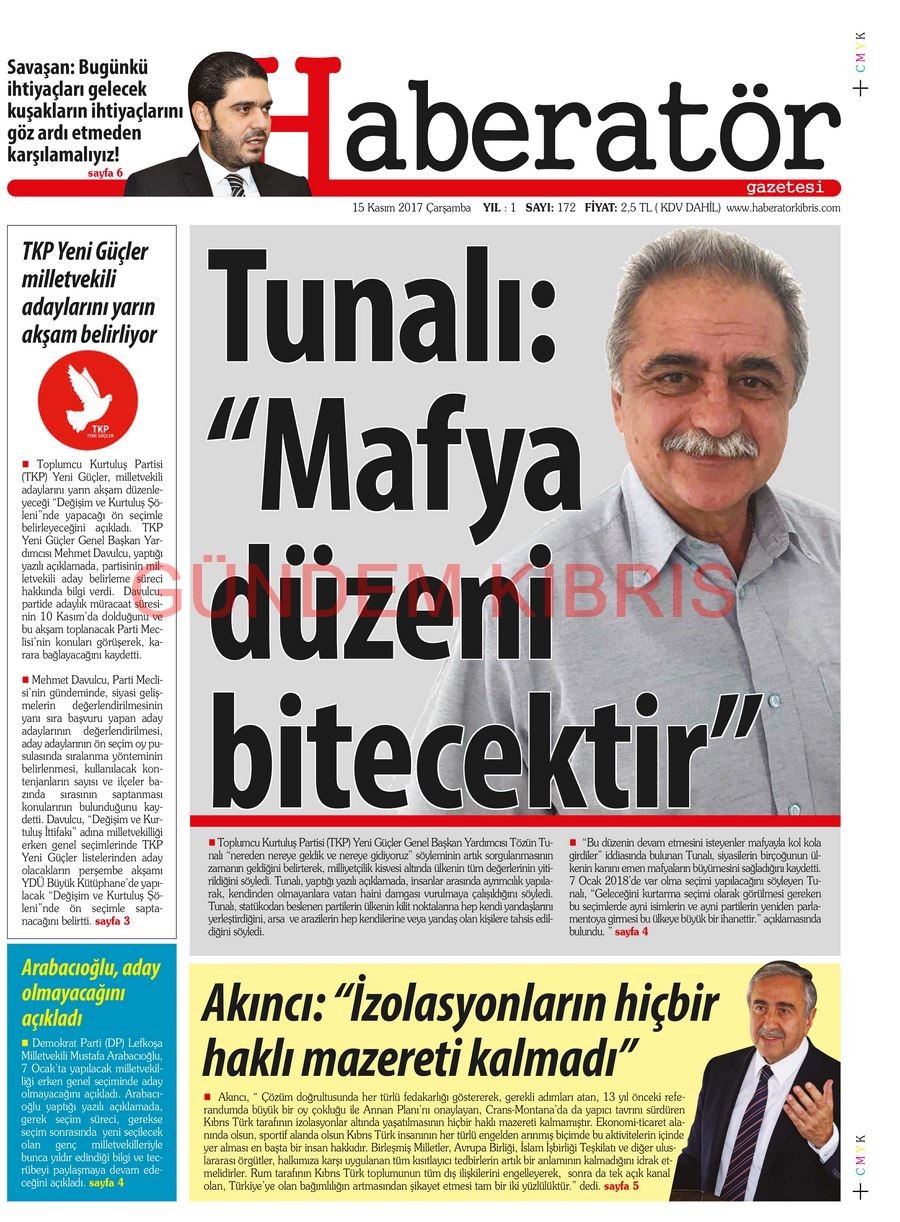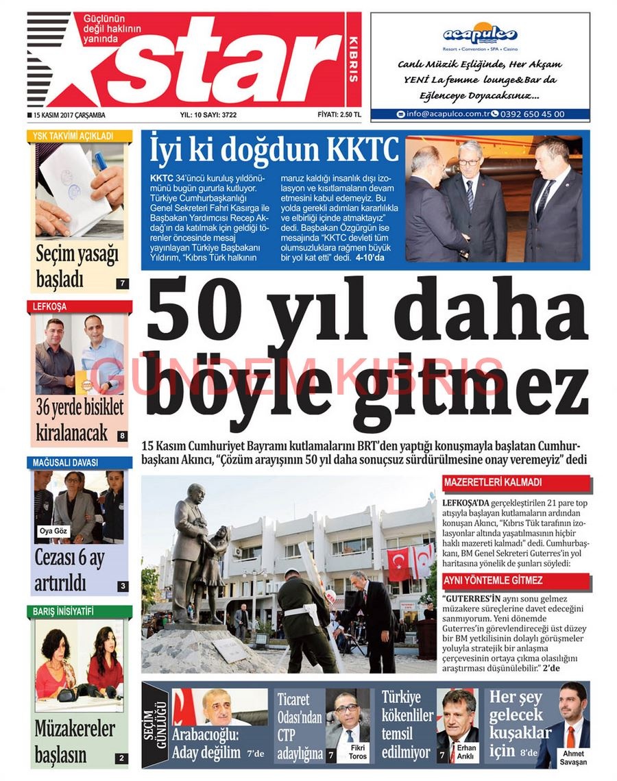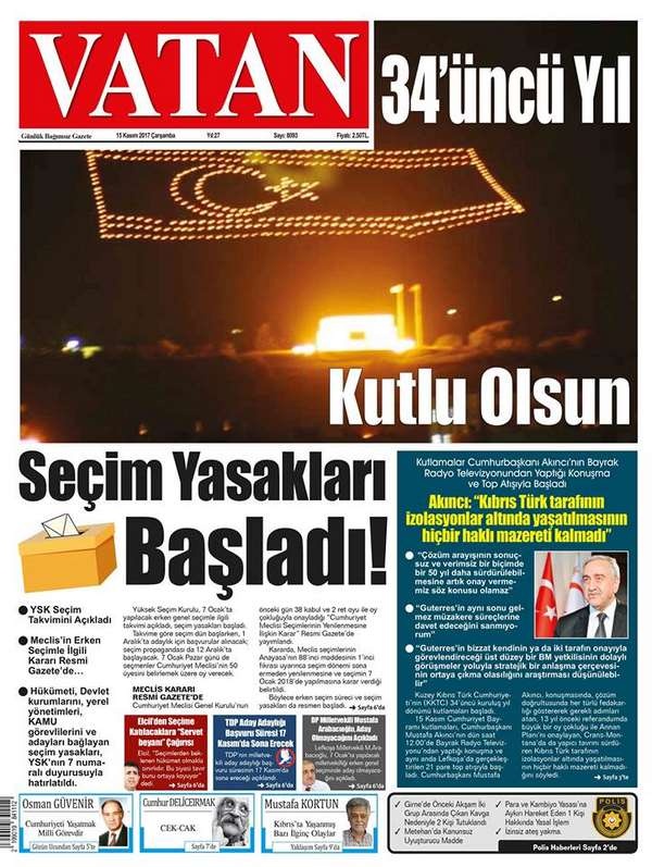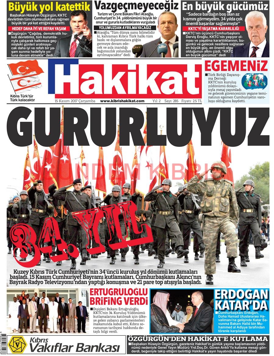 KKTC Gazete Manşetleri 15 Kasım 2017