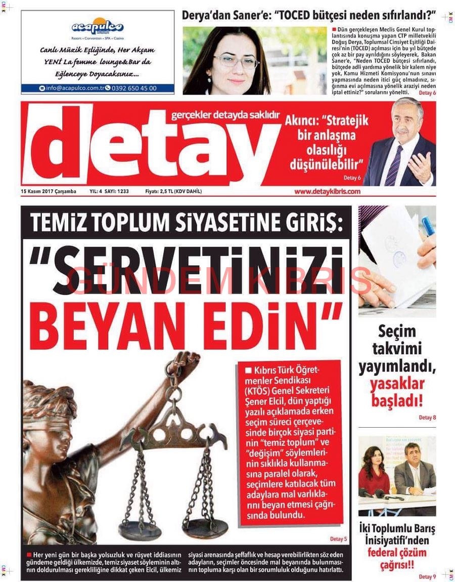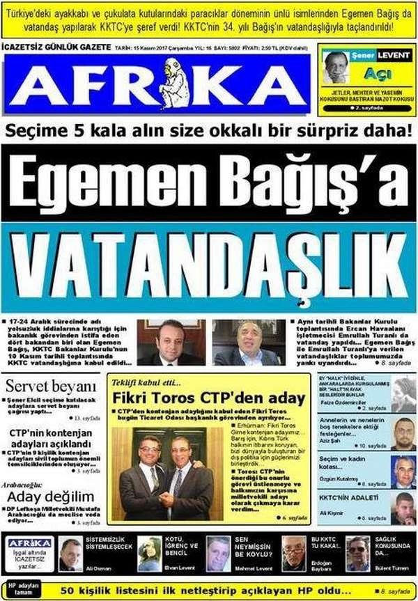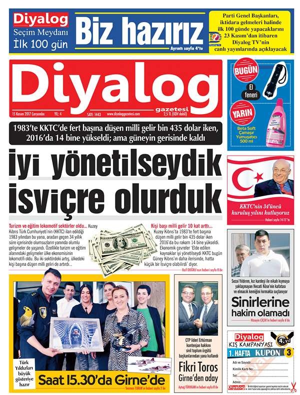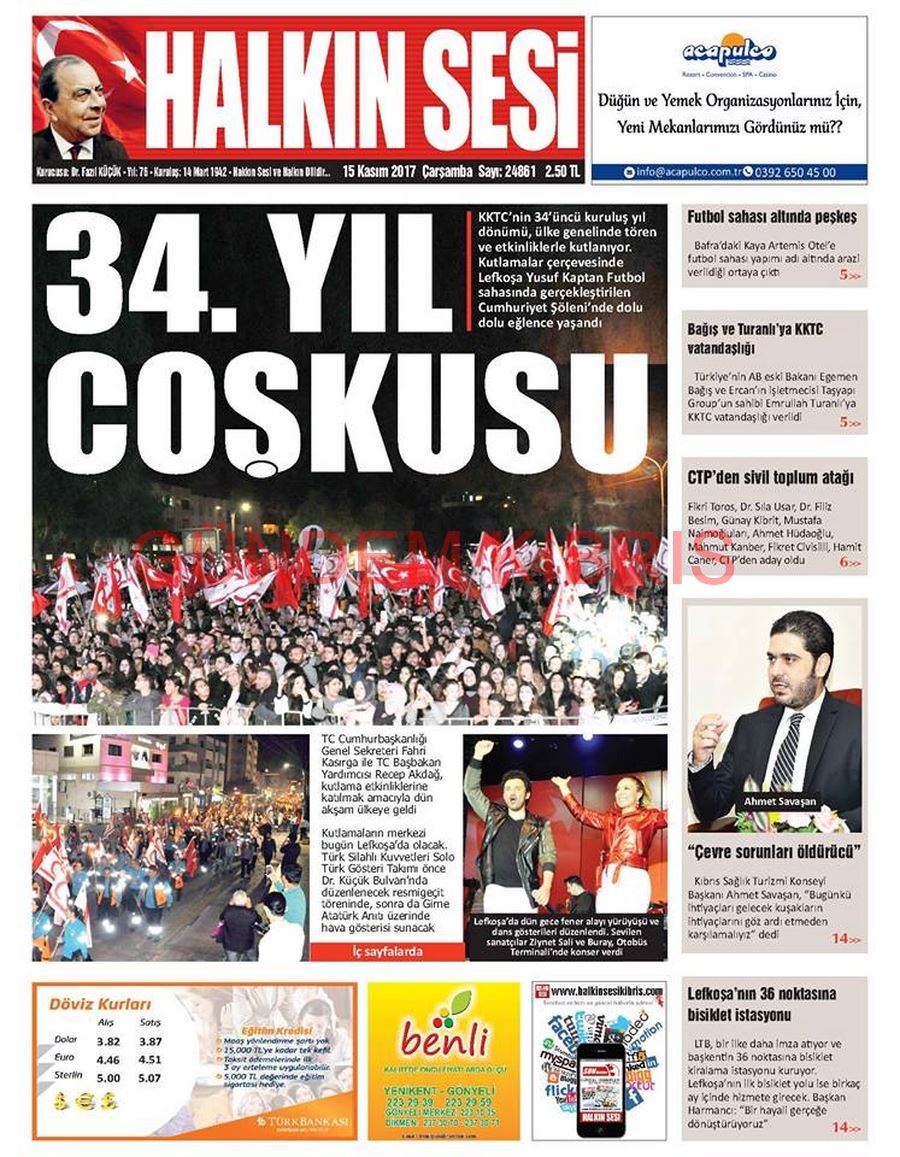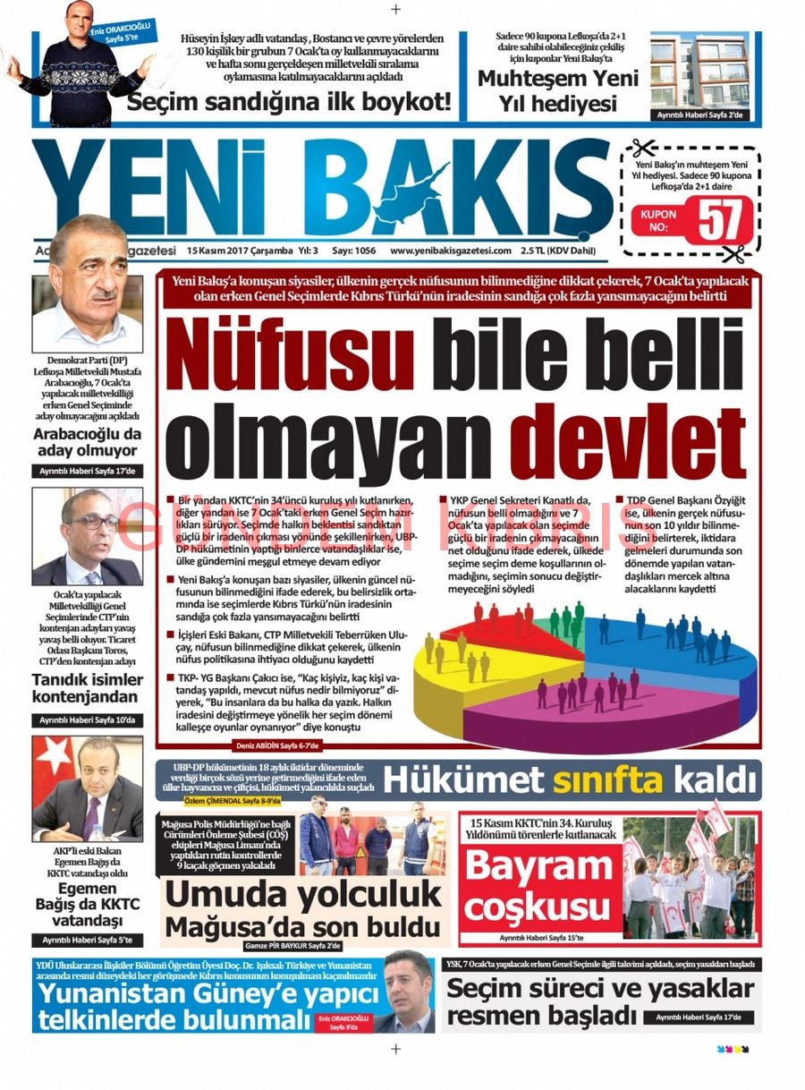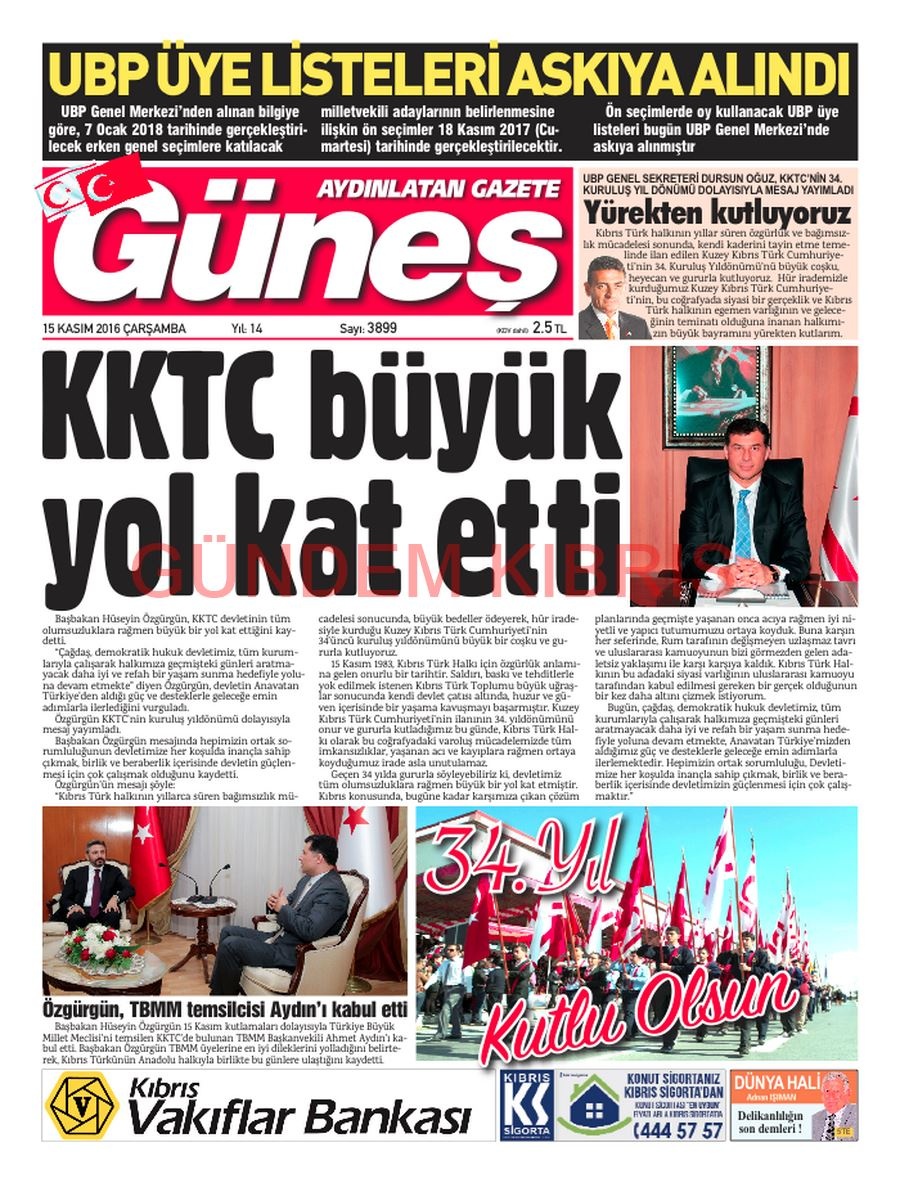 KKTC Gazete Manşetleri 15 Kasım 2017