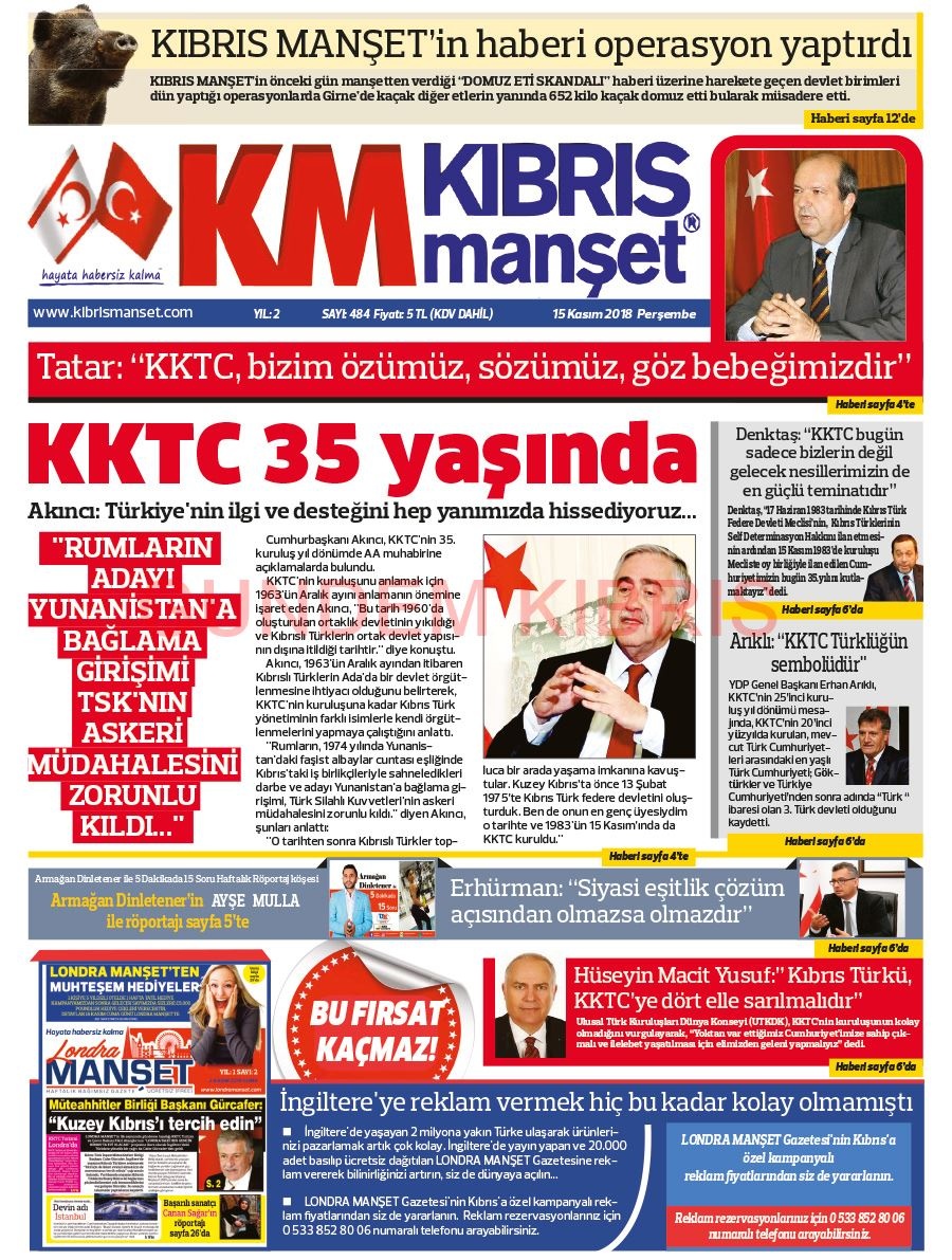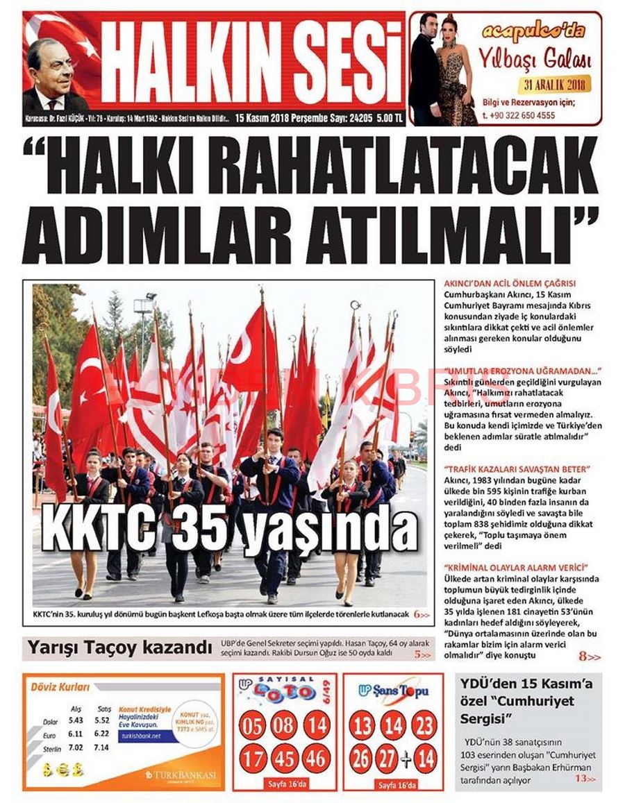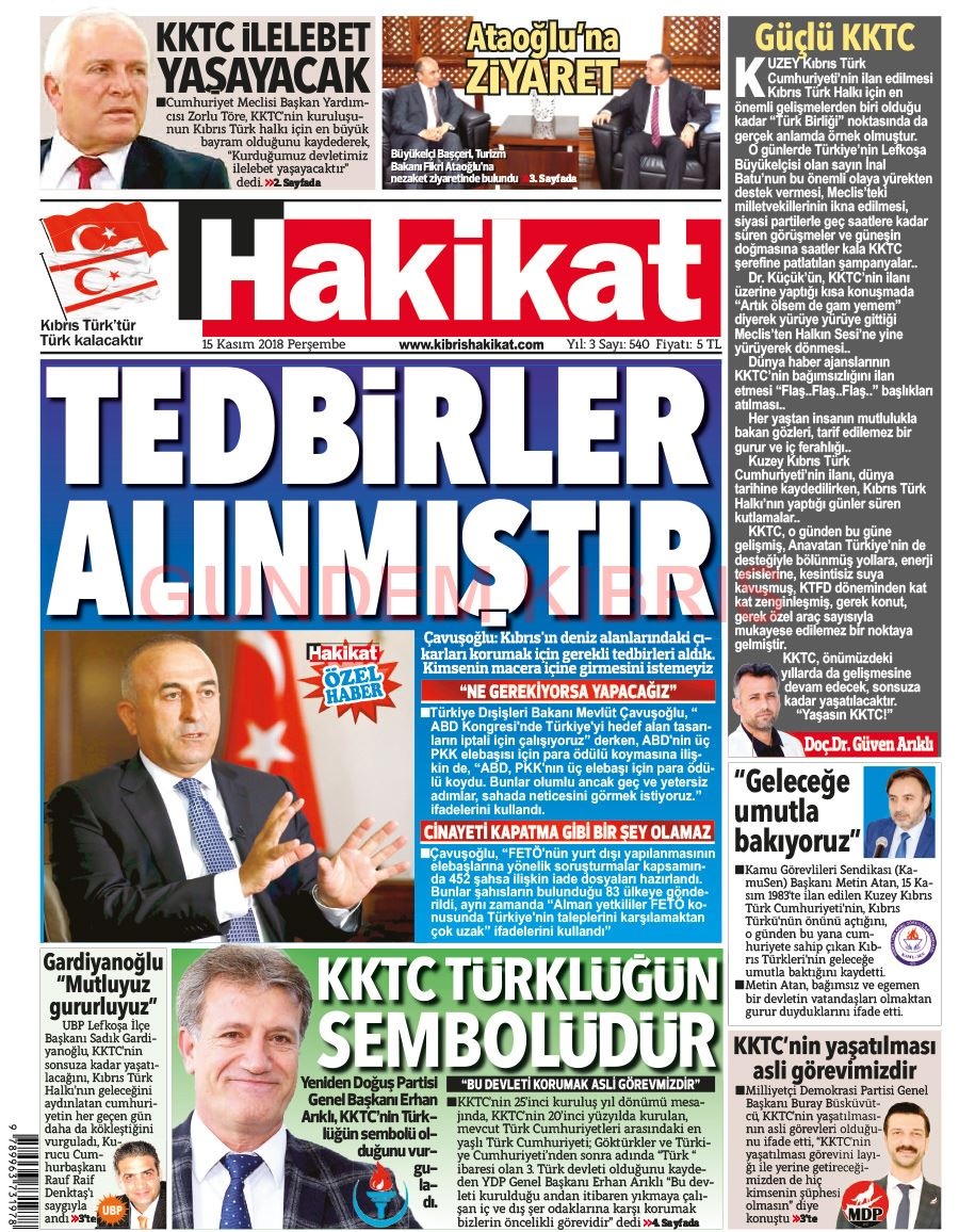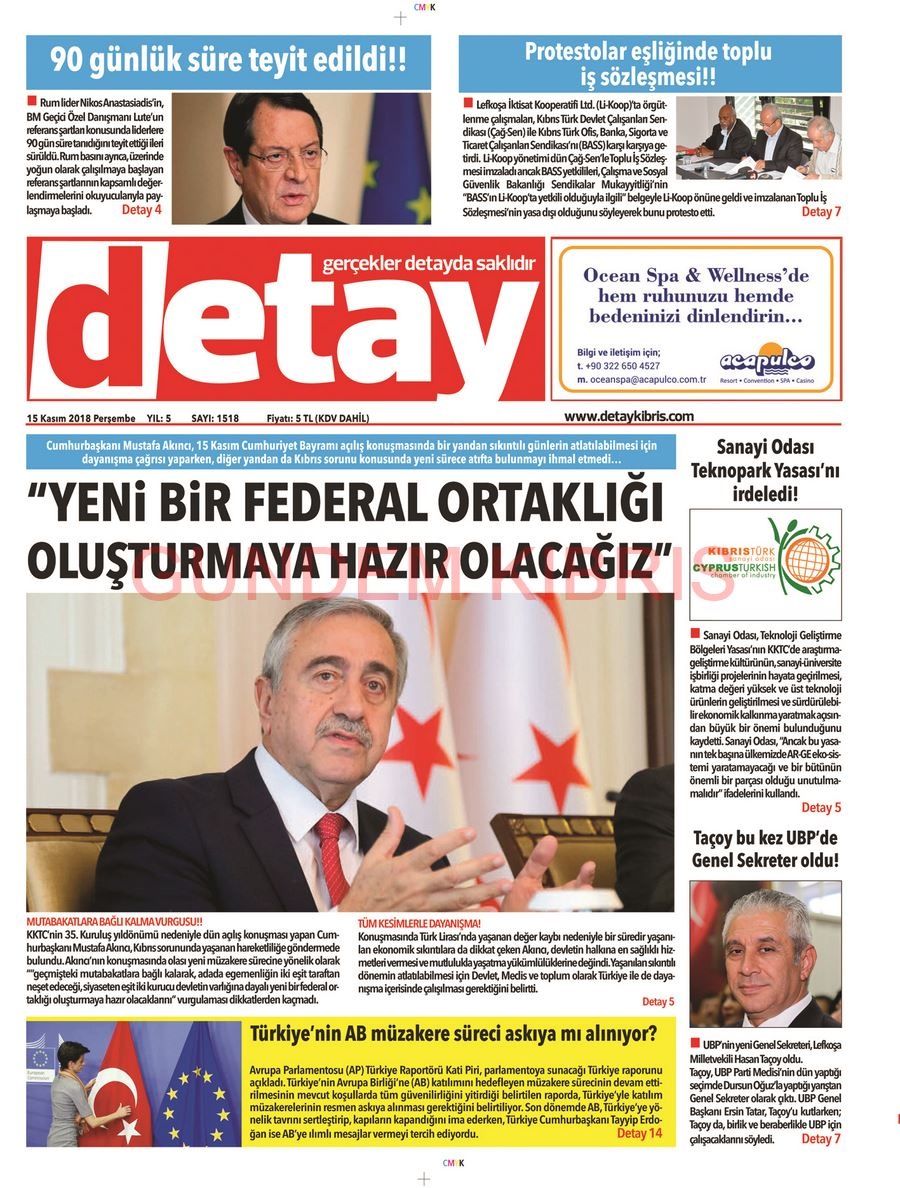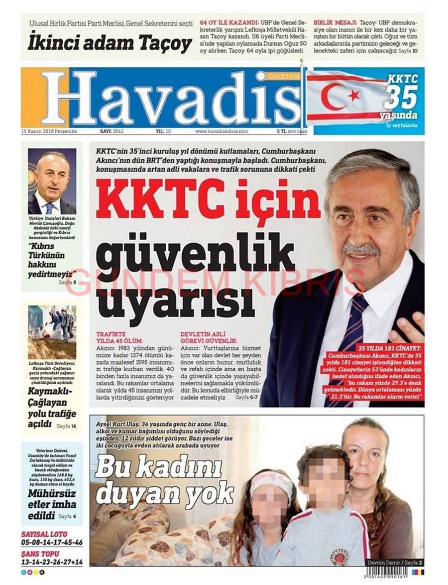 KKTC Gazete Manşetleri 15 Kasım 2018