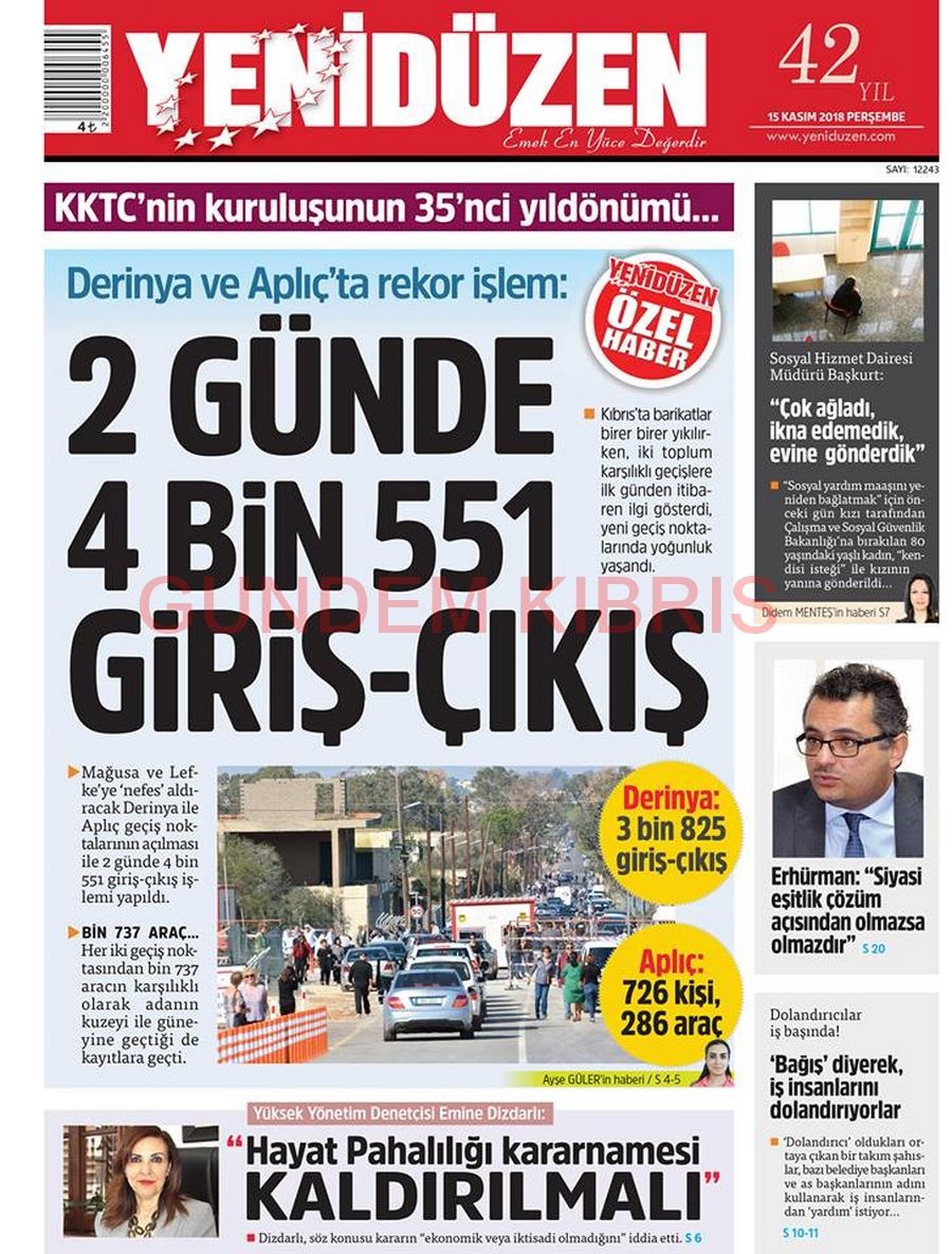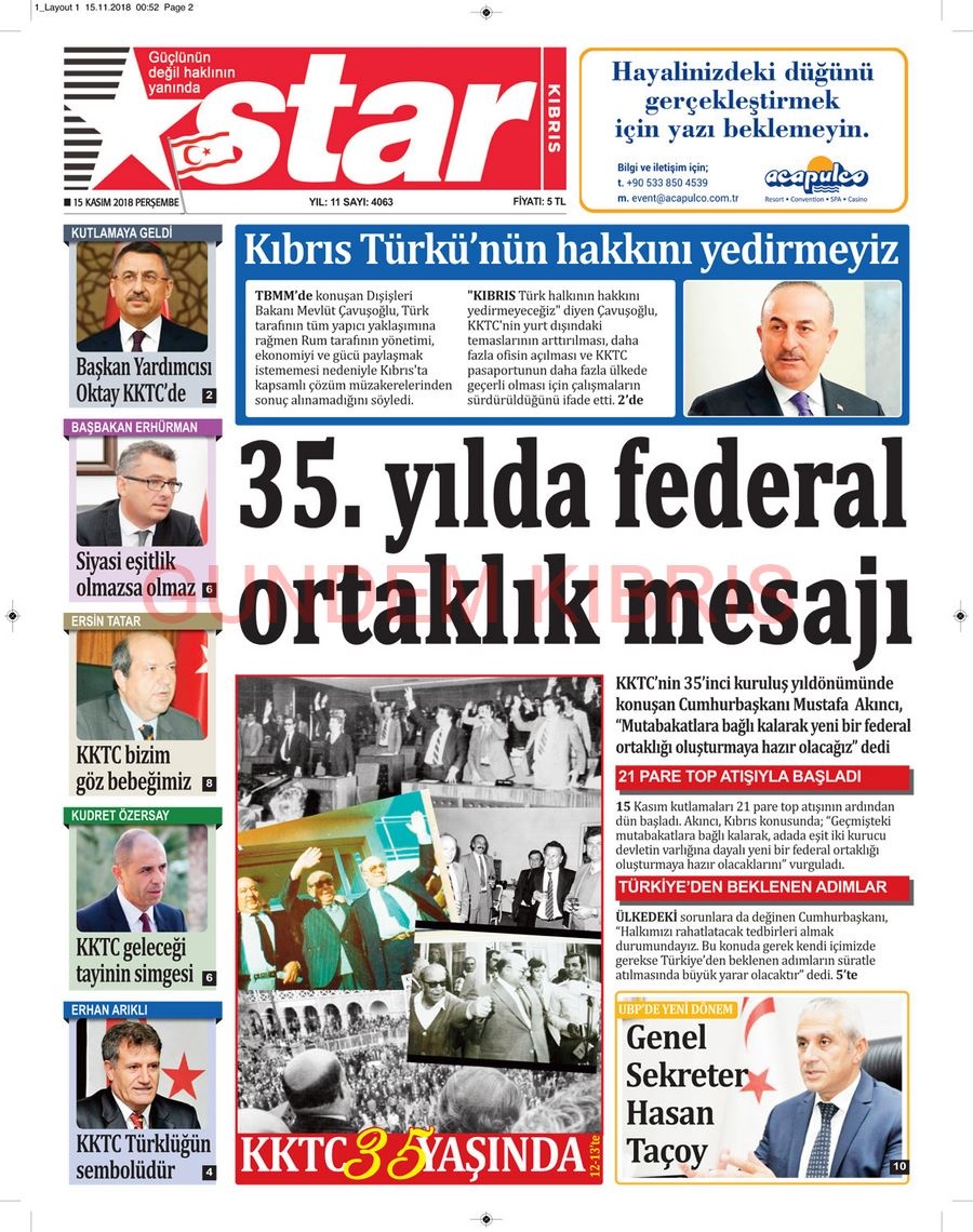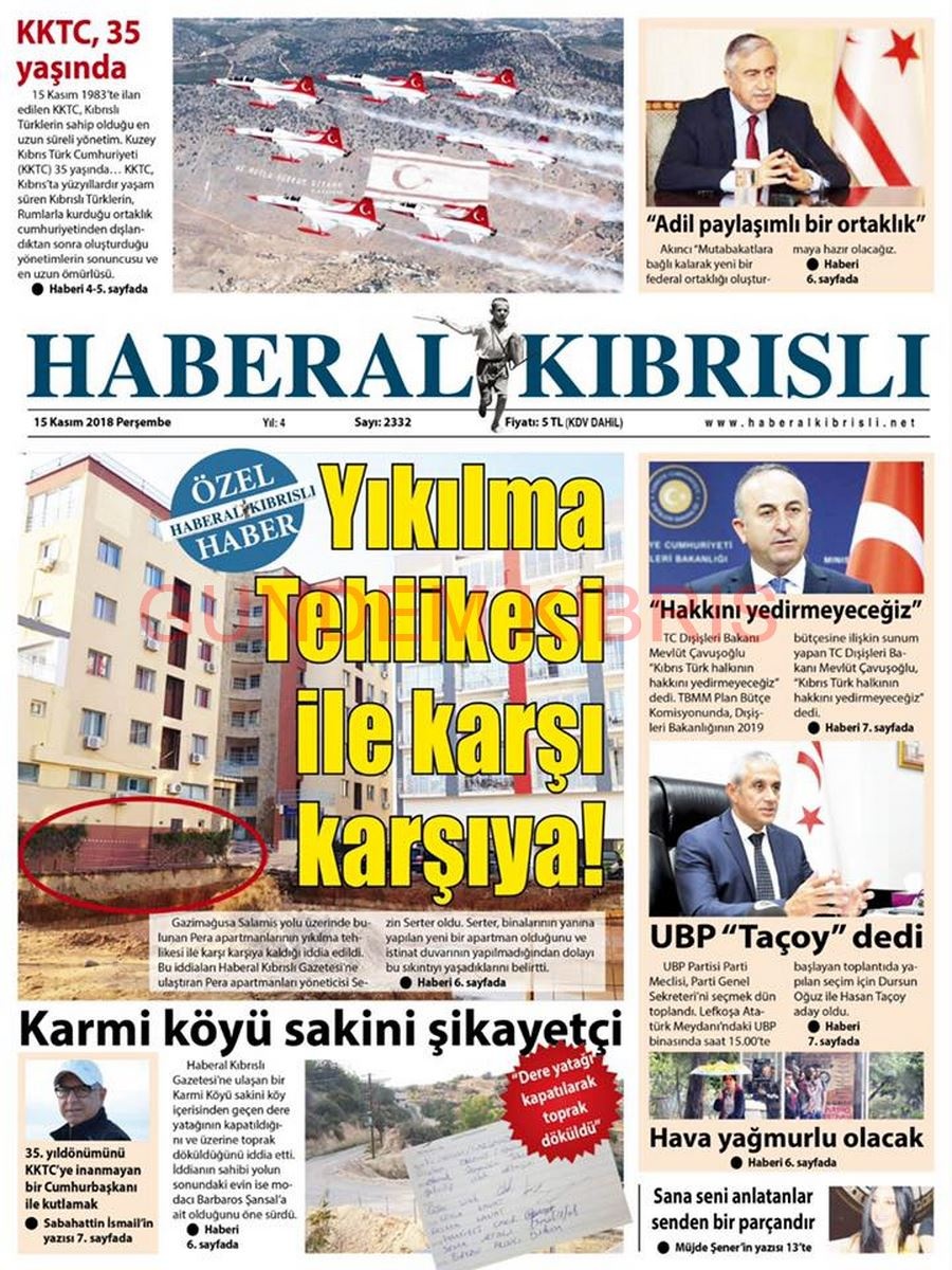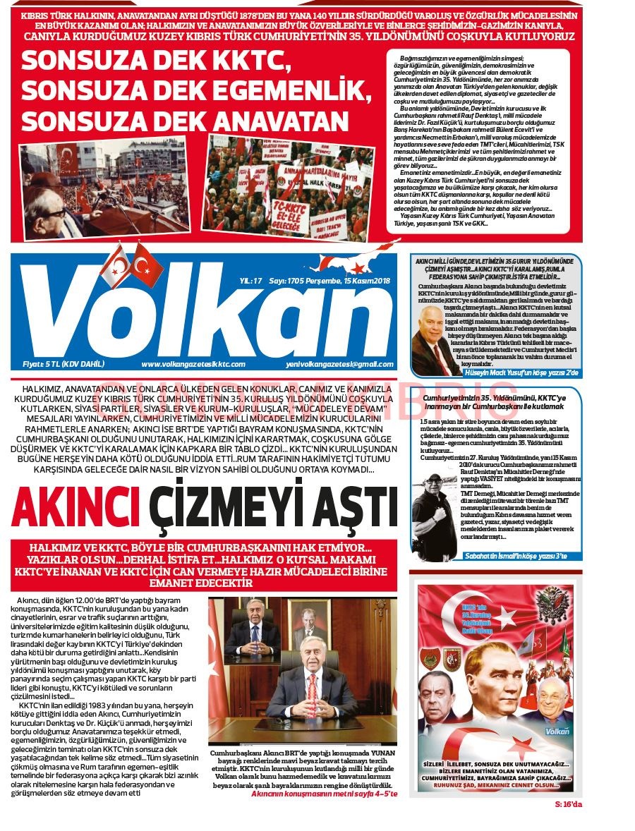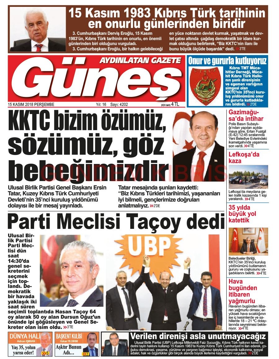 KKTC Gazete Manşetleri 15 Kasım 2018
