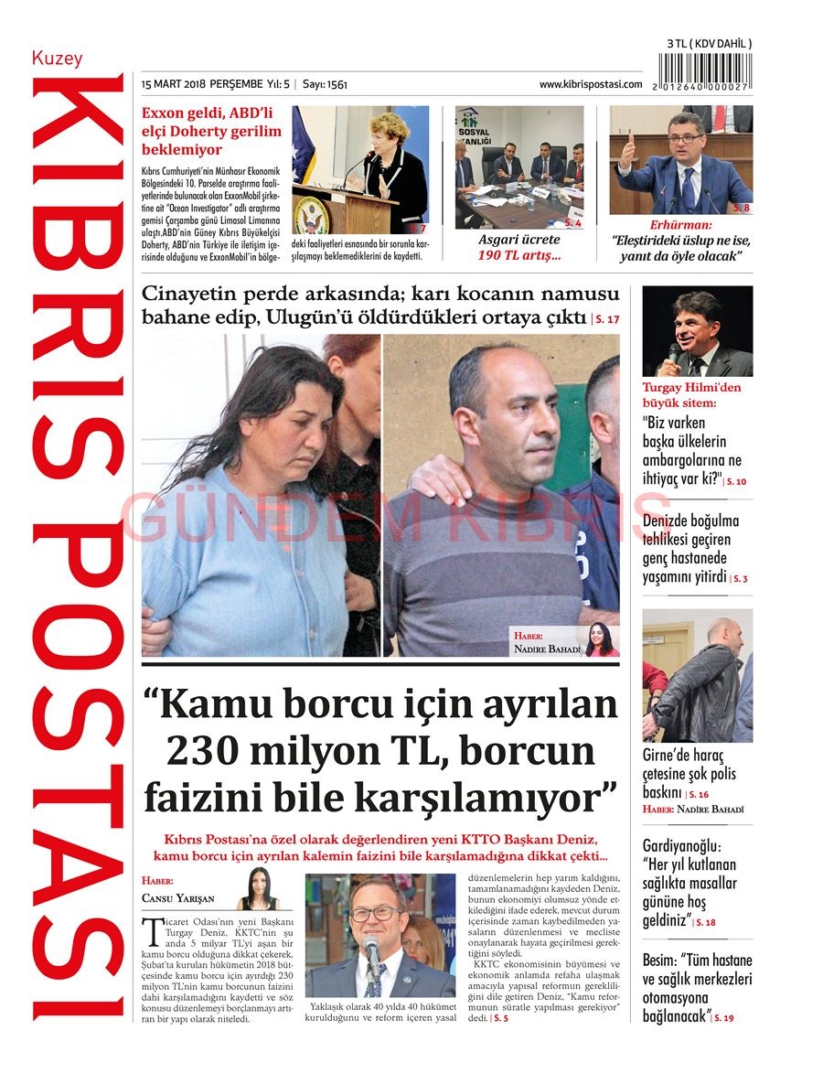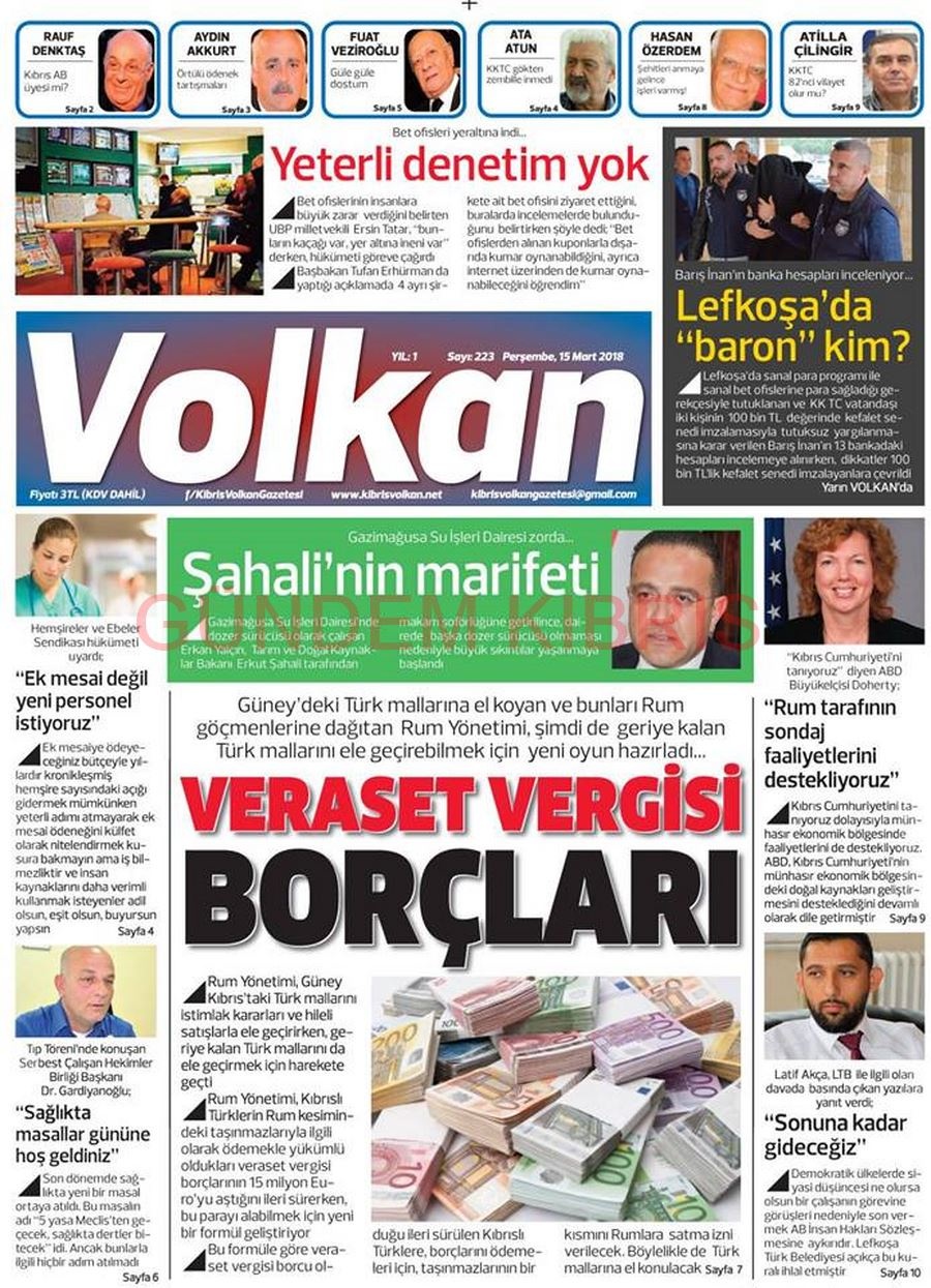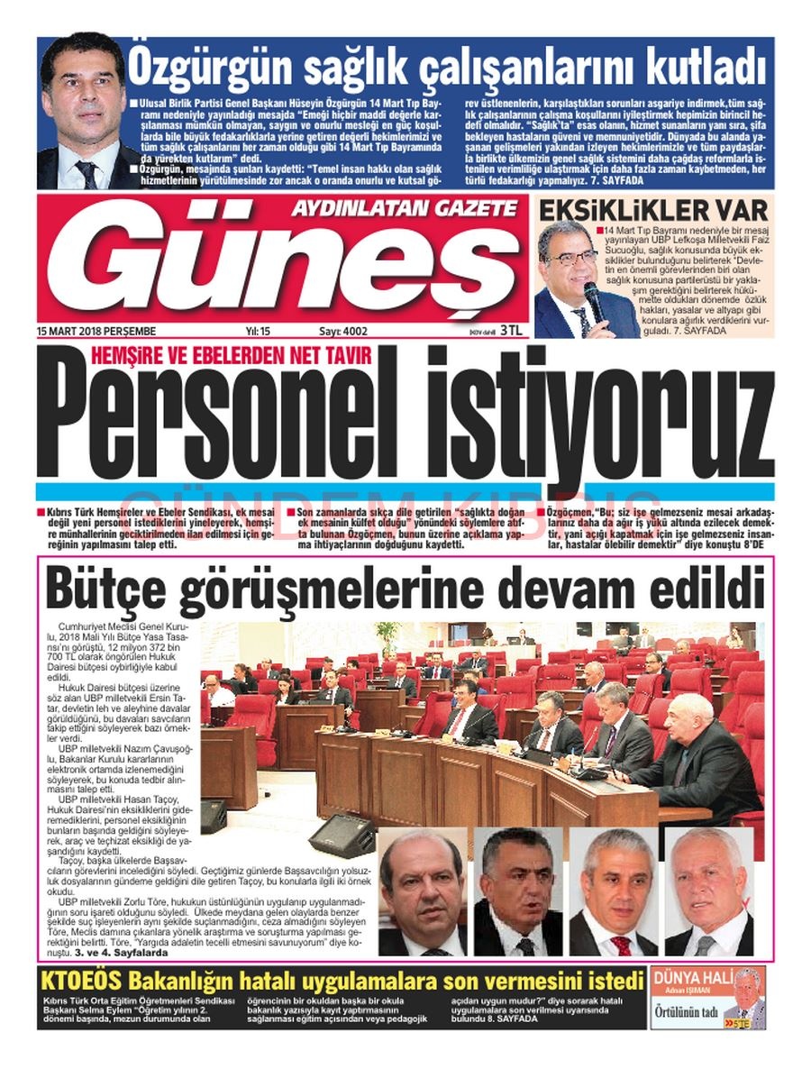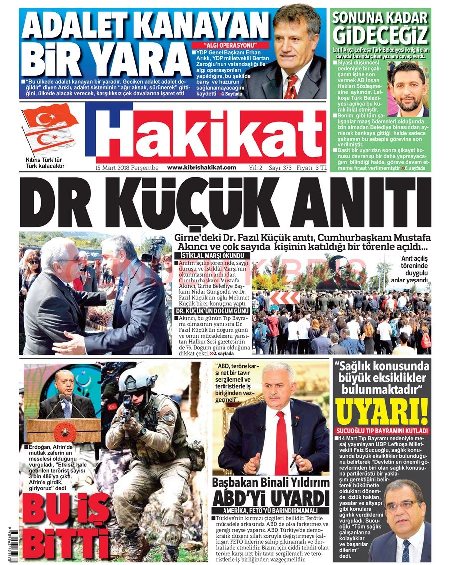 KKTC Gazete Manşetleri 15 Mart 2018